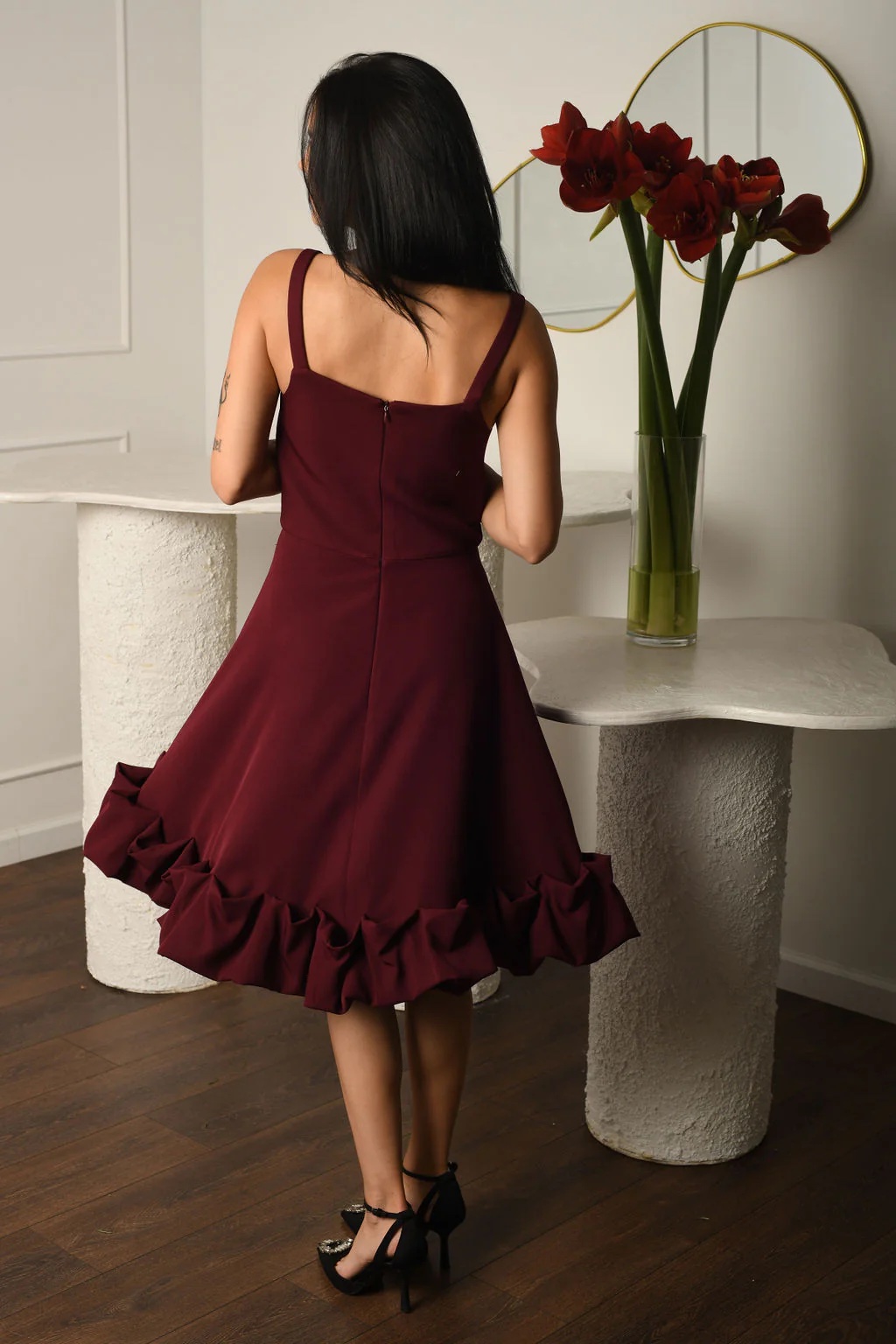 Elegantiškos, romantiškos ir žaismingos, šios raukiniais puoštos midi ir trumpos suknelės puikiai tinka šventiniams susitikimams, oficialiems renginiams ar elegantiškam vakarui. Minimalistinis korsetas išformuoja krūinę, prigludęs liemuo dailiai išryškina figūrą, o suknelė be rankovių išryškina pečius ir sukuria laikui nepavaldų moterišką įvaizdį. Išskirtinė šios suknelės detalė - nuostabaus dizaino raukiniai, suteikiantys žavesio visam įvaizdžiui. Pasirinkite trumpesnį arba ilgesnį suknelės dizainą. Suknelę derinkite su klasikiniais aukštakulniais ir paprastais aksesuarais, kad sukurtumėte lengvai elegantišką derinį, kuris paliks neišdildomą įspūdį.