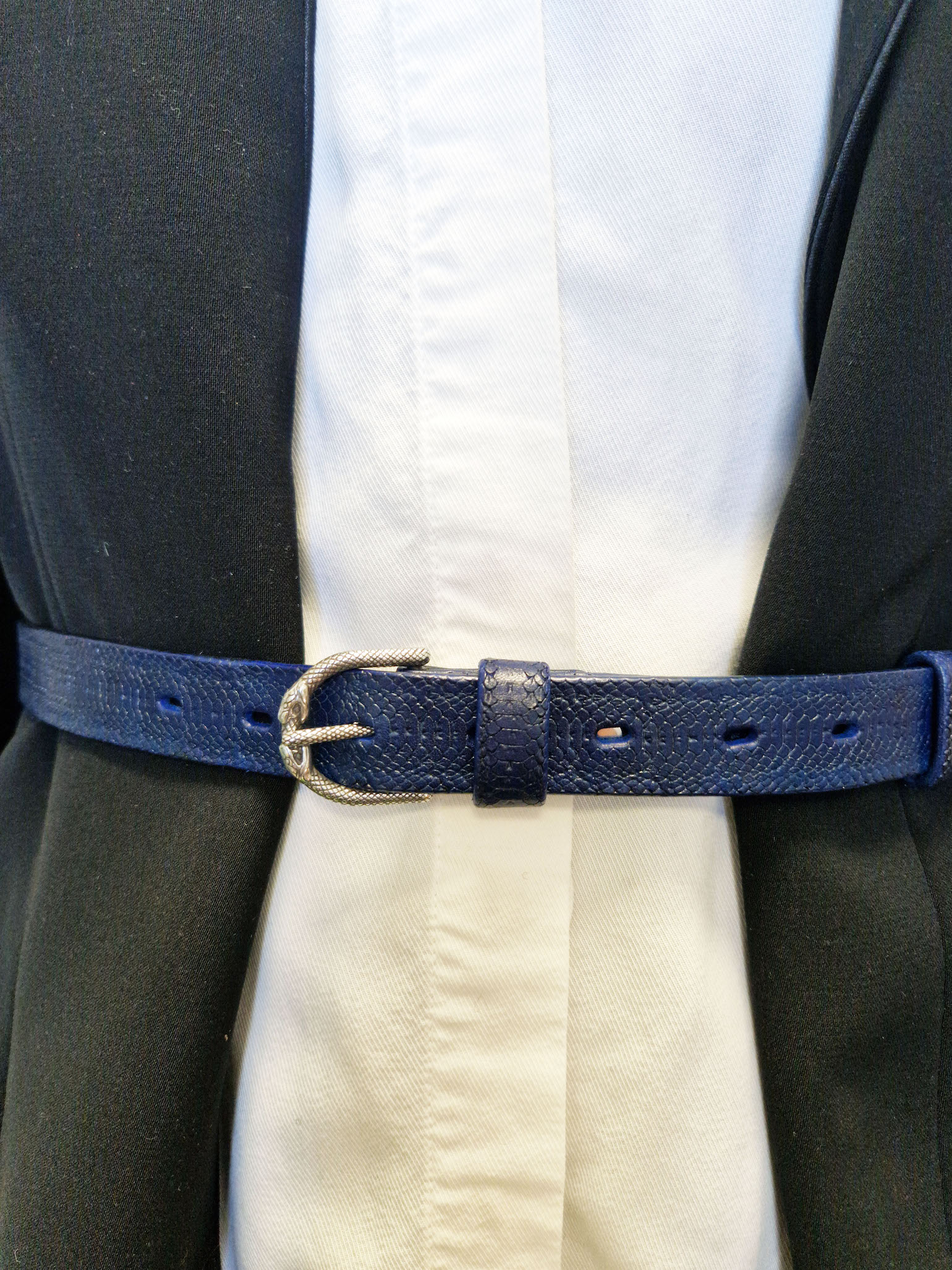 Pagamintas iš augalinio išdirbimo odos, su rankomis iškaltu gyvatės odos faktūra – todėl kiekvienas diržas vienetinis.