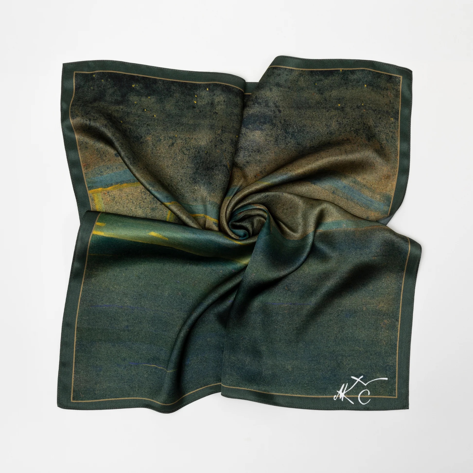 Zodiako Ožiaragio ištvermė ir pasitikėjimas savimi atsiskleidžia įkvepiančiame M.K. Čiurlionio paveiksle "Saulė eina Ožiaragio ženklu". Šios unikalios savybės subtiliai atsispindi prabangiame ir tviskančiame šilkiniame šedevre.