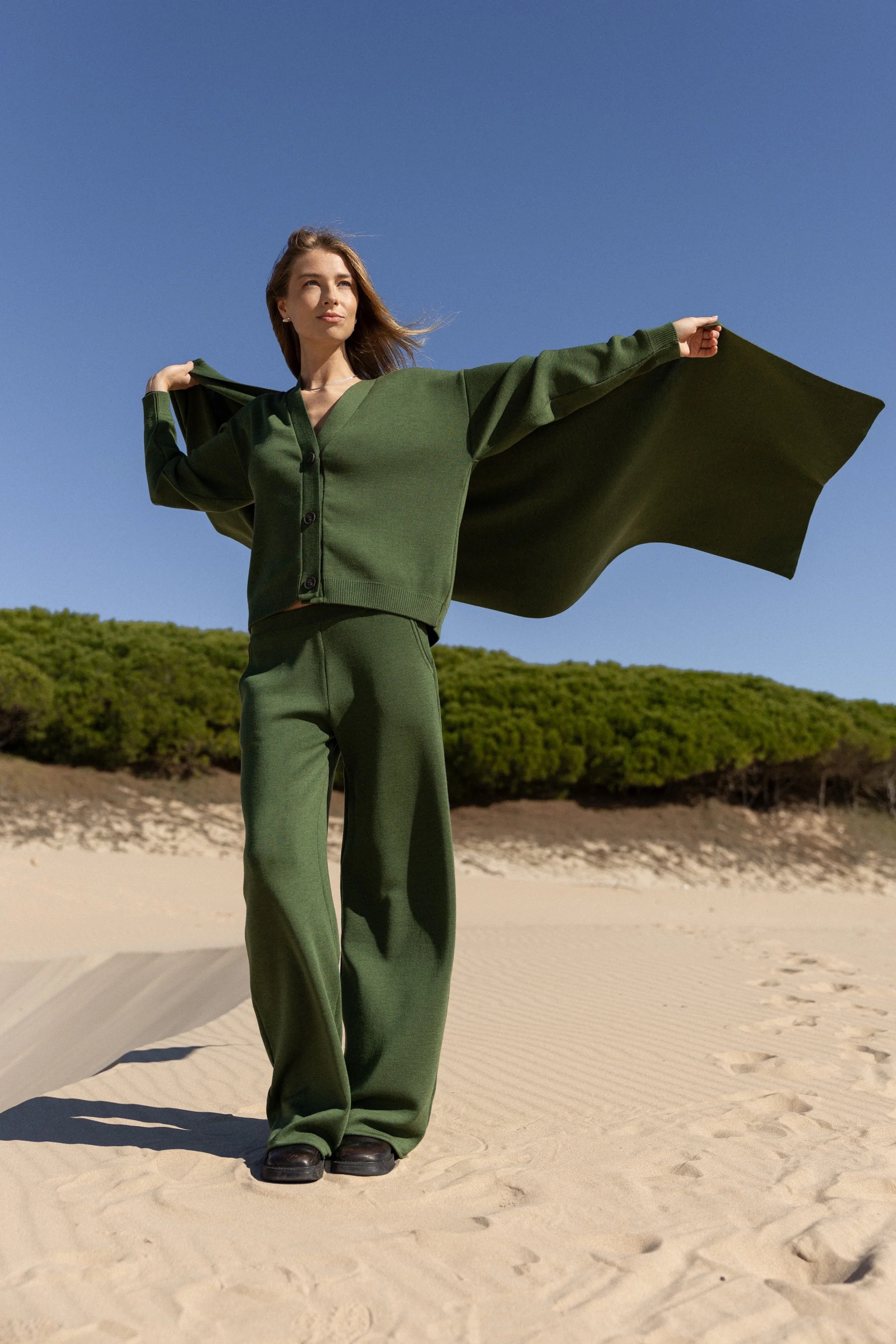 Salanida. Via Merino vilnos šalikas Žalia alyvuogė