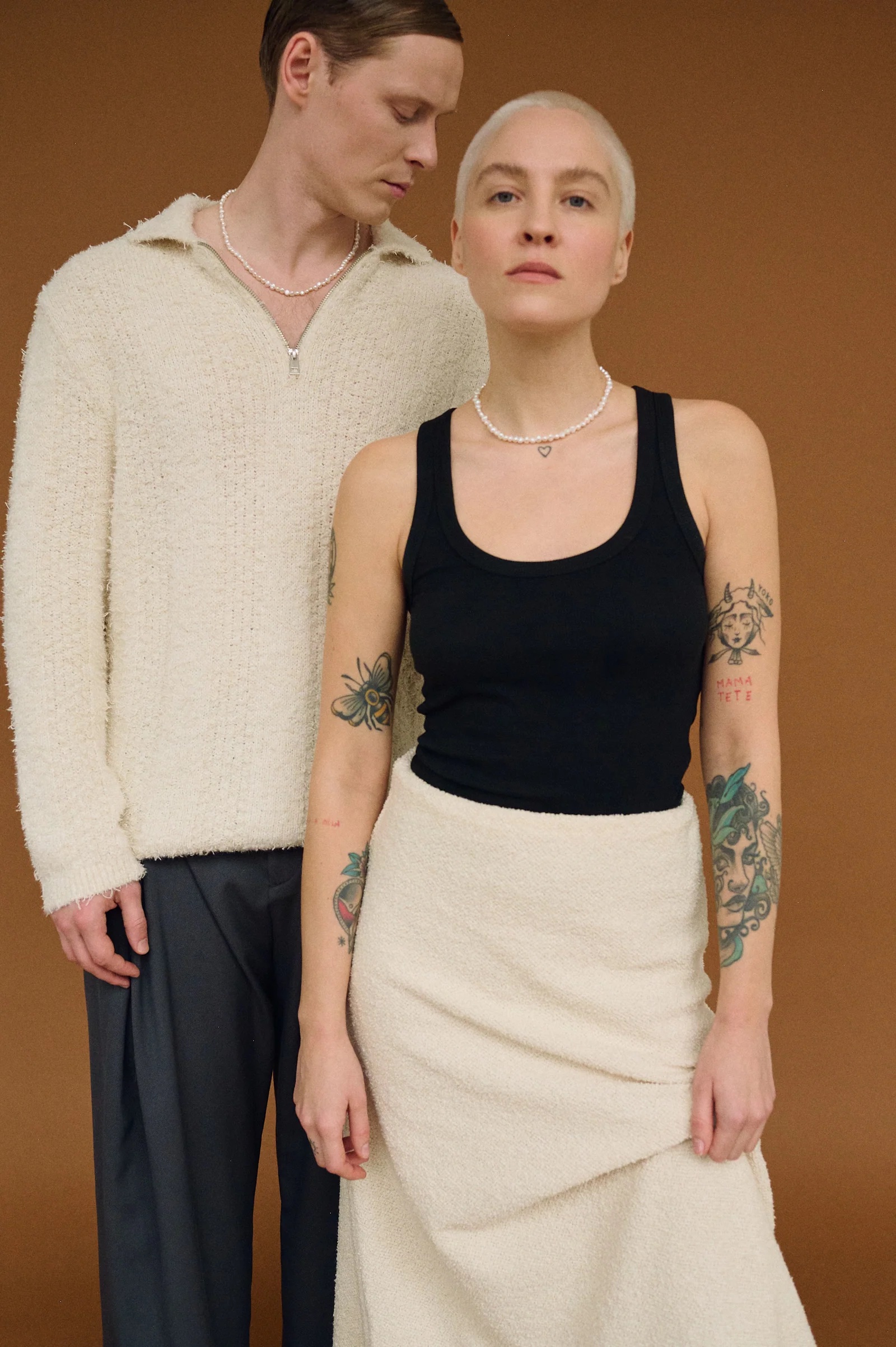 Tai natūralūs gėlavandeniai perlai, kiekvienas jų unikalus, skiriasi forma ir atspalviu. Papuošaluose naudojami metalai yra atsparūs vandeniui ir nešvarumams, todėl juos galite drąsiai dėvėti kasdien.