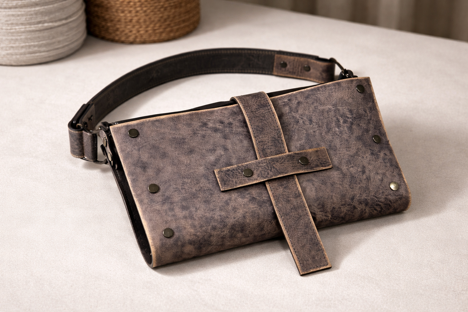 URBANHOLIC. Burgundiškas odinis RANKINUKAS