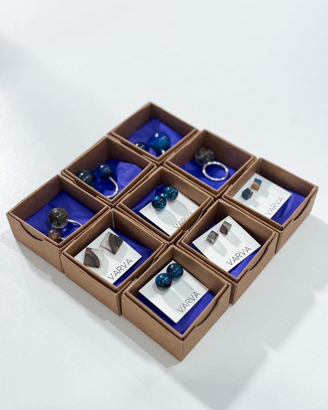 Derva, varvėdama ir stingdama, užkonservuoja savyje inkliuzus. Papuošalai yra minimalistiniai, emociškai įkrauti, talpinantys dervoje užstrigusius gamtos motyvus. Bet juk negrįžtamai keičiasi ne tik gamta. VARVA –  tai ir jausmingų detalių, prisiminimų, laiko ir atminties fosilijų konservavimas.