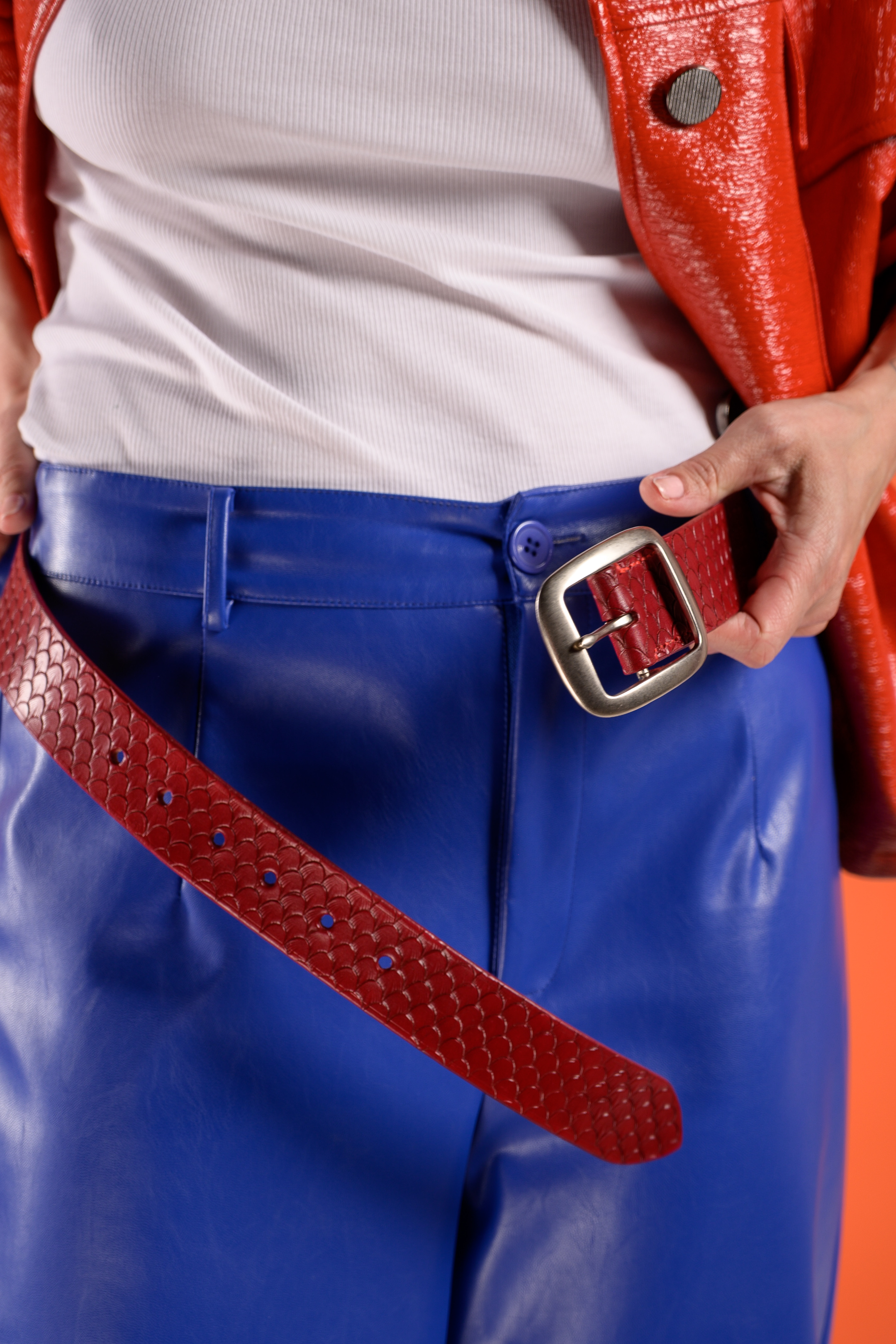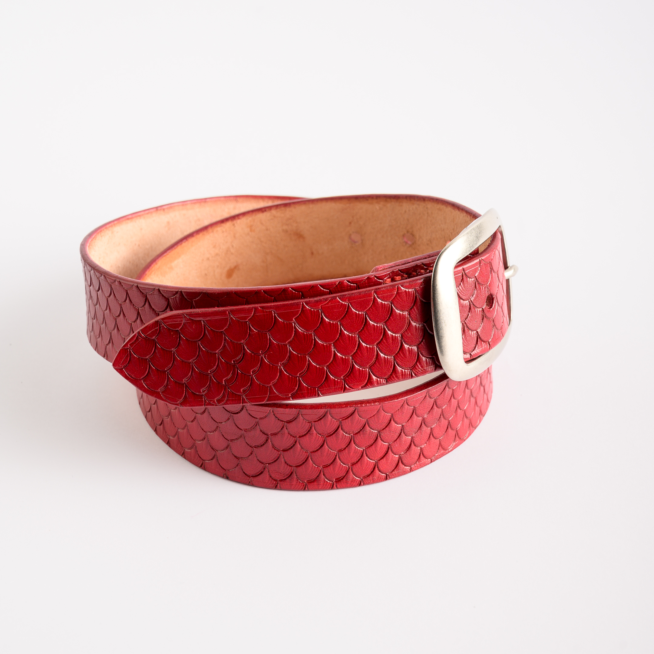 Diržas išsiskiria unikaliu dizainu – drakono odos rašto žvyneliai rankomis iškalti, todėl kiekvienas gaminys yra vienetinis.