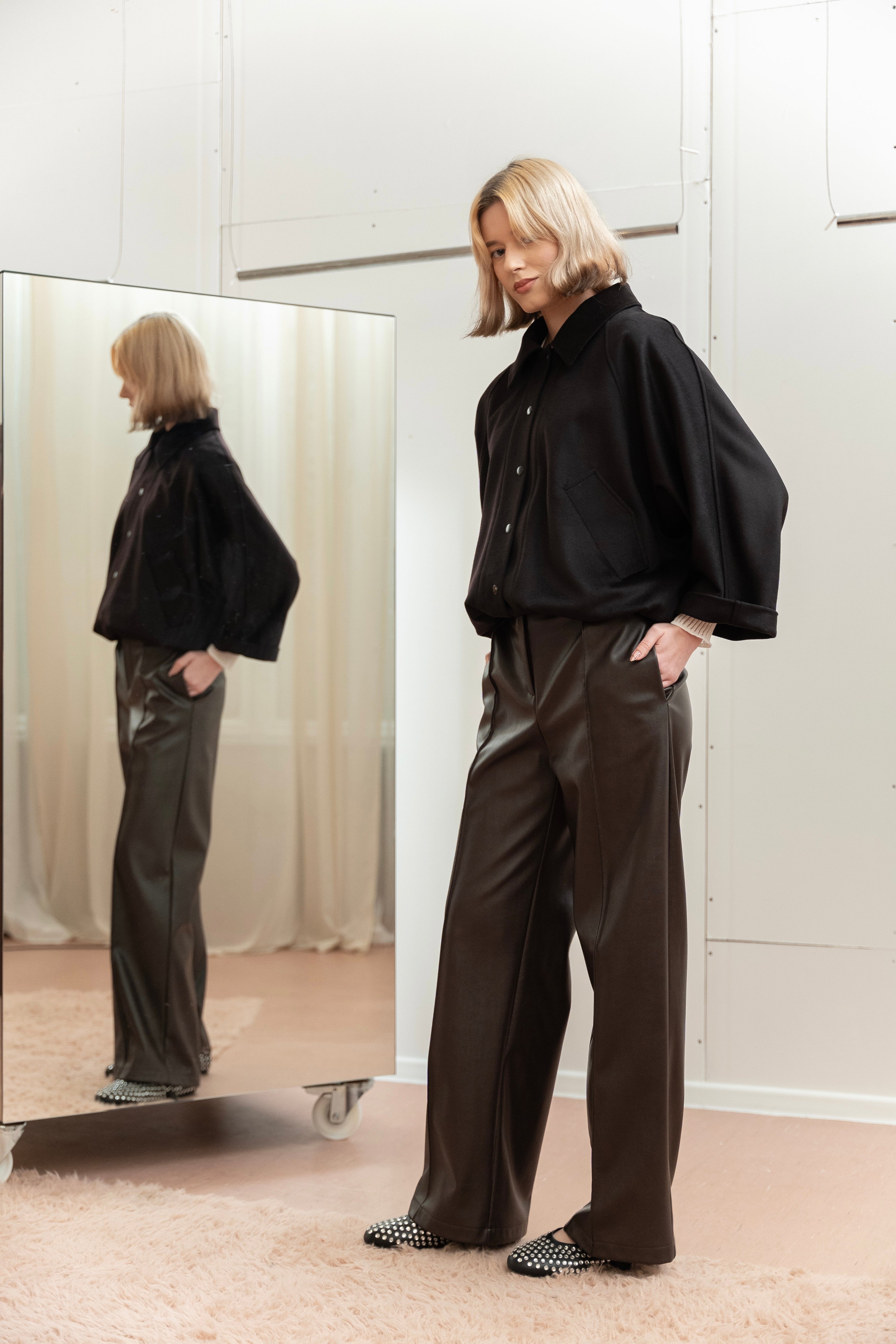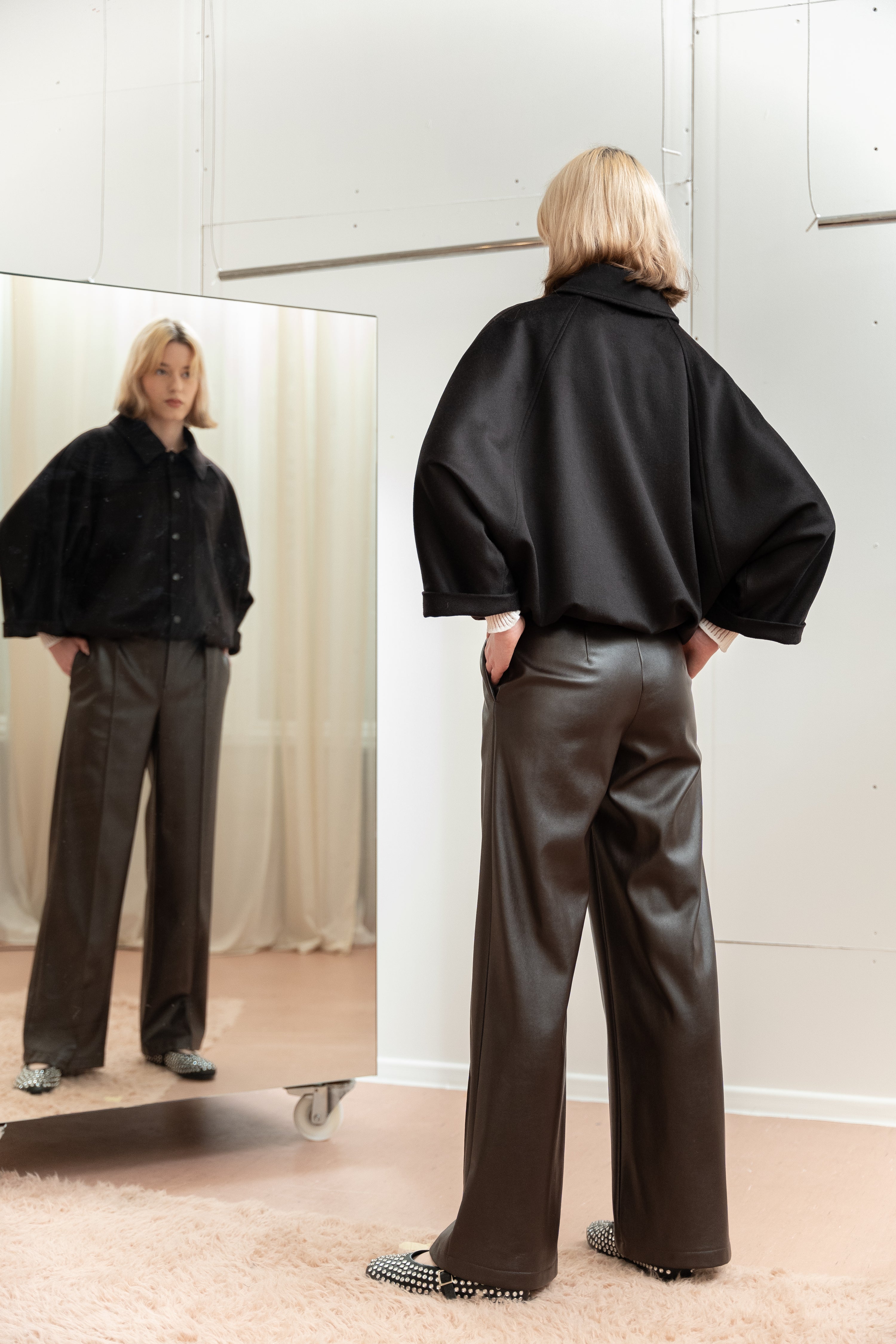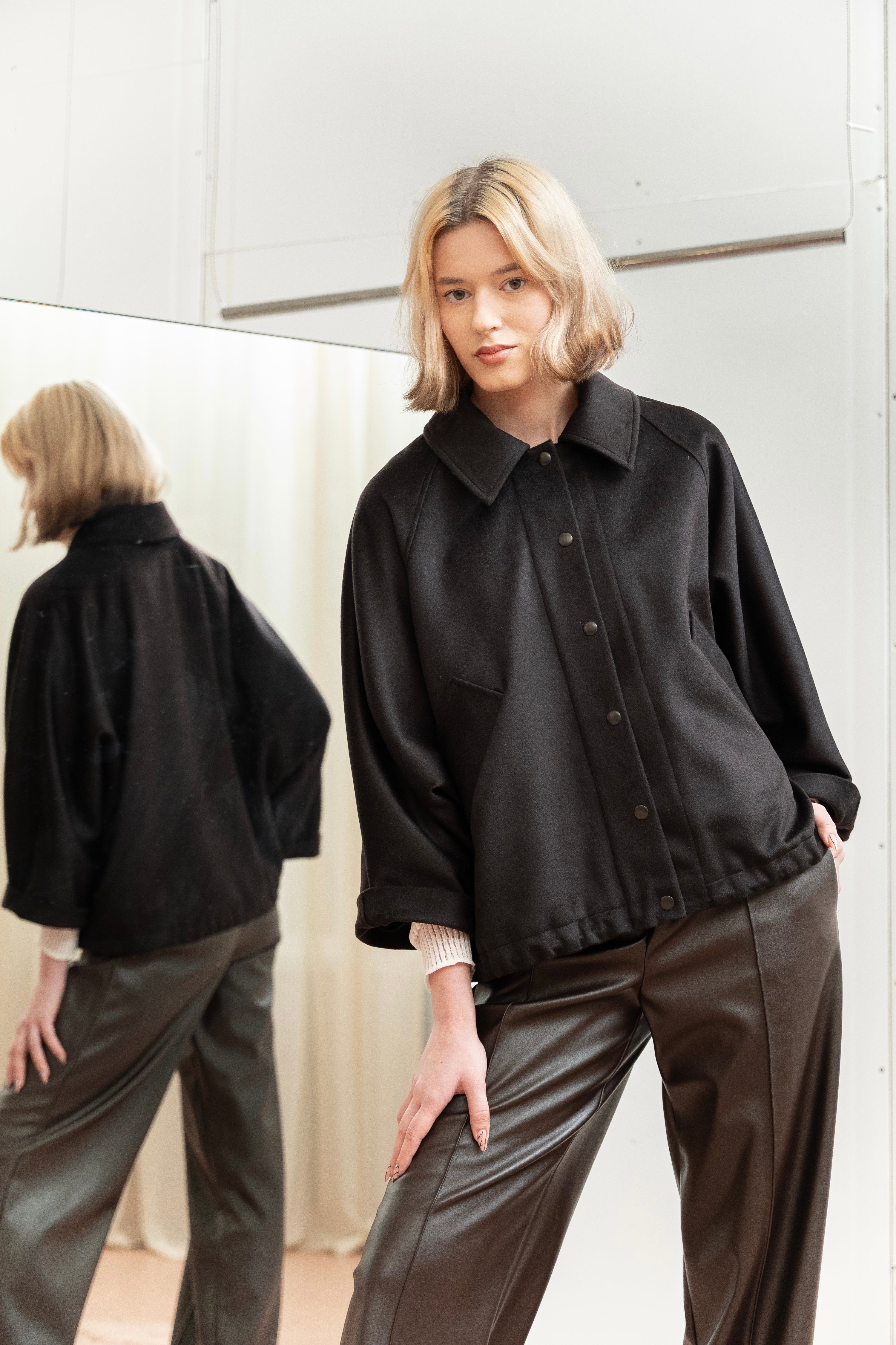 Šis kašmyro vilnos audinio "bomber" stiliaus švarkas yra laisvo silueto, patrumpintomis rankovėmis ir akcentinėmis kišenėmis. Švarko apčioje yra reguliuojama guma, todėl jį lengva stilizuoti ir sluoksniuoti.