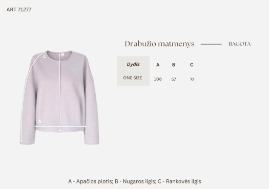 Išmatavimai nurodyti dydžių lentelėje. Tinka nešiojančioms S,M,L dydžius.