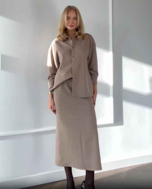 Tiesaus silueto sijonas. Puikiai dera su to Pačio audinio palaidine.