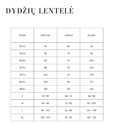 Modelis dėvi 36EU ir yra 176cm ūgio