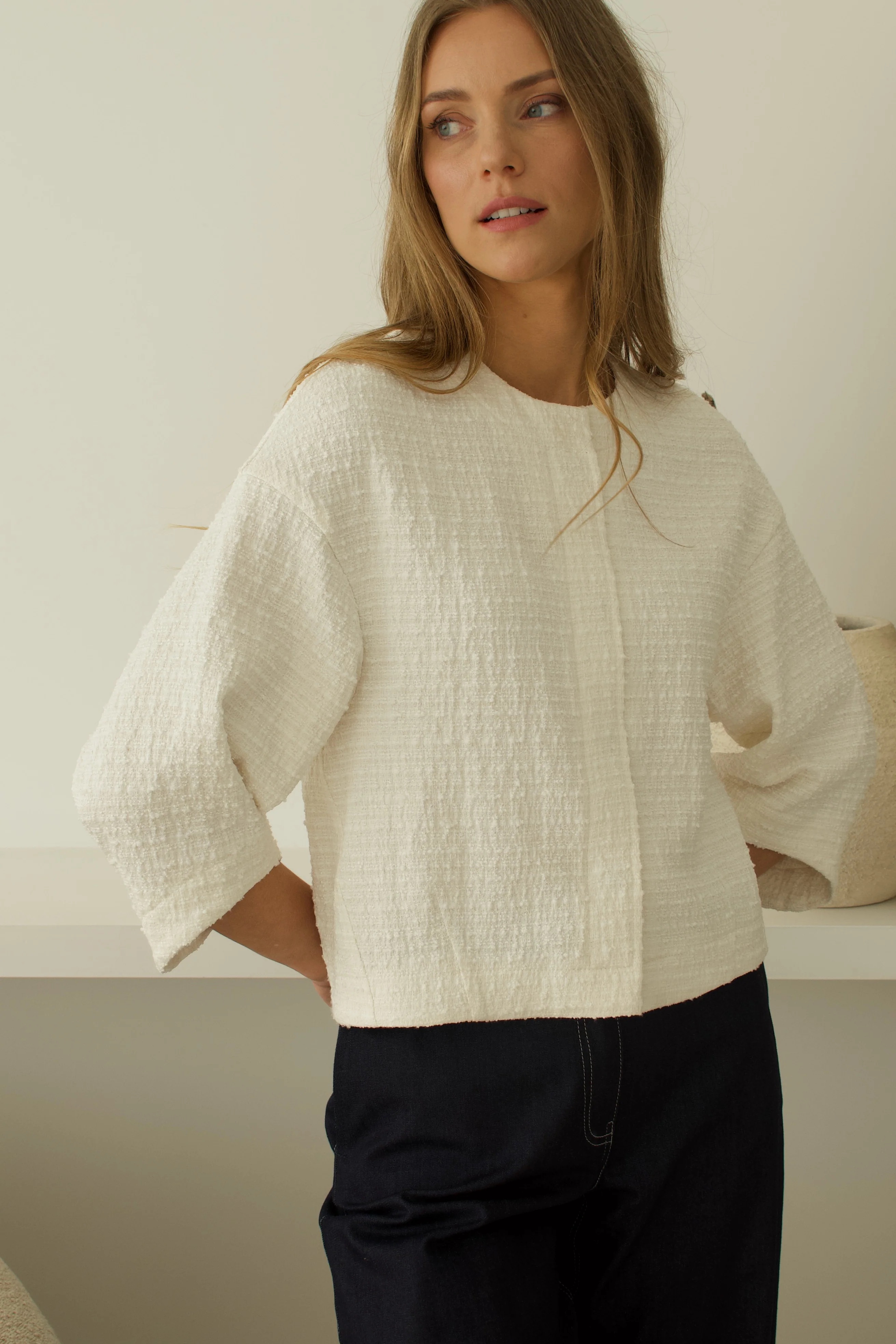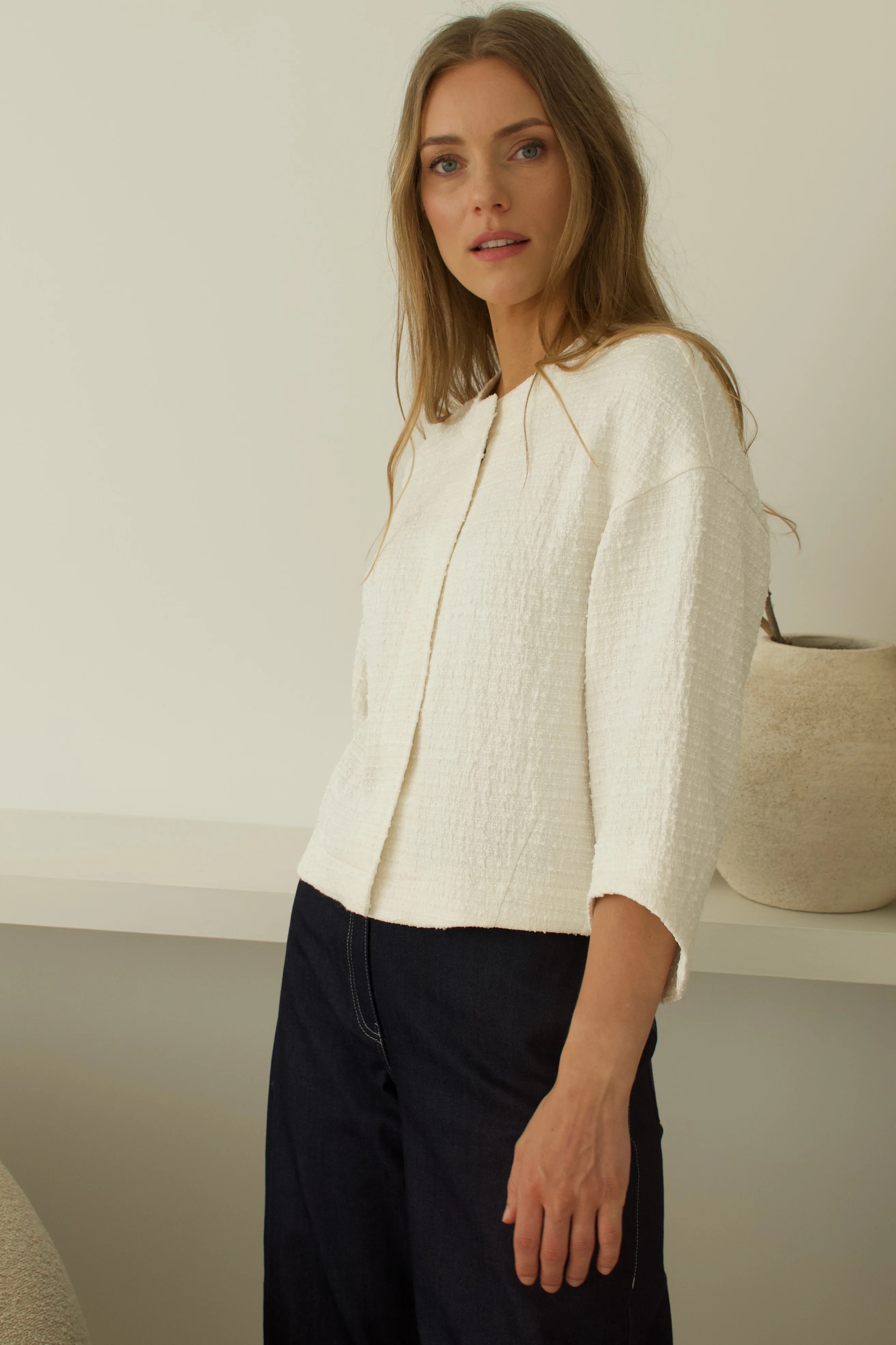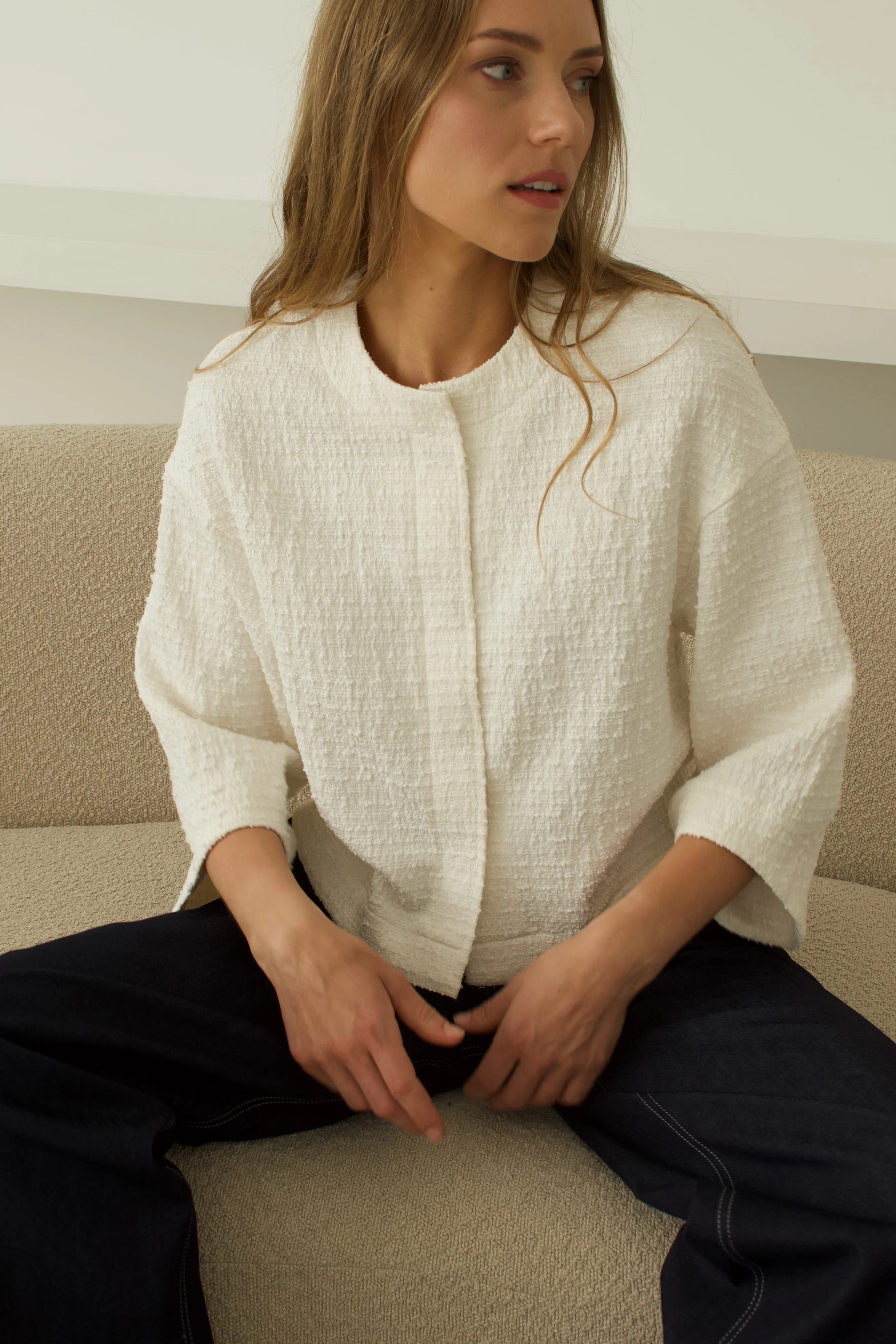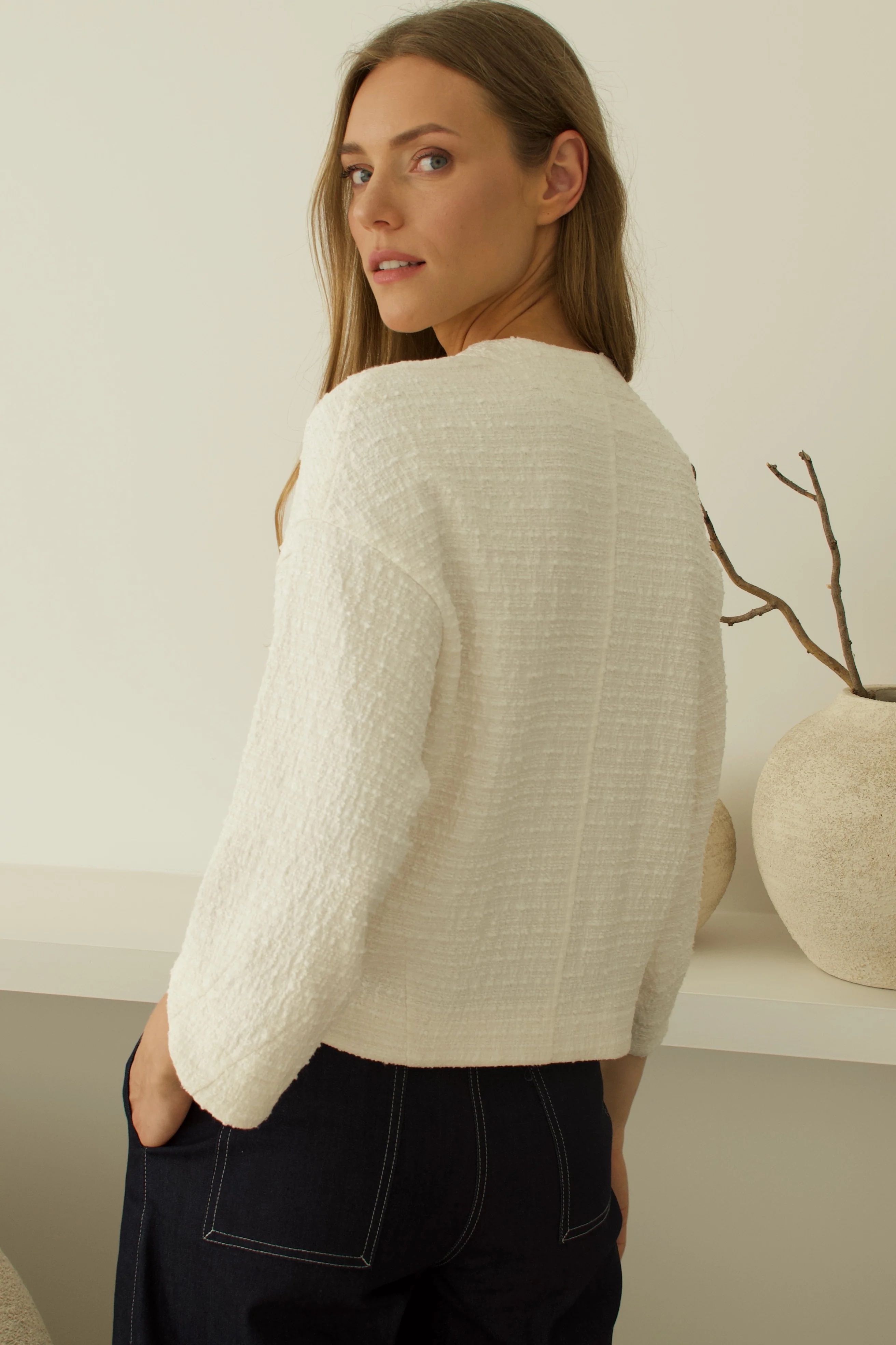 Tvido audinio švarkas lengvai derinamas su įvairiomis kelnėmis, sijonais, suknelėmis.
