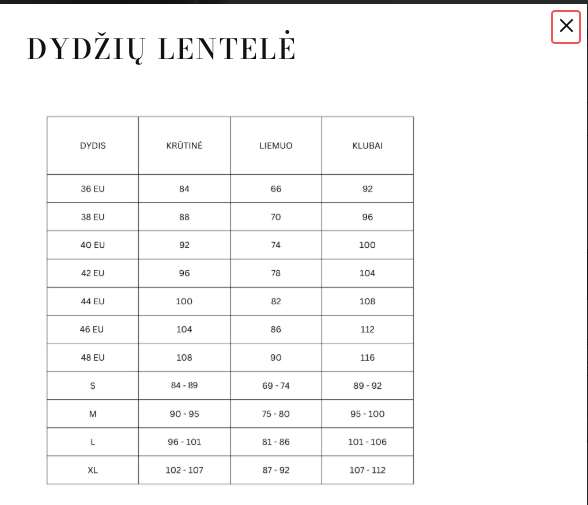 Modelis dėvi 36EU ir yra 176cm ūgio
