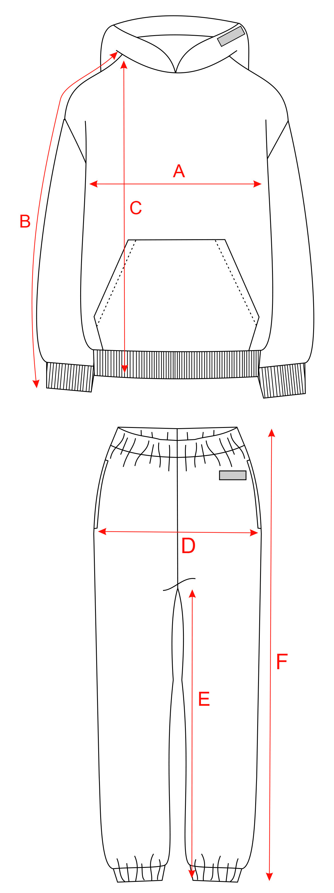 Drabužius puošia juodos spalvos „CMF by Kamilė“ logotipai, kurie, kaip ir minėjome, šįkart – jau kitose drabužių vietose: kairėje kelnių pusėje virš kišenės bei kapišono išorinėje dalyje.