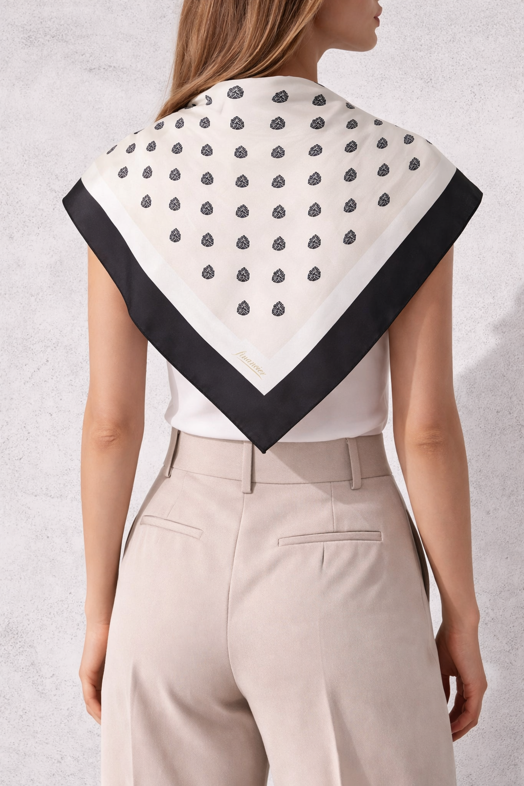 Pagaminta iš 100 % natūralaus šilko, ši skarelė išsiskiria subtiliu dizainu ir elegantišku kritimu. Ji sukurta kaip apgalvota įvaizdžio detalė, lengvai derinama tiek kasdieniam, tiek reprezentaciniam stiliui. Švelnus audinys suteikia rafinuotumo pojūtį be perteklinių akcentų.