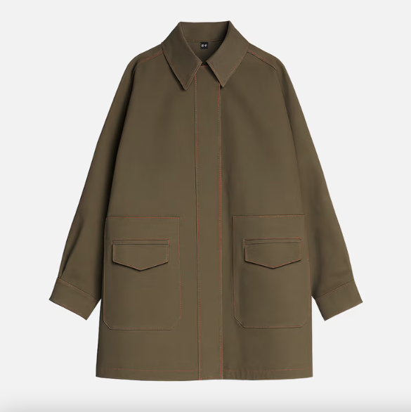 Parka su apykakle ir ilgomis rankovėmis, kurių rankogaliai užsegami kontaktine juosta. Priekyje – uždėtinės kišenės, užsegimas – užtrauktuku. Siluetas platėjantis.