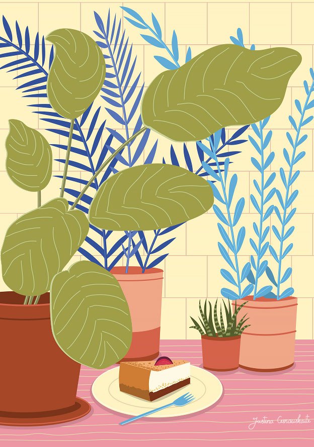 Justina Česnauskaitė. Atvirukas su voku Kavinėje