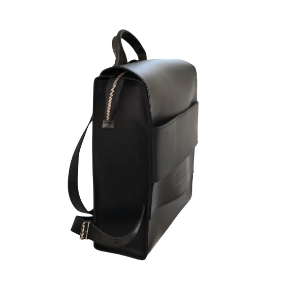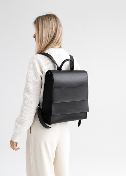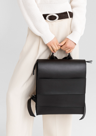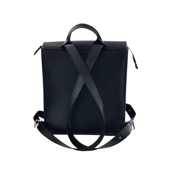 Kuprinės petnešos reguliuojamos, kuprinė užsegama užtrauktuku, odinis užvartas užkišamas už odinio dirželio, esančio kuprinės centre.