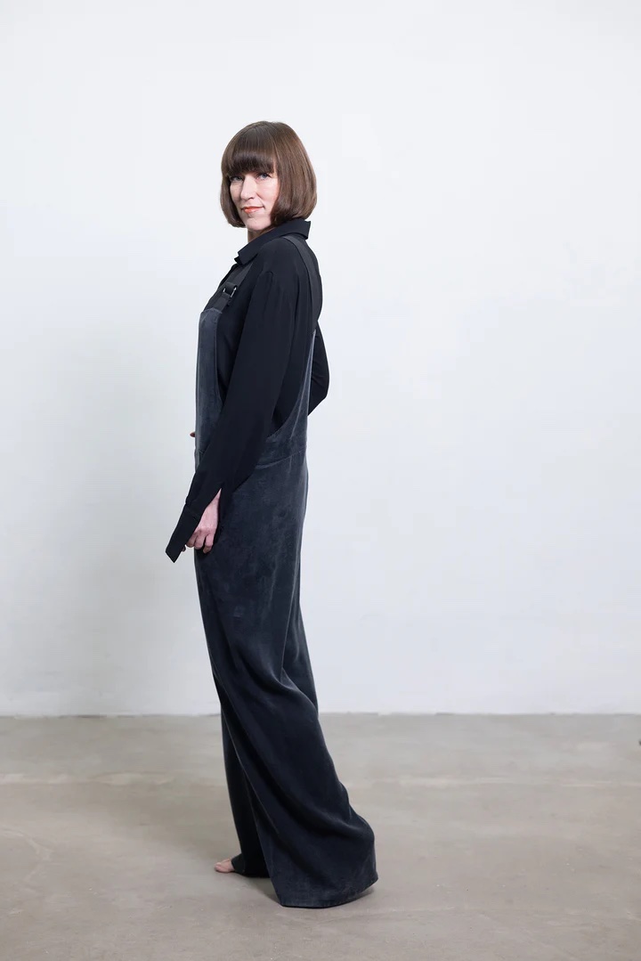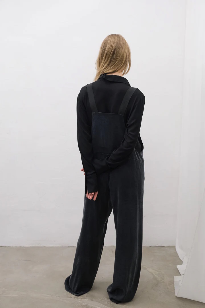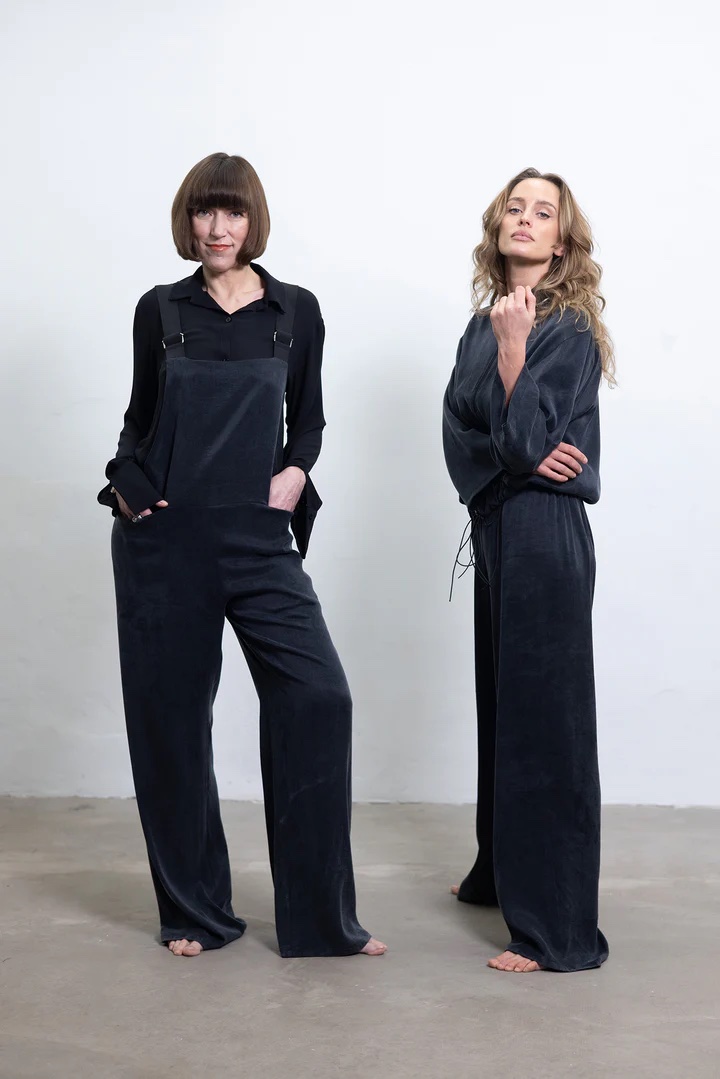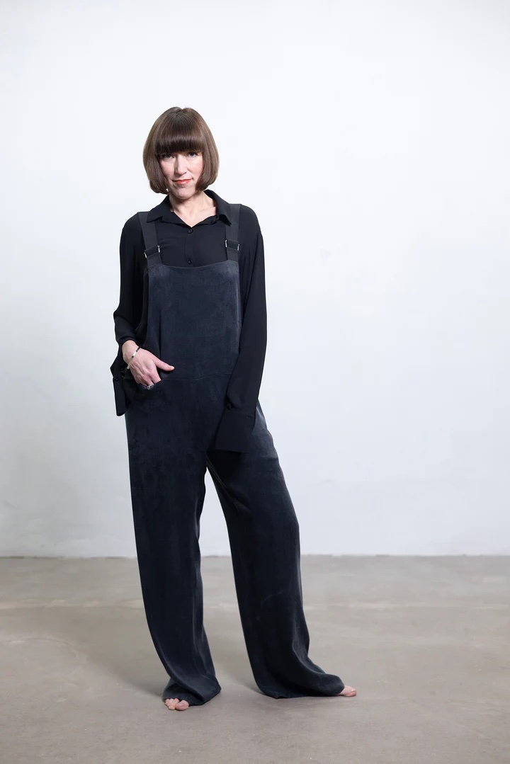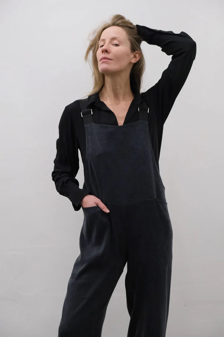 Pagamintas iš aukščiausios kokybės cupro, šis kombinezonas laisvai juda su jūsų kūnu, suteikdamas ir struktūrą, ir švelnumą. Švarios linijos ir moteriškas siluetas padaro jį tinkamu drabužių visais metų laikais. Tai drabužis, sukurtas moteriai, kuri vertina lengvumą, grožį ir tikslingą gyvenimą. Tikras kapsulės garderobo pagrindas.