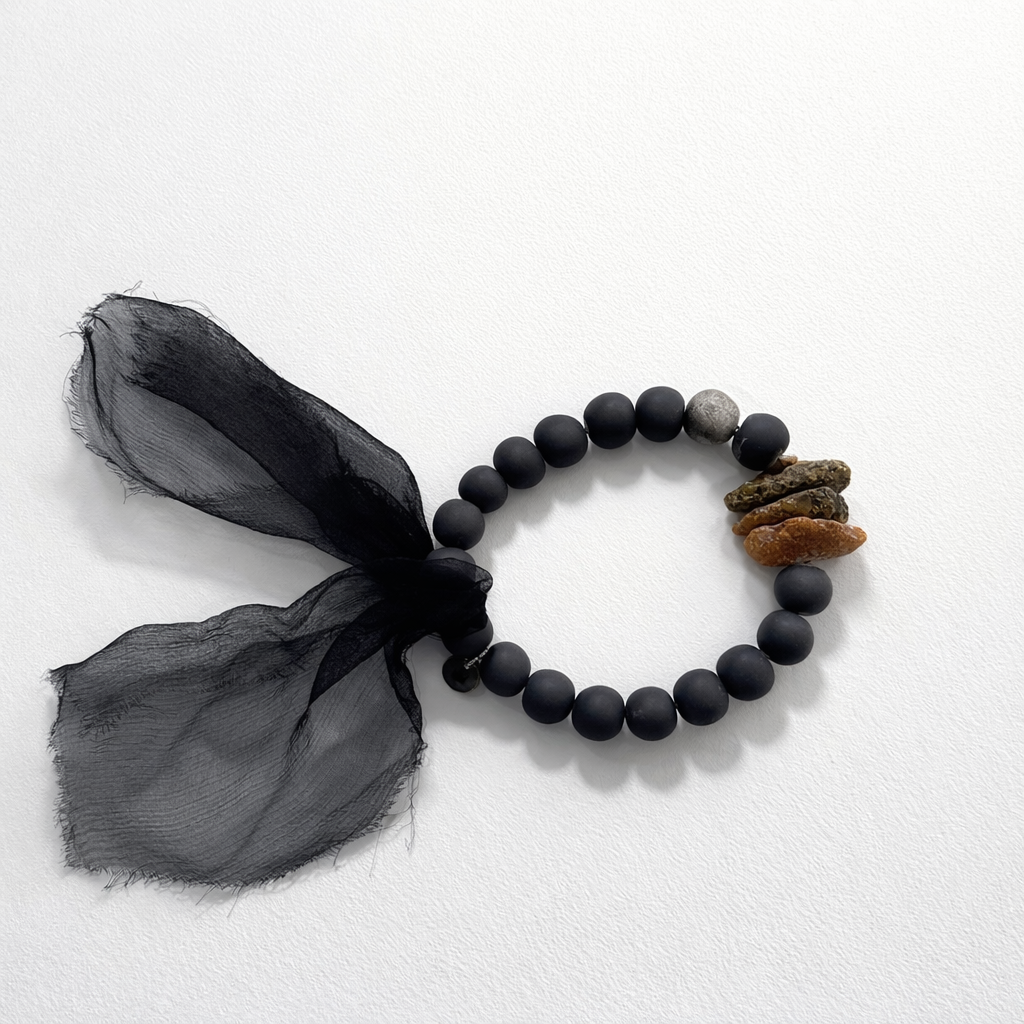 Porceliano, šilko , gintaro apyrankė