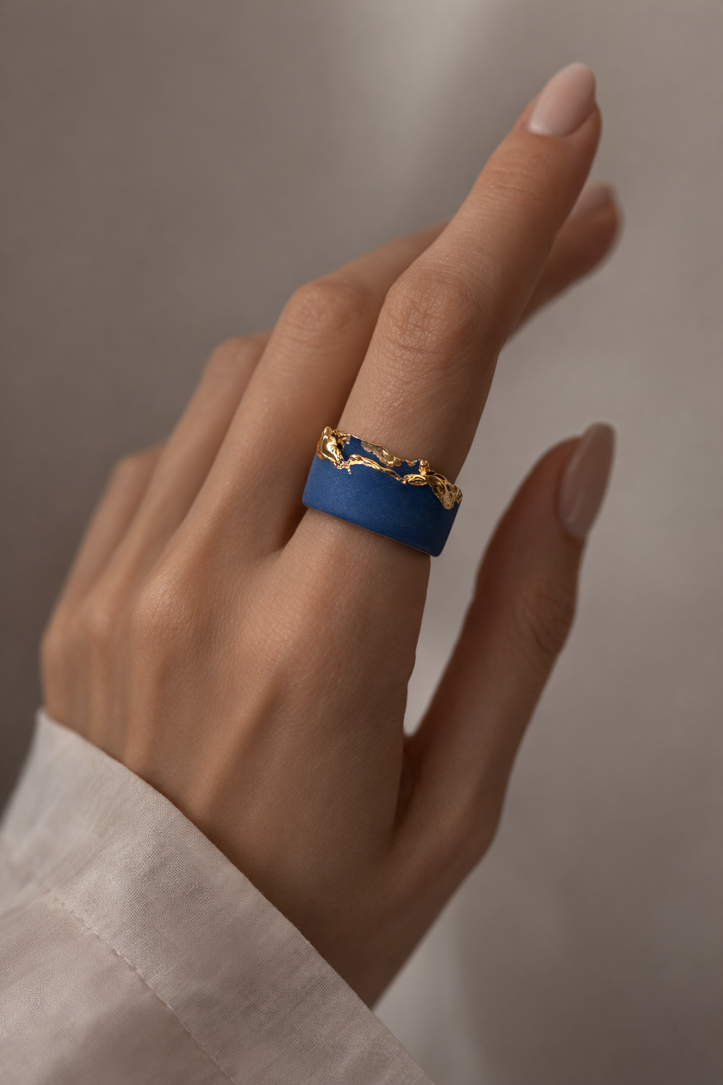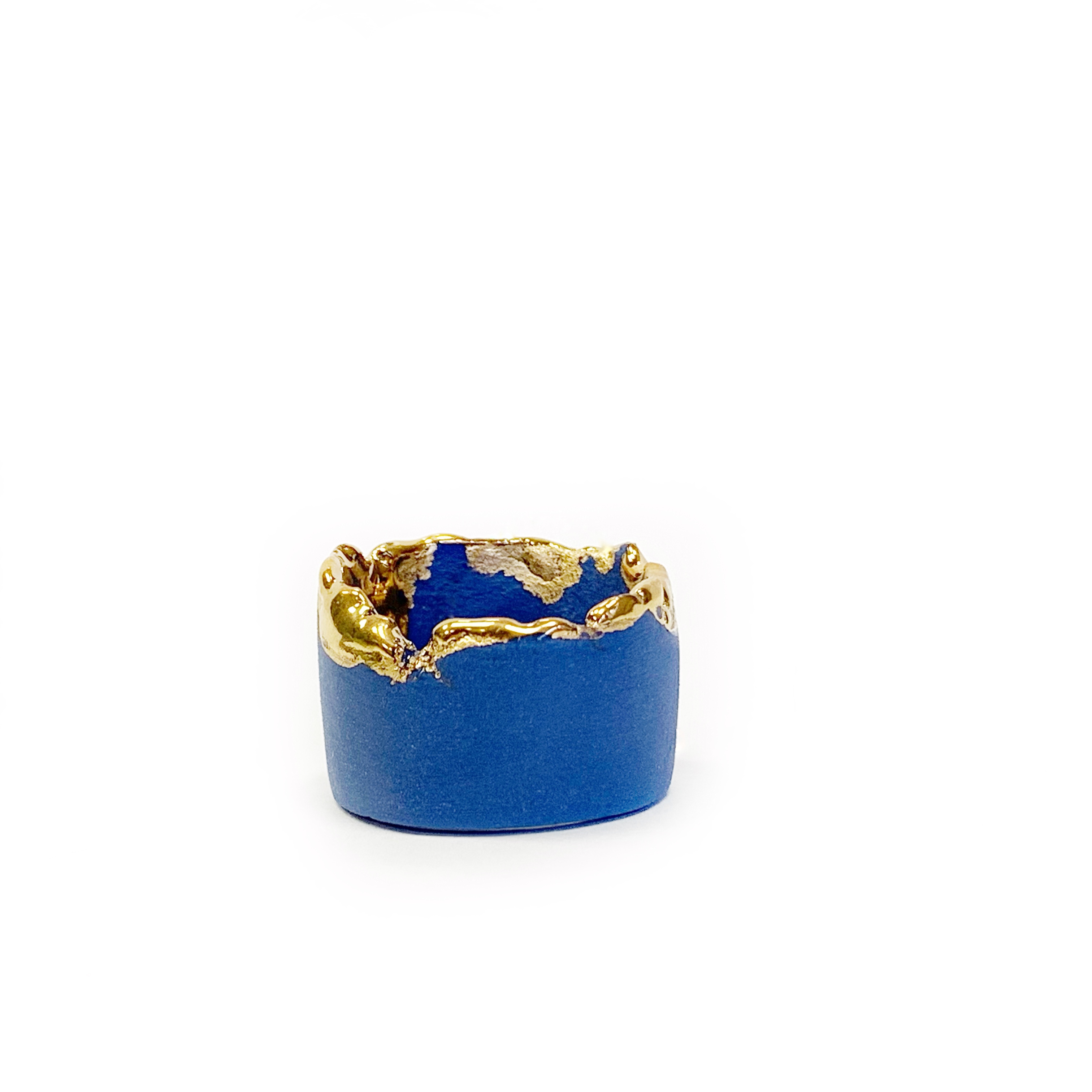 Mėlynas porcelianinis žiedas, dengtas aukso liustra.