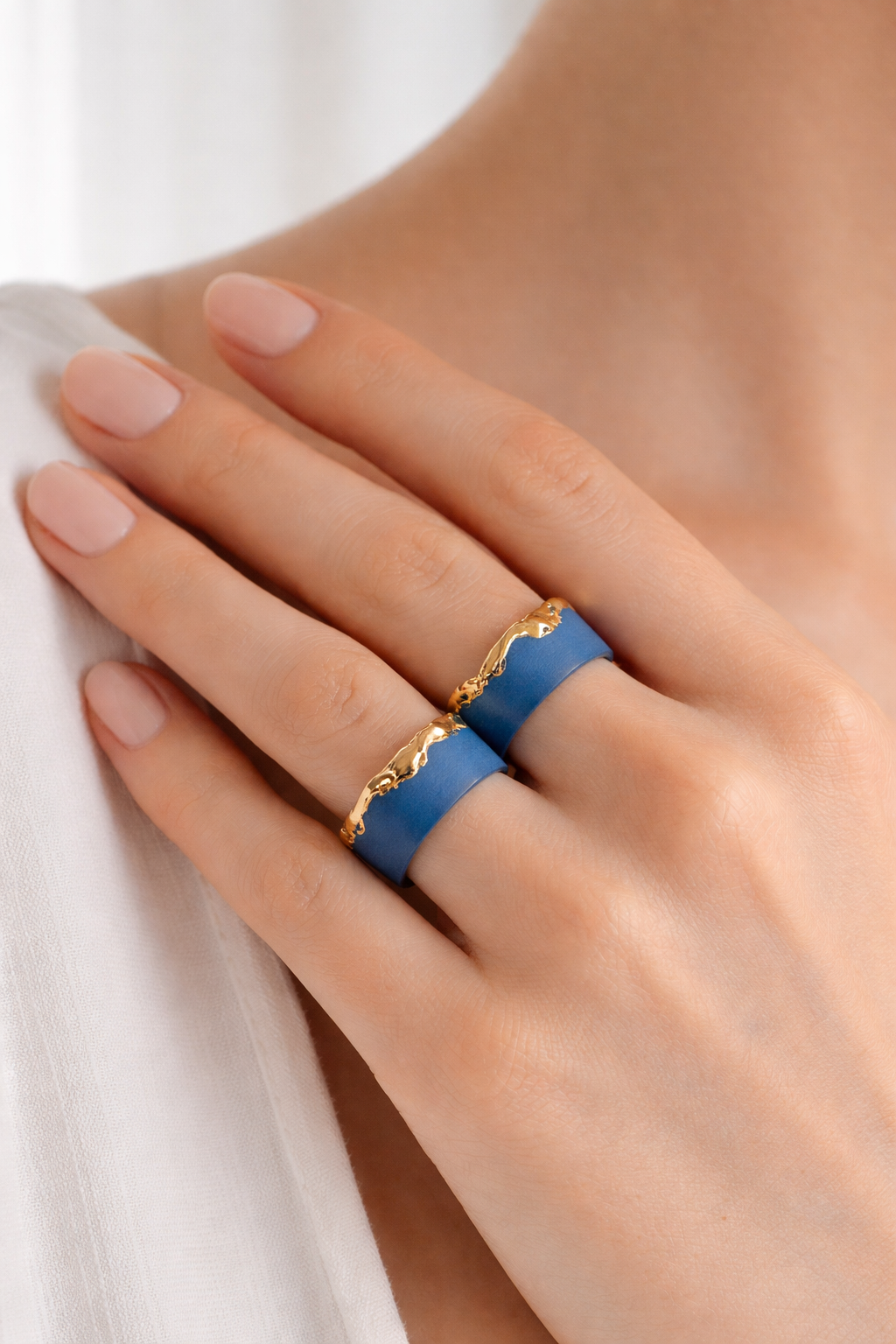 Maži dalykai. Mėlynas porcelianinis žiedas AUKSINĖ BANGA