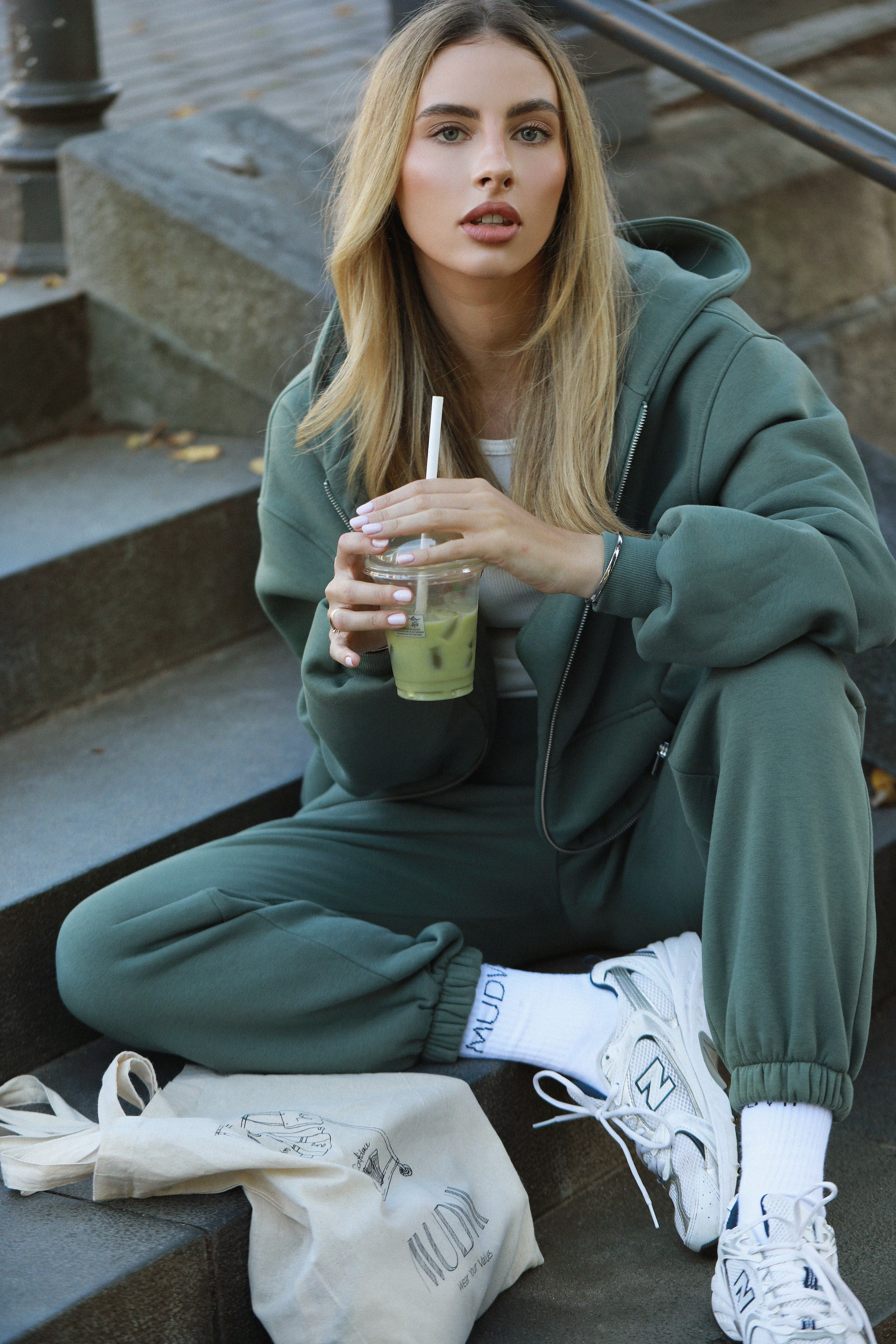 mudvii. kelnės ENERGY Sage green
