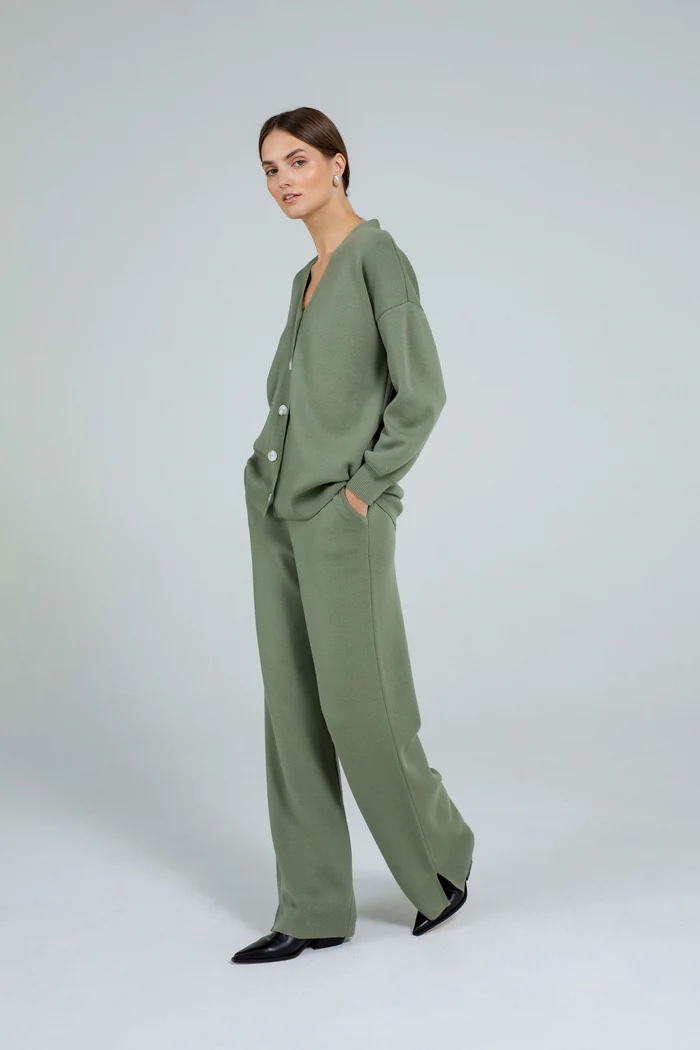 Plačios, laisvo silueto, 100% merino vilnos kelnės su kišenėmis. Tai šiltas ir stilingas rūbas suteikiantis nevaržančio komforto ir jausms. Derinant PAULINE megztuką ar siaustini susikursi itin madinga uniformą kiekvienai dienai. Nepabijodama šias kelnes derinti ir su kitais megztinių modeliais atrasi netikėtų ir įdomių derinių.
