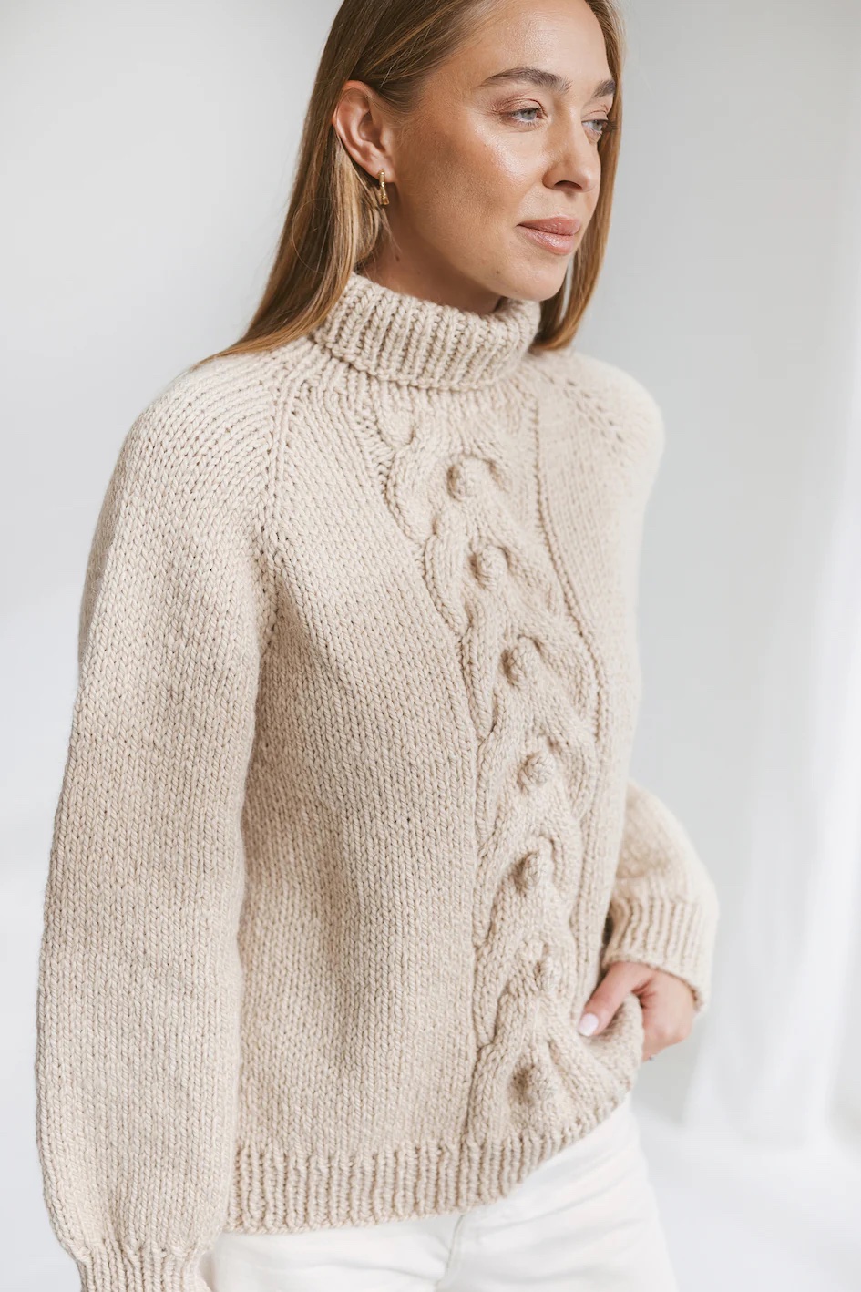 Išsiskirkite iš minios su mezginiu, pagamintu tik iš natūralių medžiagų. Šis dieviškas alpakos vilnos megztinis – puikus bet kokio įvaizdžio papildymas. Nesvarbu, ar tai būtų įprasta darbo diena biure, ar pasivaikščiojimas pajūriu – su šiuo dailiu smėlio spalvos mezginiu jūsų moteriškas grožis tikrai atsiskleis. O jei diena pasirodys vėsesnė nei tikėtasi, vilnos ir alpakos derinys užtikrins šilumą ir jaukumą.