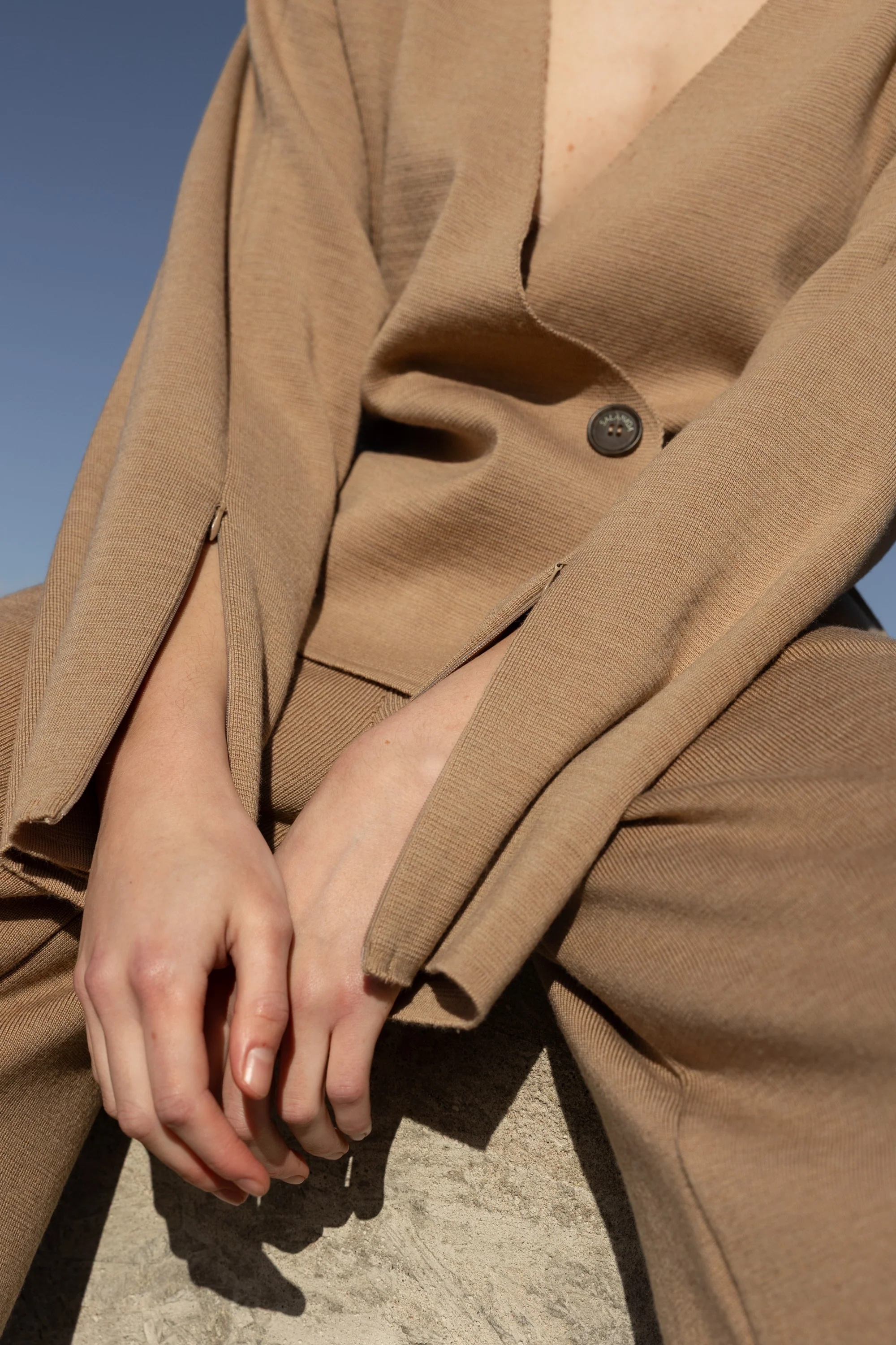 Galante švarkas - tai modernus žvilgsnis į amžiną klasiką. Šio švarko struktūriškas dizainas su dvieiliu susegimu dailiai pabrėžia liemenį. Paslėpti užtrauktukai rankovėse - žaismingas dizaino sprendimas siekiant stiliaus ir funkcionalumo.