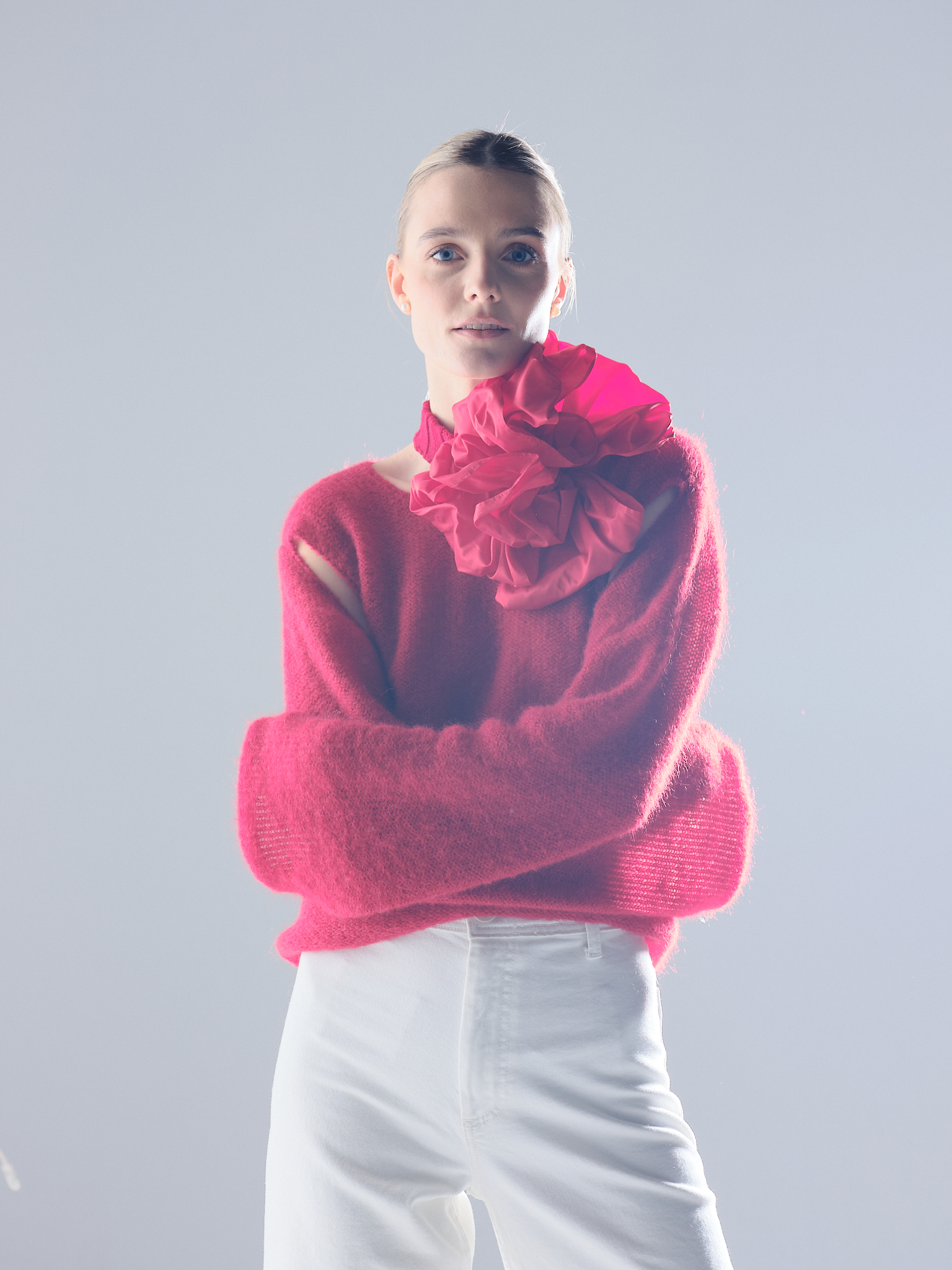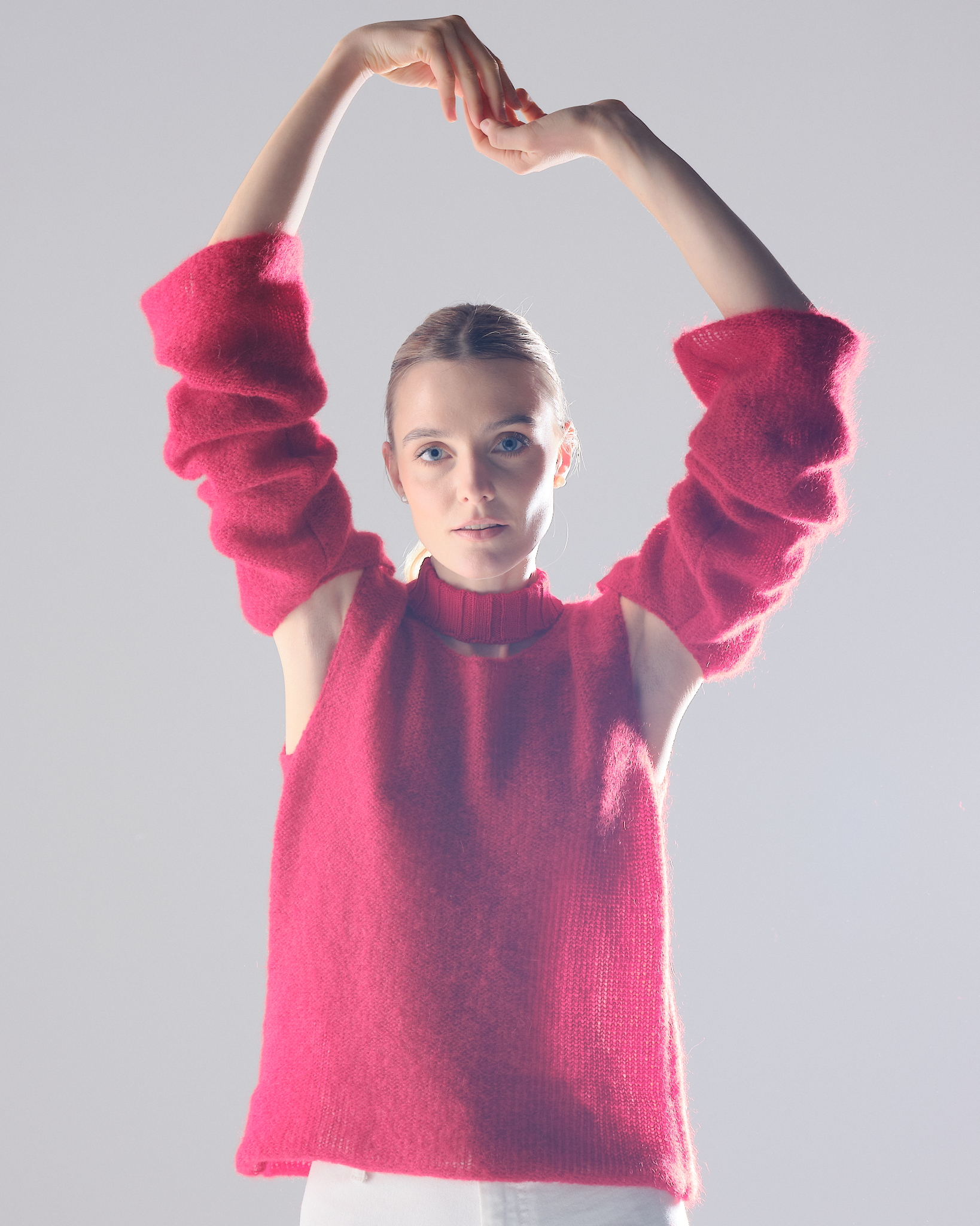 memphita. Baltas moherinis megztukas
