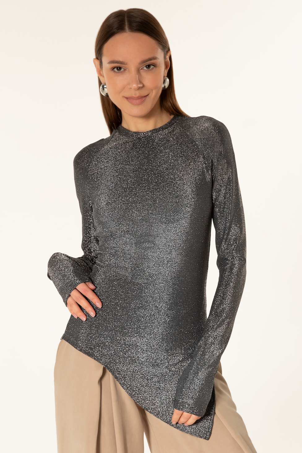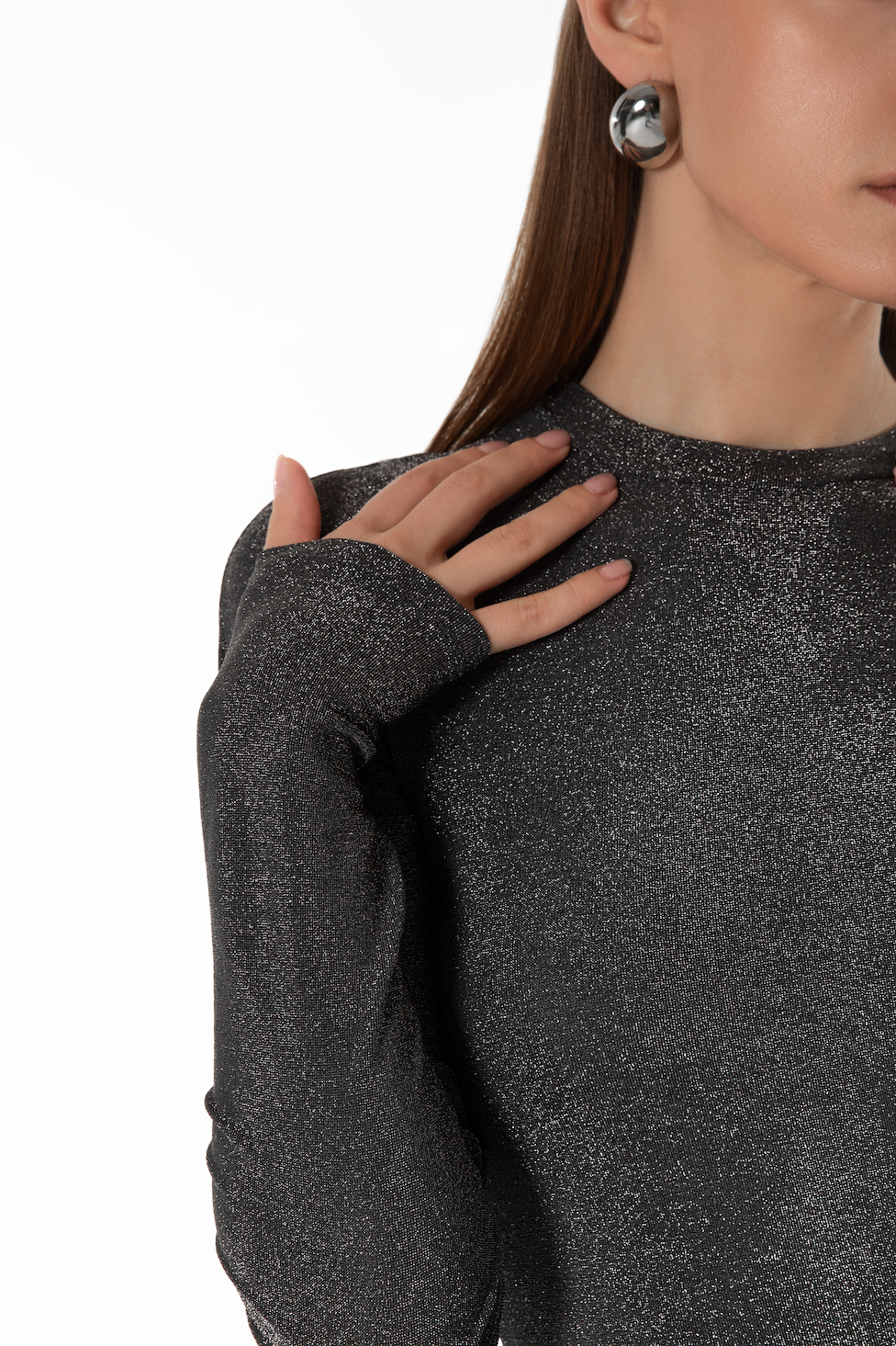 Pagaminta iš Jersey Lurex medžiagos, ši audinys pasižymi unikalia dvipuse struktūra: