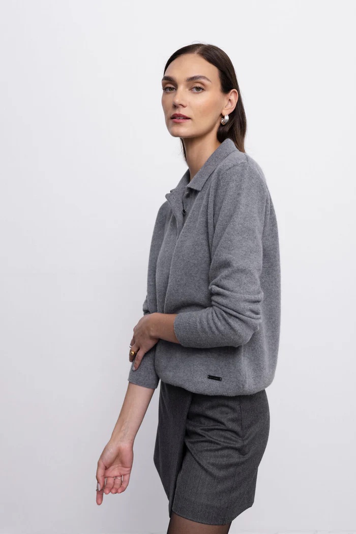 'CHARLOTTE' palaidinė, pagaminta iš merino vilnos ir kašmyro, kuri pasižymi lengvumu ir švelnumu. Klasikinė apykaklė bei subtilios metalinės sagutės suteikia jai grakštumo ir elegancijos. Plonesnė nei įprastas megztinis, ji kuria dailų siluetą ir yra puikus pasirinkimas tiek kasdienai, tiek oficialesnėms progoms.