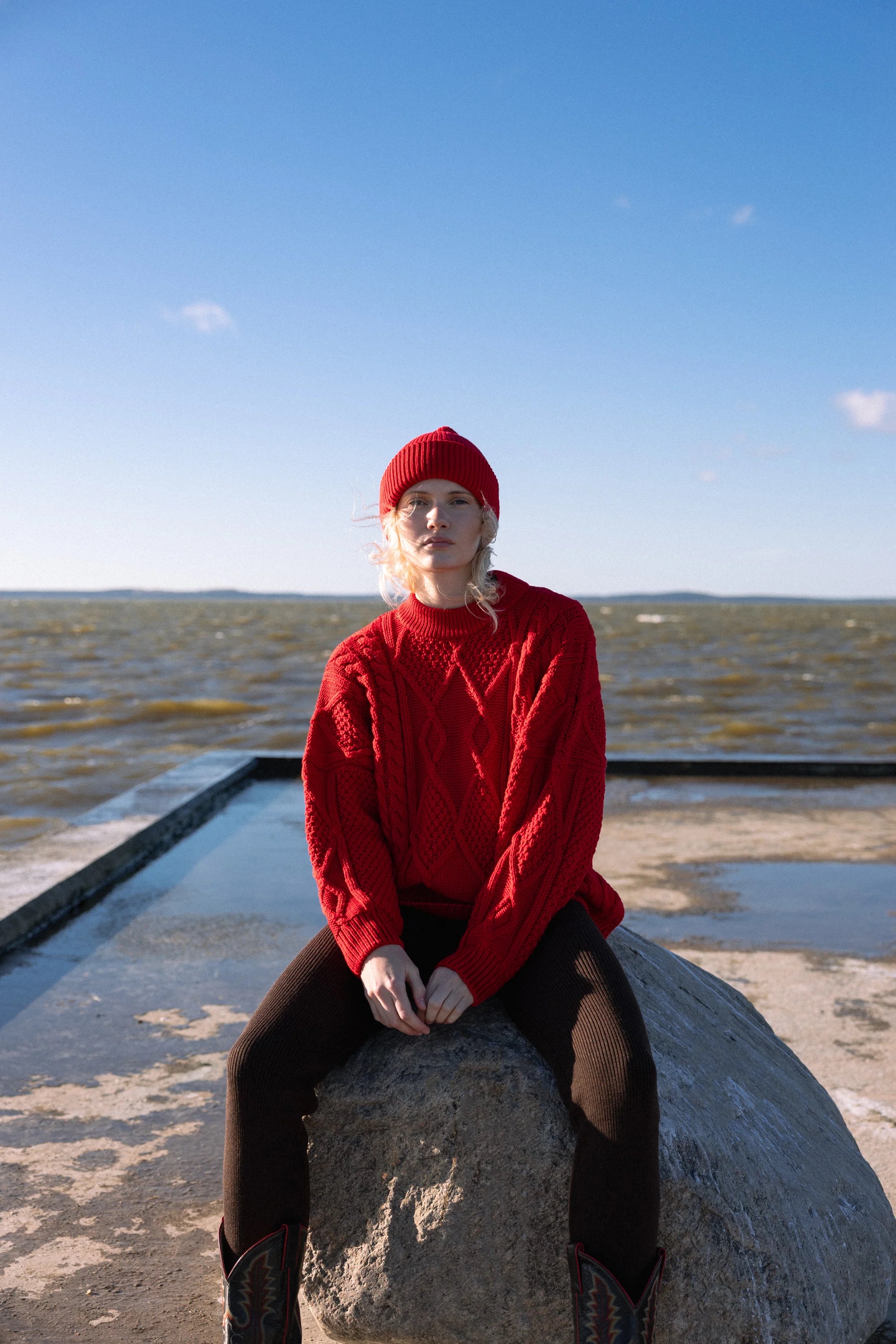 Nonna tarsi močiutės megztas - didelis, šiltas, pynėmis išraitytas megztinis. Tai laiko patikrintas ir vienas populiariausių pasirinkimų iš švelnios ir natūralios extra fine merino vilnos.