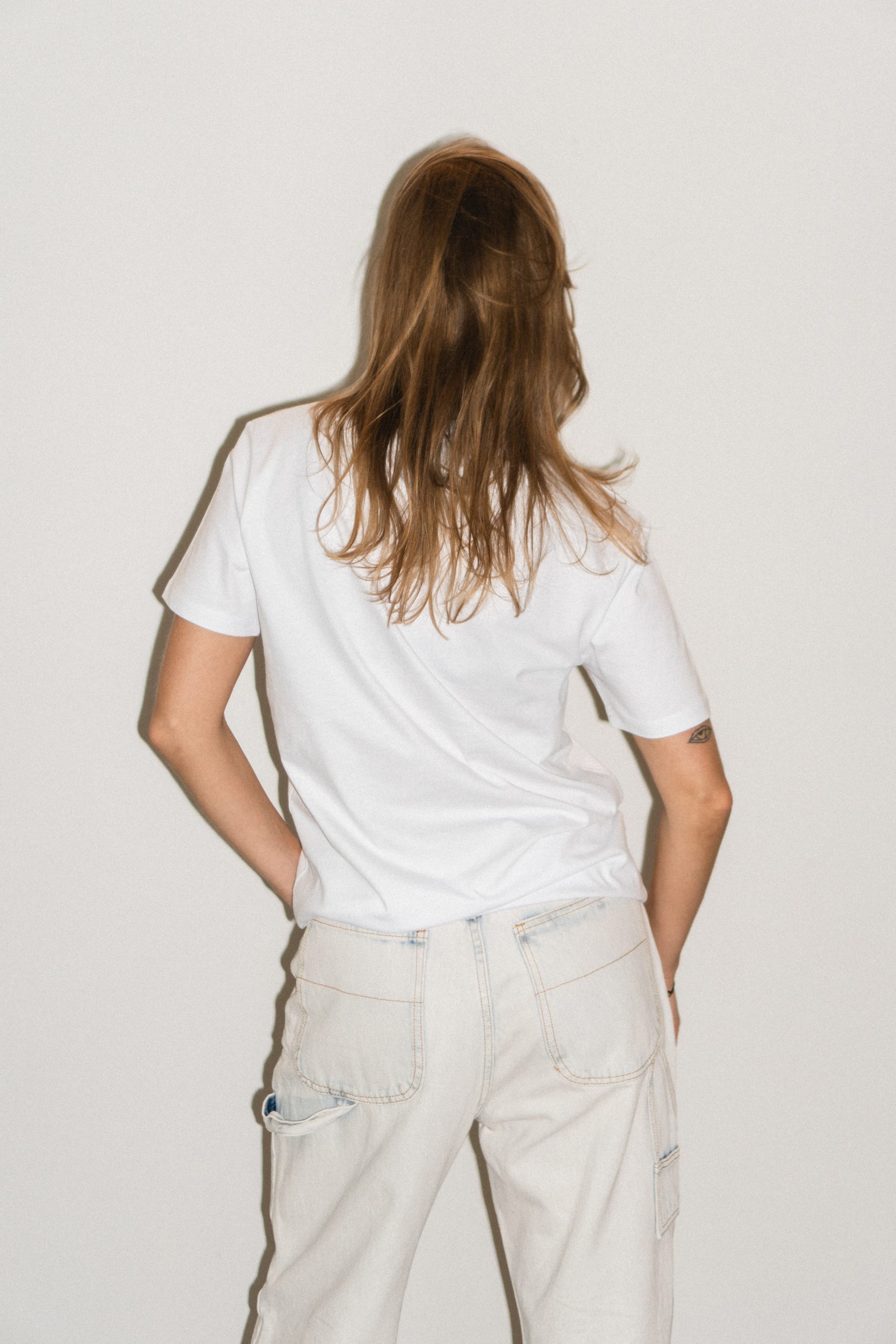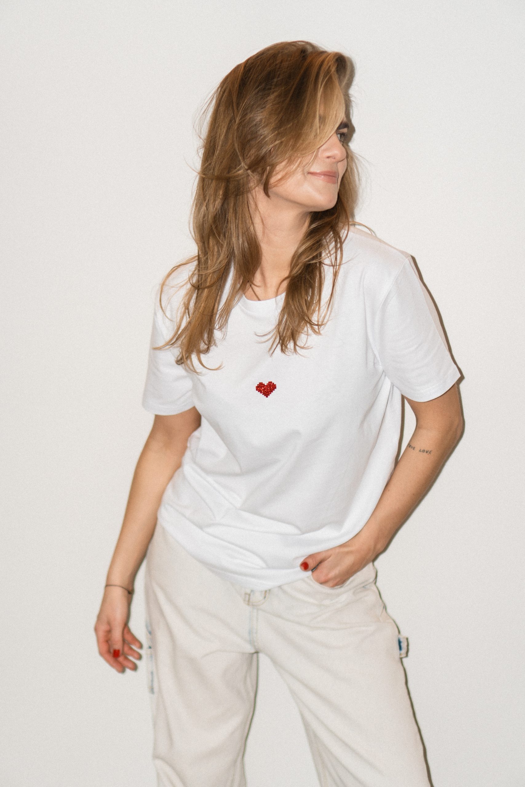 Atnaujinta TOKER EDITION ŠIRDIS. marškinėliai apskrita iškirpte ir trumpomis rankovėmis sunaujai atrastu širdelės dizainu.