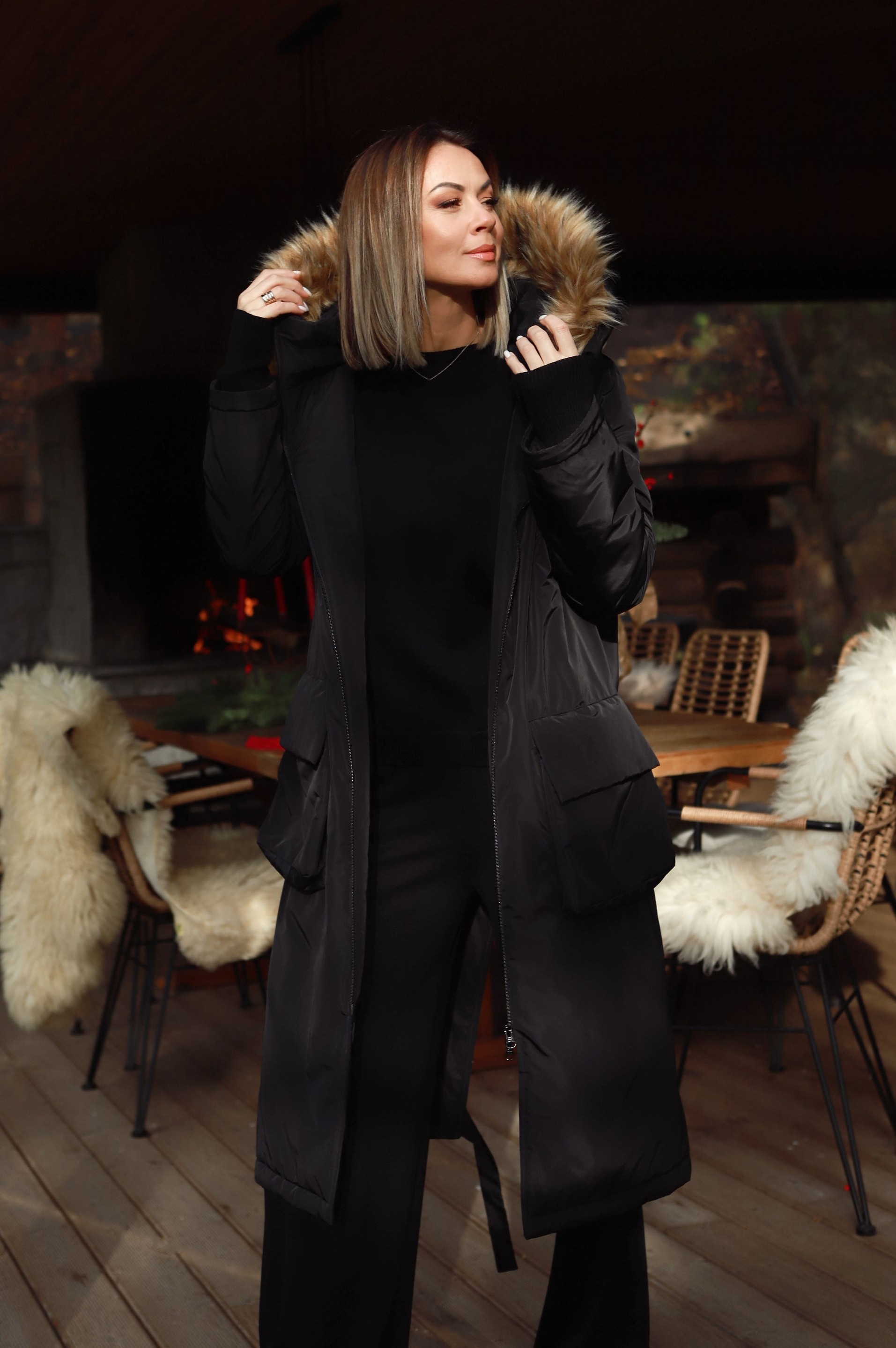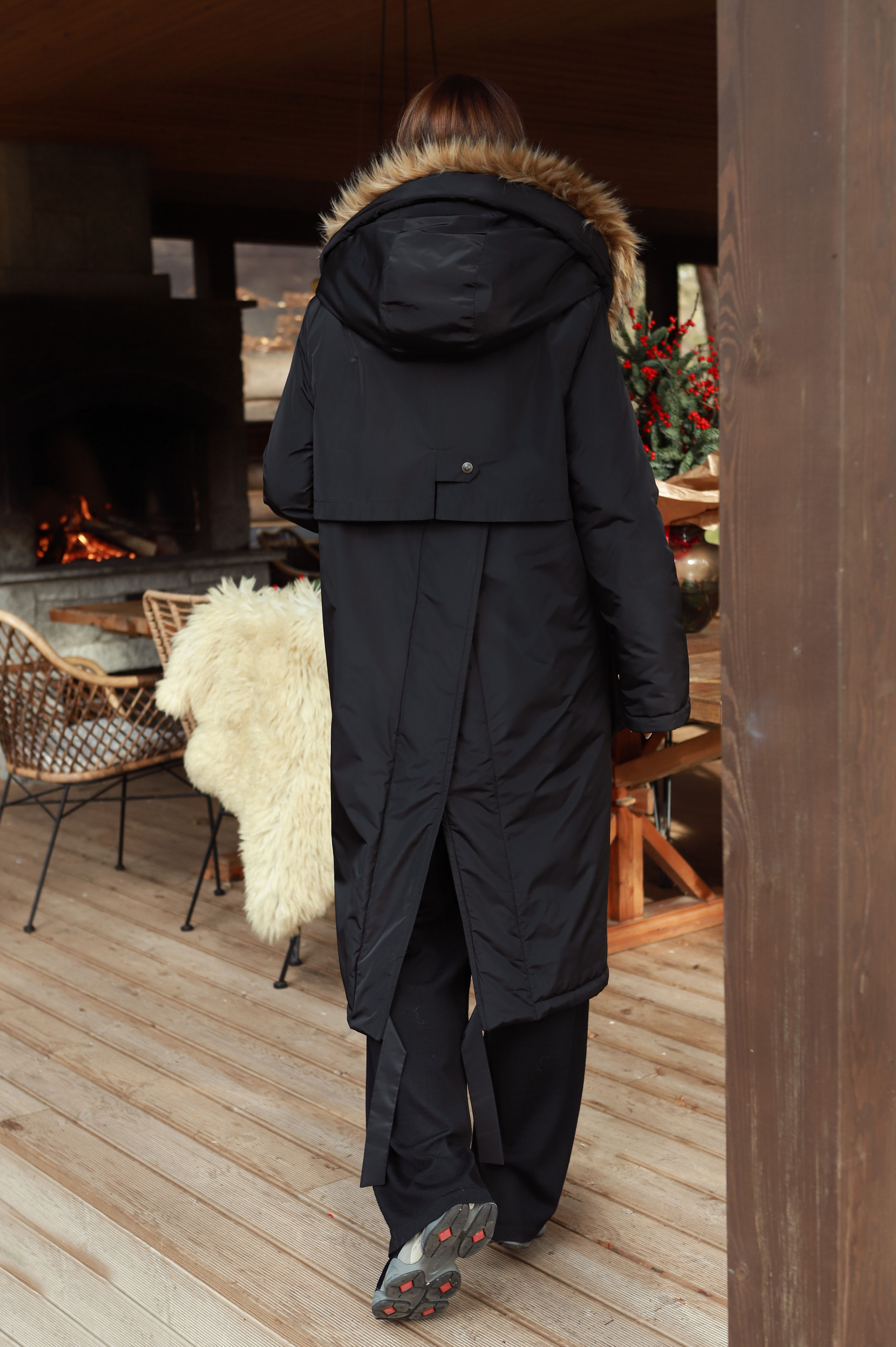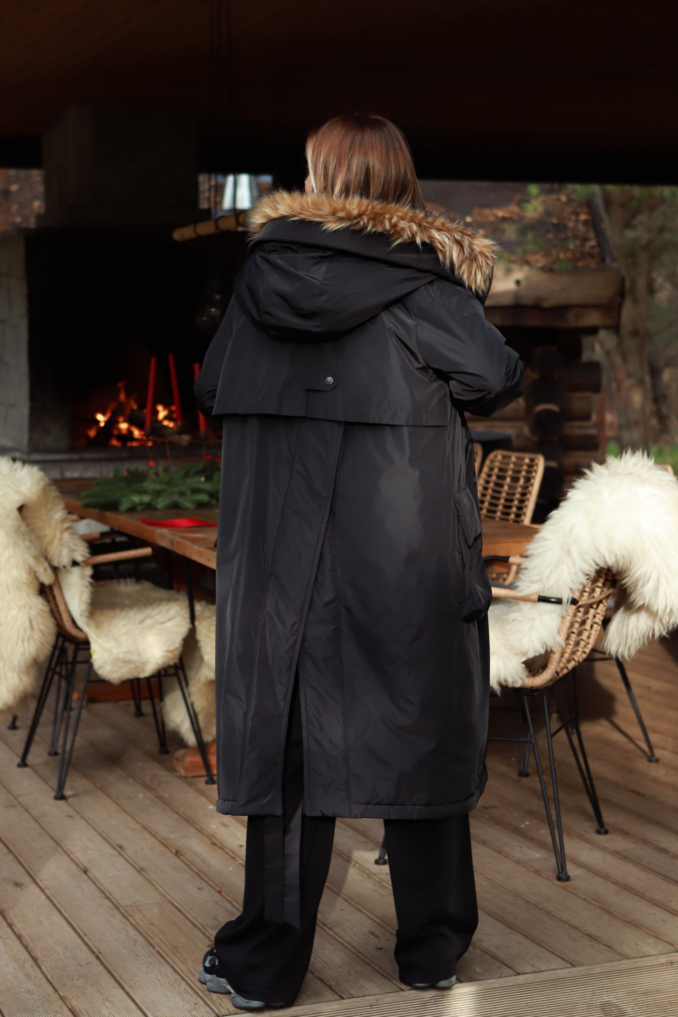 -Patogus nusegamas „kapišonas“, „padabintas“ dirbtiniu nusegamu kailiuku. Pažymėtina, kad šis „kraftas“ puikus transformeris- jame nusisega ne tik kailiukas nuo „kapišono“, bet Jūsų pageidavimu- paltukas gali tapti „bekapišoniniu“, nes nusisega ir jis pats.