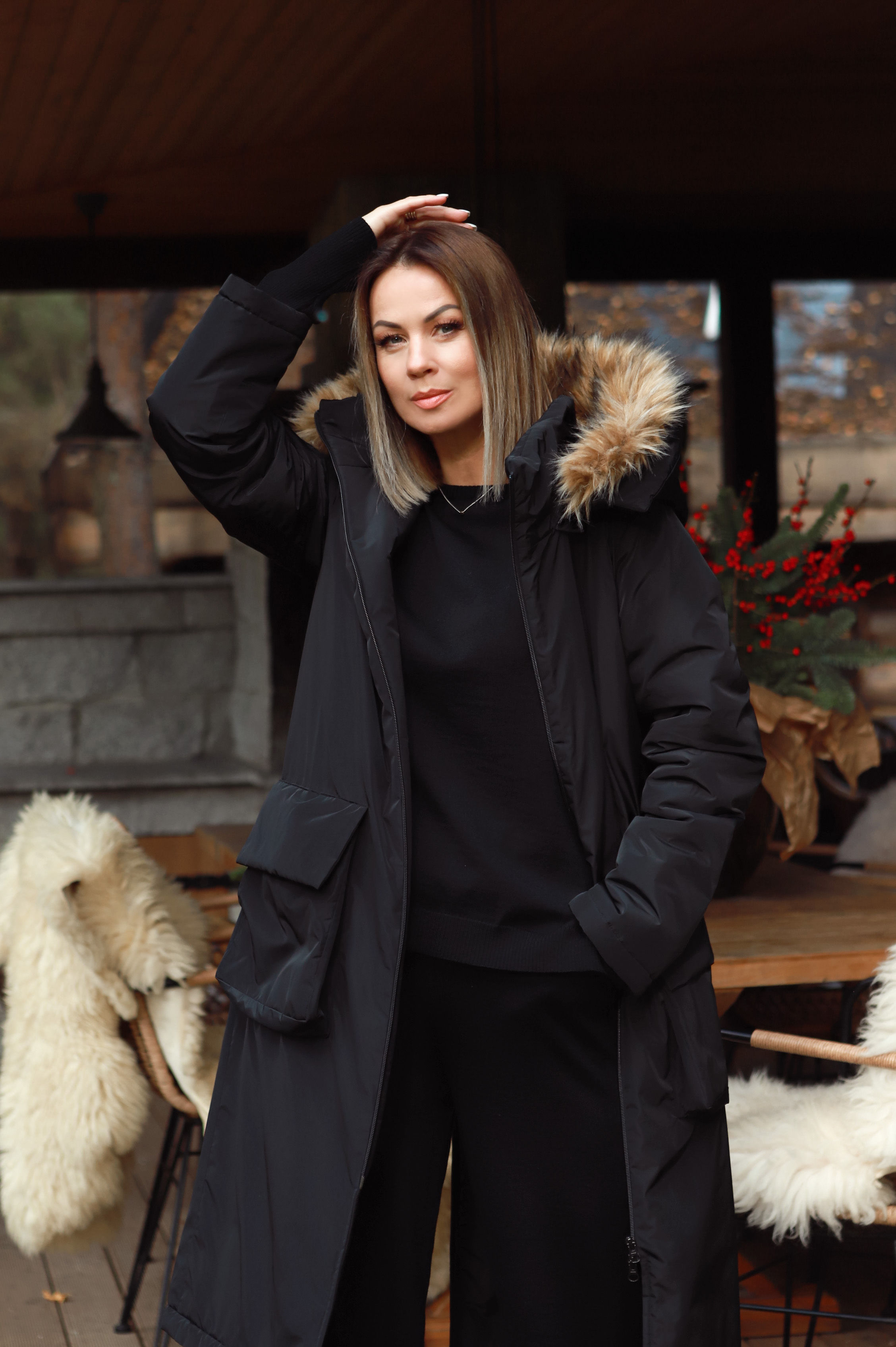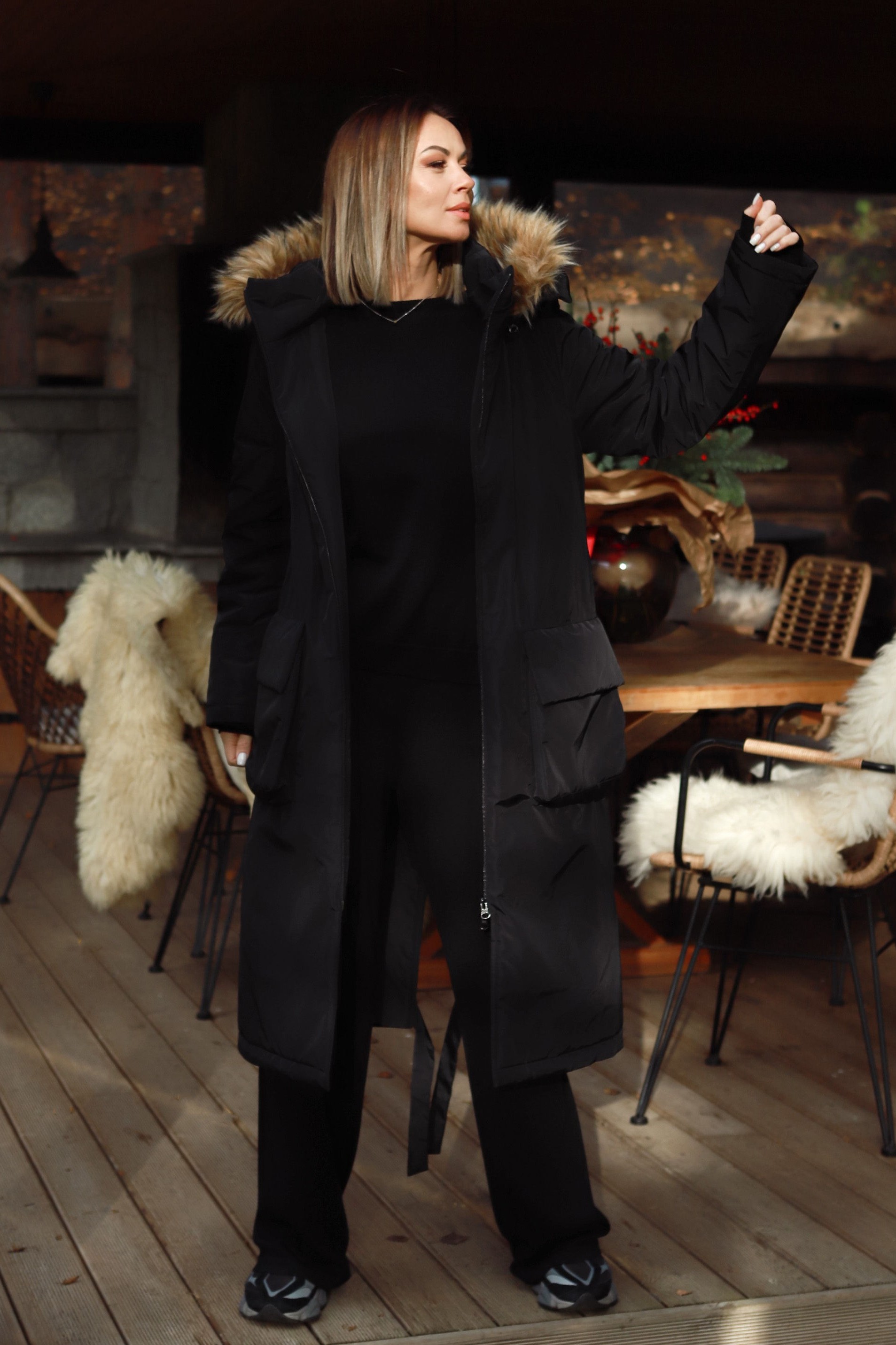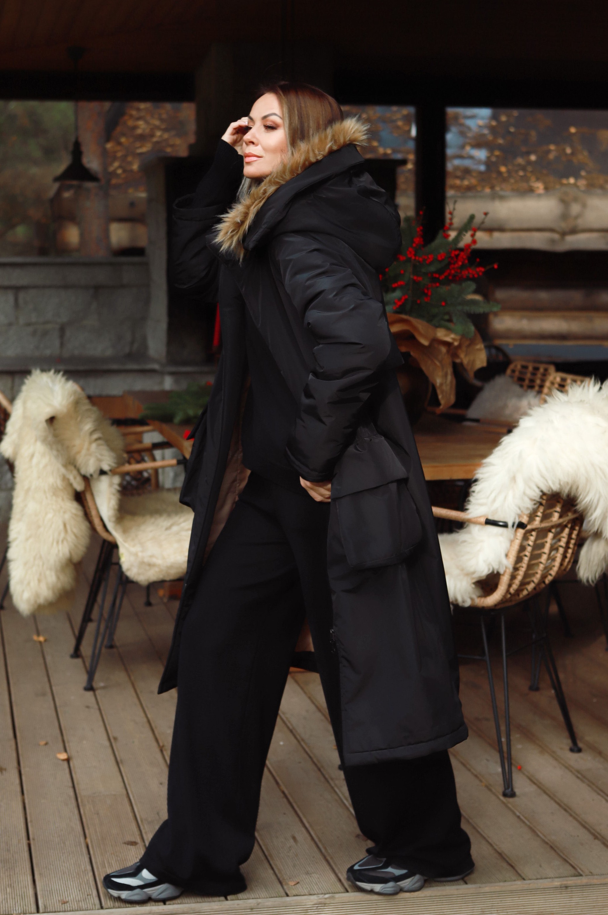 -Patogus nusegamas „kapišonas“, „padabintas“ dirbtiniu nusegamu kailiuku. Pažymėtina, kad šis „kraftas“ puikus transformeris- jame nusisega ne tik kailiukas nuo „kapišono“, bet Jūsų pageidavimu- paltukas gali tapti „bekapišoniniu“, nes nusisega ir jis pats.