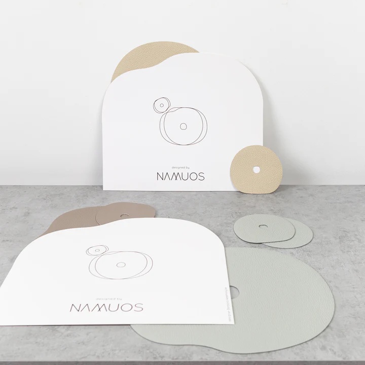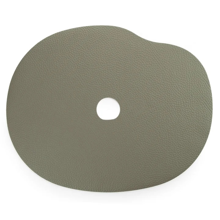Alyvuogių spalvos padėkliukai skirti stalo serviravimui, o jų forma sukurta stilizuojant senųjų girnų formą. Tai ilgaamžis ir malonus liesti gaminys, o naturali medžiaga suteiks stalui prabangos jausmo. Didysis odinis padėkliukas skirtas lėkštei, mažasis - taurei ar puodeliui. Padėkliukus galima naudoti ne tik serviruojant pietų stalą, bet ir dekoruojant žurnalį staliuką padėjus padėkliuką po vaza ir pan.