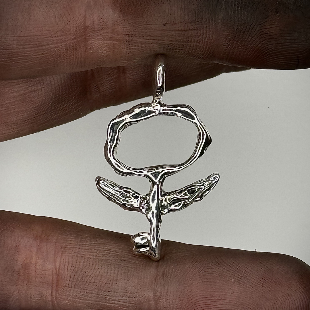 Šis unikalus rankų darbo pakabukas, pagamintas iš sidabro, išsiskiria savo menišku ir šiek tiek paslaptingu dizainu. Subtilios formos ir išraiškingos detalės suteikia jam charakterio, todėl jis puikiai tiks tiek kasdieniam nešiojimui, tiek kaip išskirtinis akcentas ypatingoms progoms.