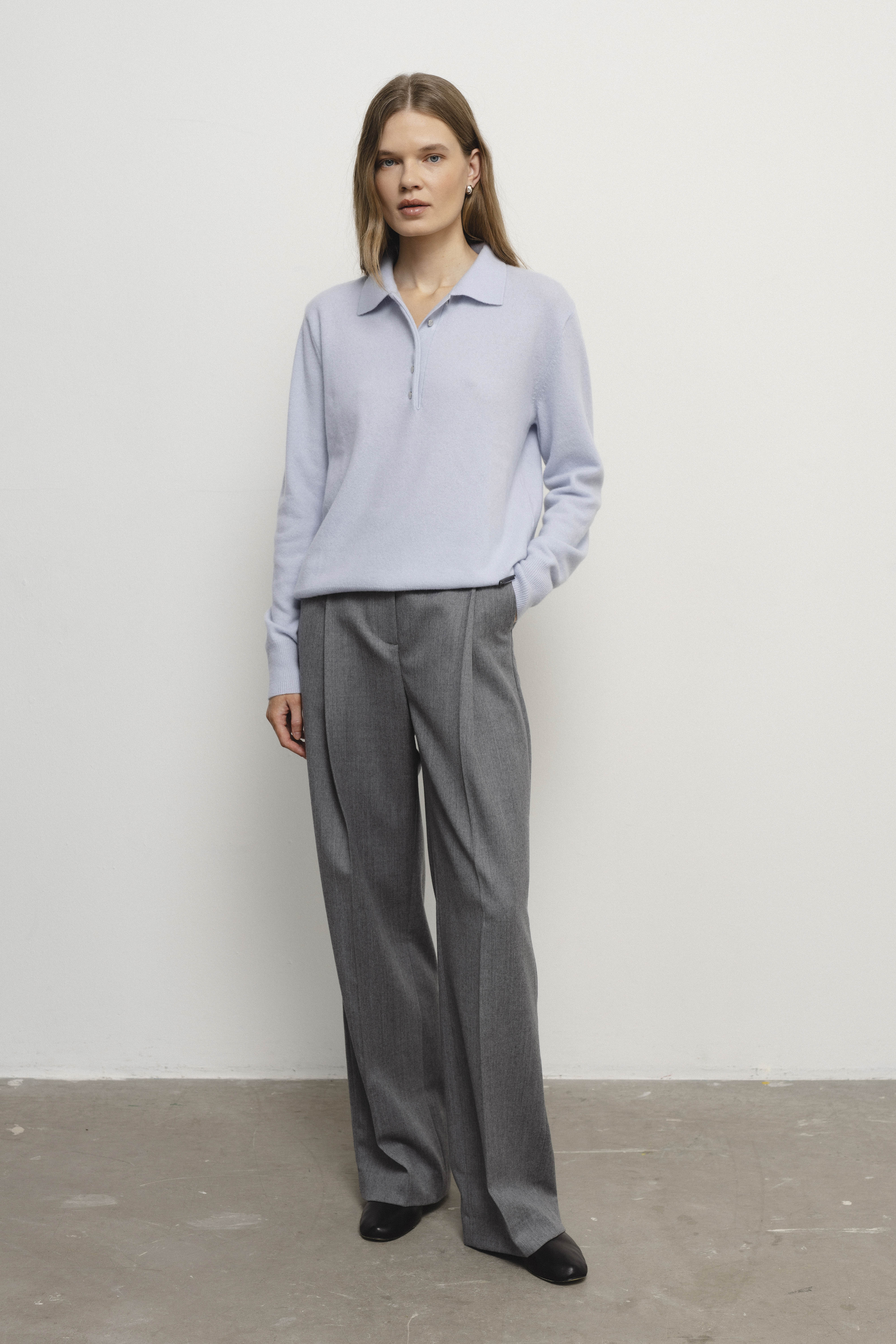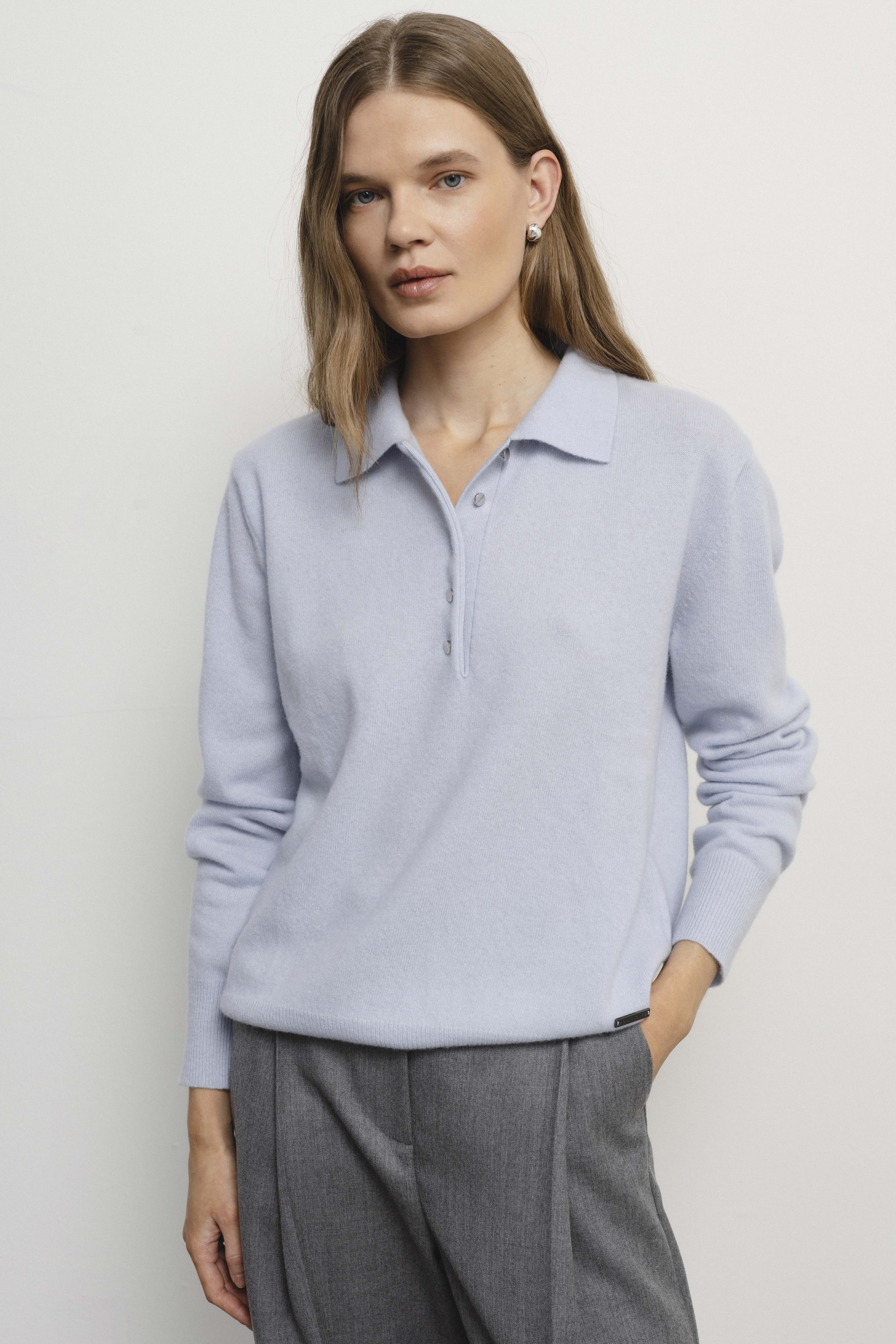 CHARLOTTE palaidinė, pagaminta iš merino vilnos ir kašmyro, kuri pasižymi lengvumu ir švelnumu. Klasikinė apykaklė bei subtilios metalinės sagutės suteikia jai grakštumo ir elegancijos. Plonesnė nei įprastas megztinis, ji kuria dailų siluetą ir yra puikus pasirinkimas tiek kasdienai, tiek oficialesnėms progoms.
