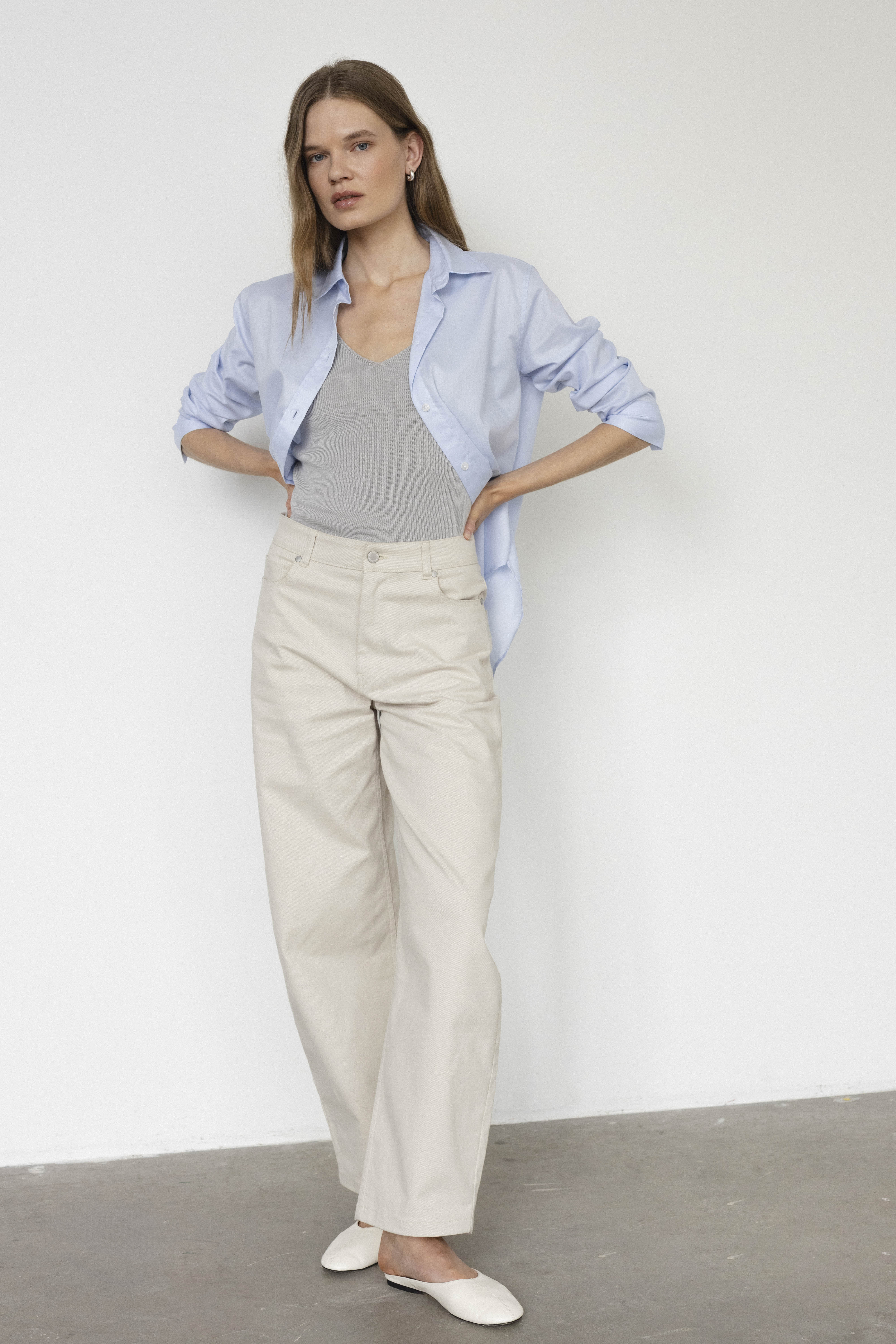 Šie barrel formos džinsai sukurti lengvam ir neįpareigojančiam stiliui. Pagaminti iš plonesnio džinso, jie pasižymi laisvesniu siluetu, kuris užtikrina visišką judėjimo laisvę. Nugaroje yra subtili veganiškos odos etiketė su ROBI AGNES logotipu. Tai universalus pasirinkimas kasdienai, suteikiantis ramybės ir komforto pojūtį šiltuoju sezonu.