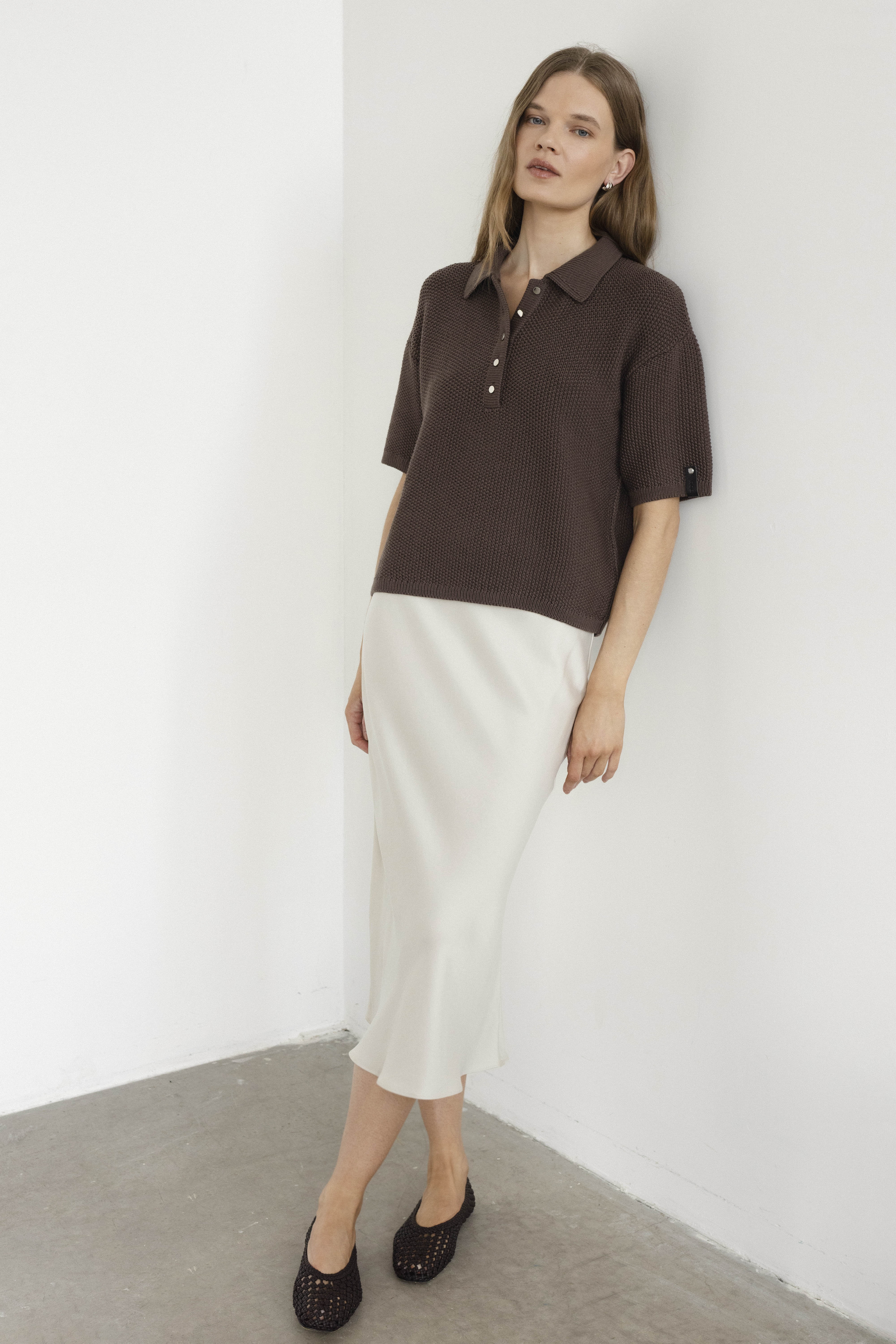 Ši 100% merino vilnos palaidinė sukurta ypatingam komfortui ir tinka net jautriausiai odai. Natūralus siūlų spindesys išryškina subtilų koriuko raštą, o apykaklė ir sagutės suteikia įvaizdžiui išbaigtumo. Tai universalus modelis ir atsakinga investicija, išliekanti aktuali ne vieną sezoną.