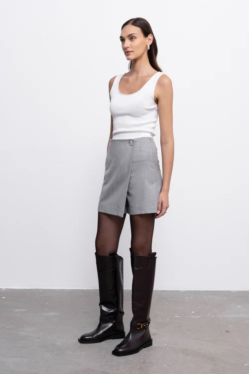 SOPHIE sijonšorčiai subtiliai jungia sijono eleganciją ir šortų patogumą – puikus pasirinkimas, kai norisi atrodyti pasipuošusiai, bet jaustis laisvai. Pagaminti iš 100 % vilnos, jie išsiskiria lengvu siluetu ir universaliu dizainu. Derinami su golfu, palaidine ar kardiganu, šie sijonšorčiai lengvai prisitaiko prie įvairių derinių - nuo kasdienio iki šventiškesnio.
