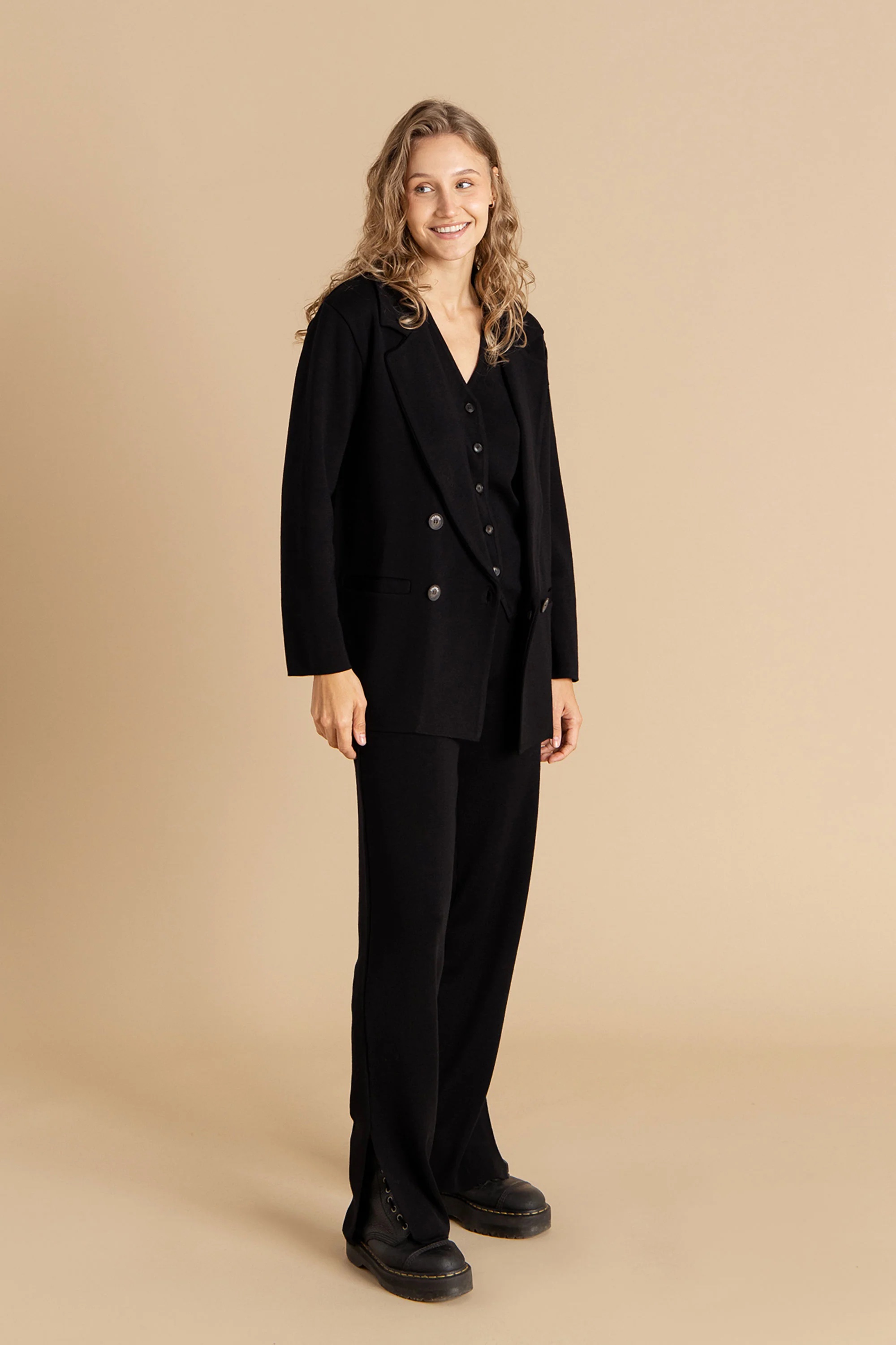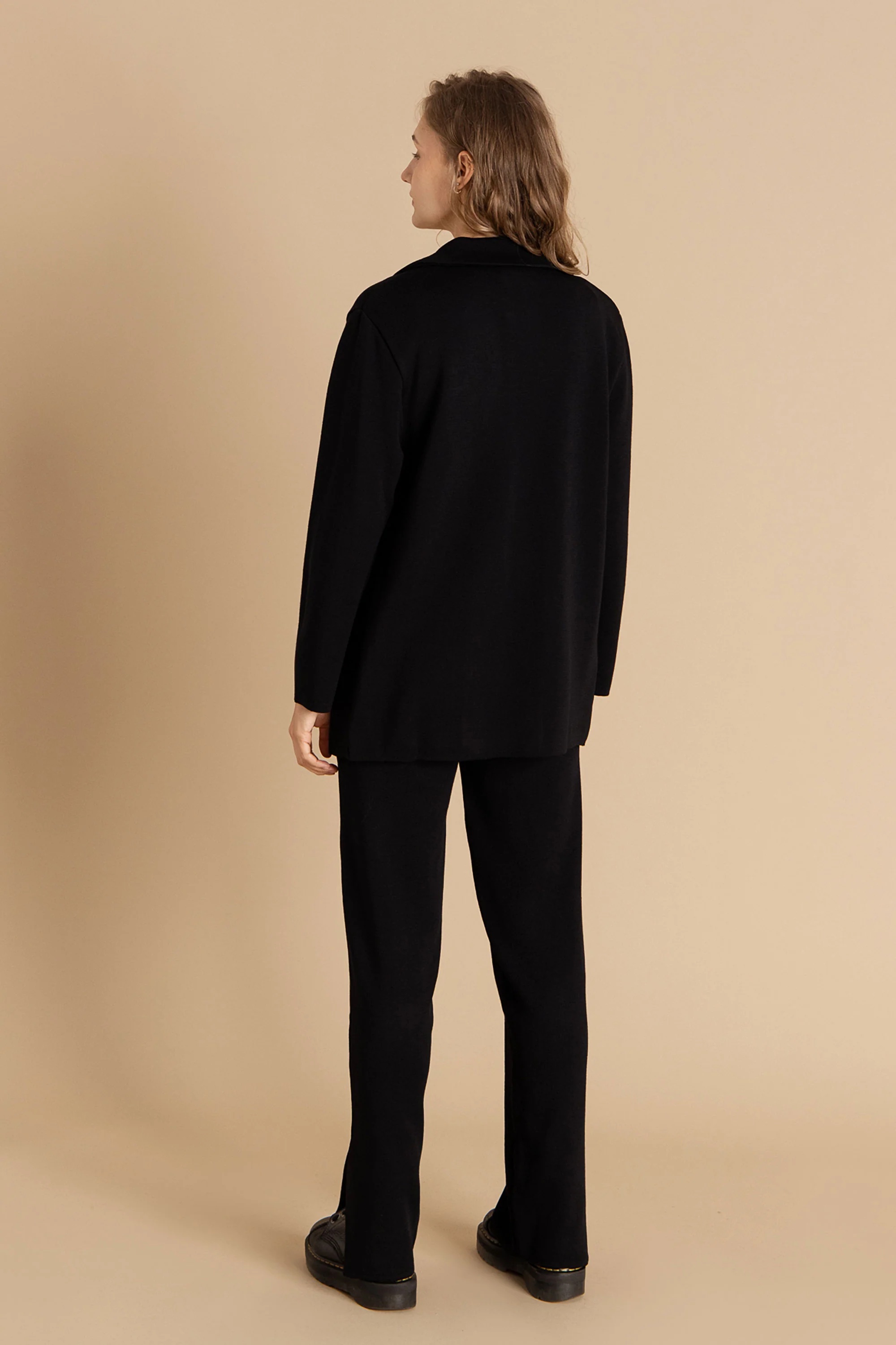 Forza švarkas - jis kalba apie vidinę stiprybę. Tai stilinga megzta klasikinio kostiumo interpretacija. Šis švarkas laisvo oversize silueto su dvieiliu susegimu ir kišenėmis.