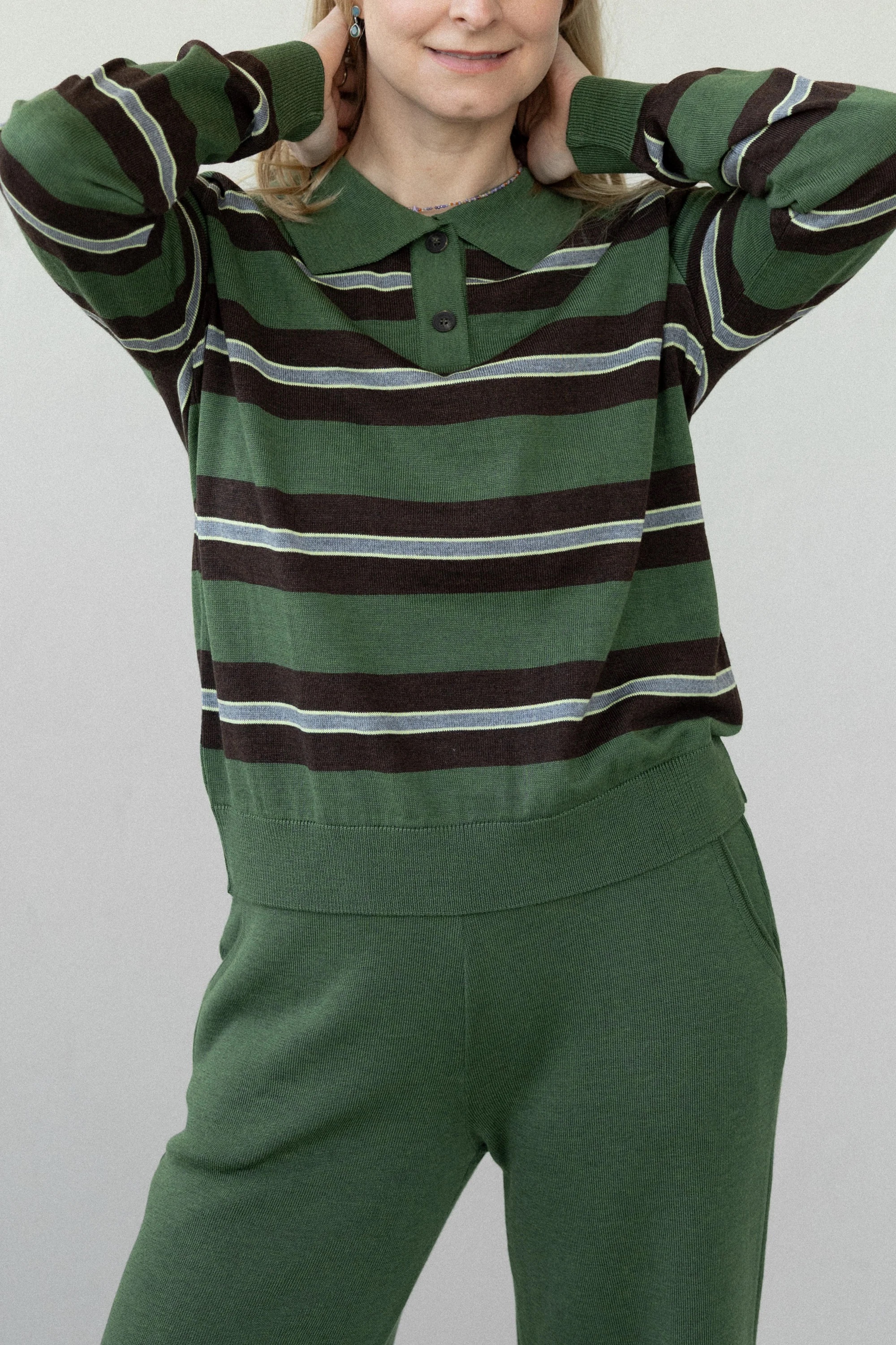 Salanida. Galante merino polo palaidinė Žalia dryžuota