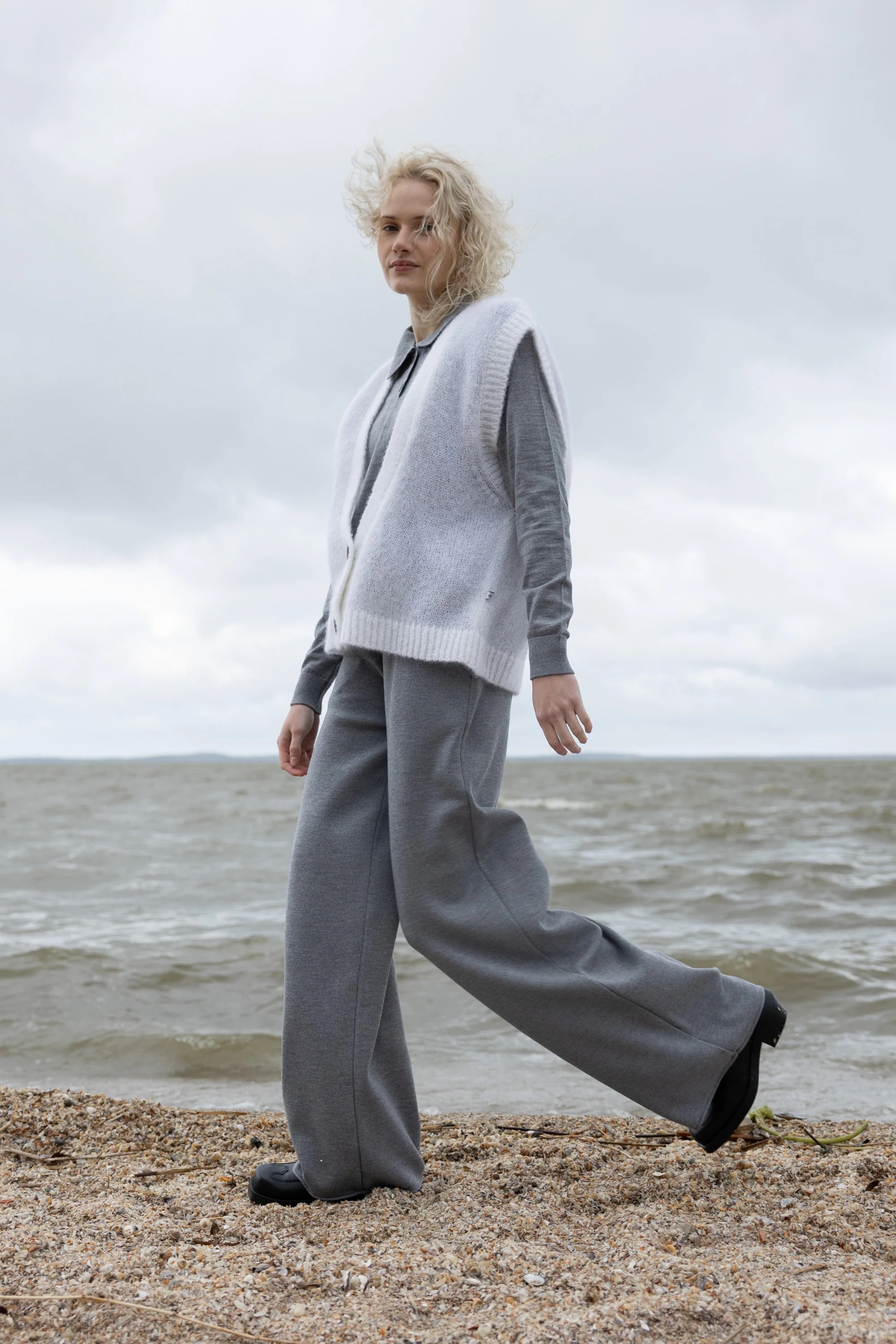 Naujas minkštas sluoksnis į debesėlių kolekciją. Melody liemenė - tai drabužis, peržengiantis sezonų ir tendencijų ribas. Megzta iš švelniausios kid moheros, jis apgaubs neapsakomu jaukumu ir šiluma. Sukurta laisvo silueto ir vieno universalaus dydžio, ji puošta firminėmis logo sagomis. Sluoksniuok kasdienai su palaidinėmis, marškinėliais ir marškiniais.