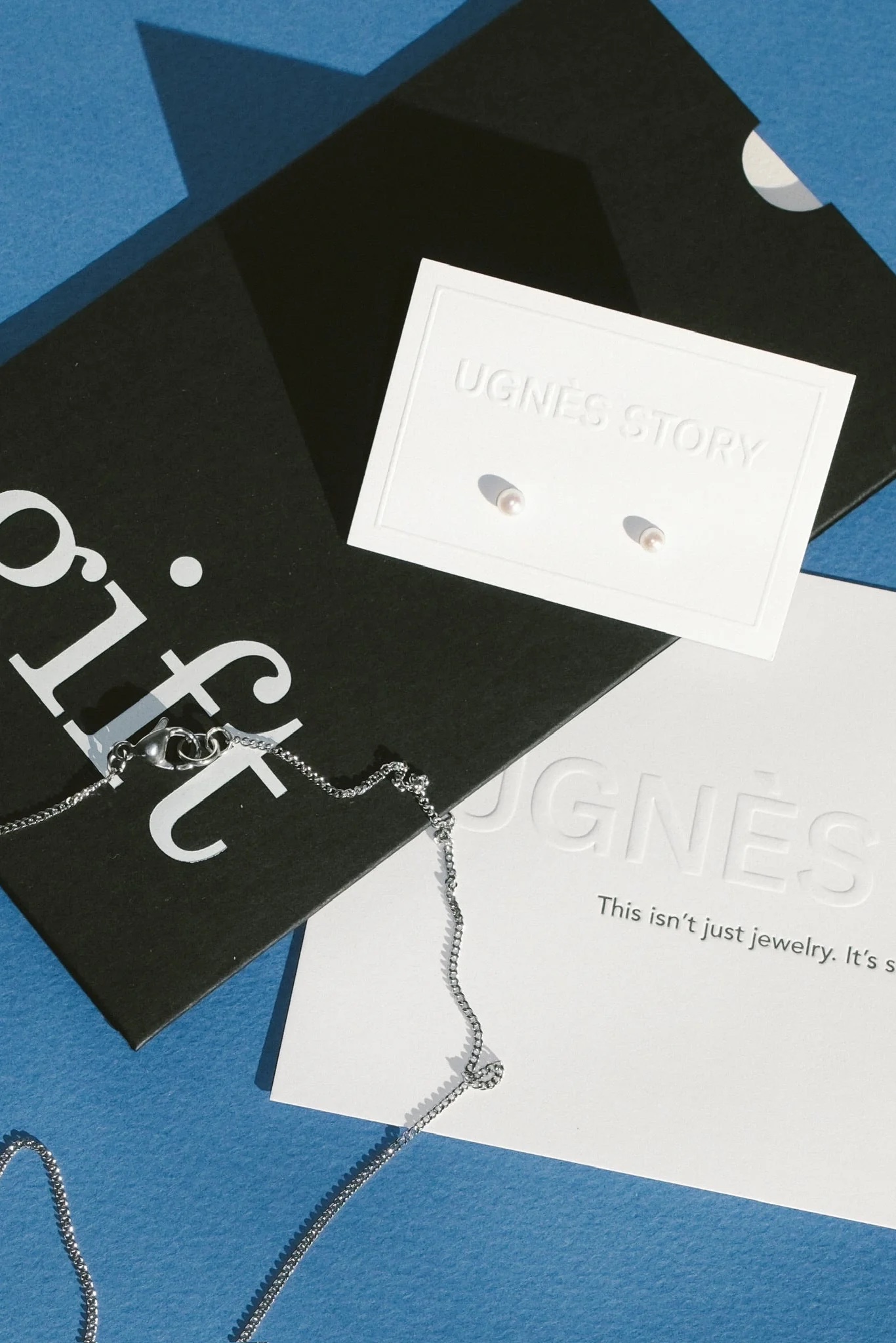 Visi mūsų papuošalai supakuojami į tvirtą dėžutę ir firminį medvilninį maišelį, todėl jie iškart paruošti dovanoti. Jei norėtumėte pridėti asmeninę žinutę, parašykite mums, ir mes ranka ją užrašysime ant kortelės. Tai gali tapti viena jaukiausių dovanų jūsų artimajam ar net sau pačiam.