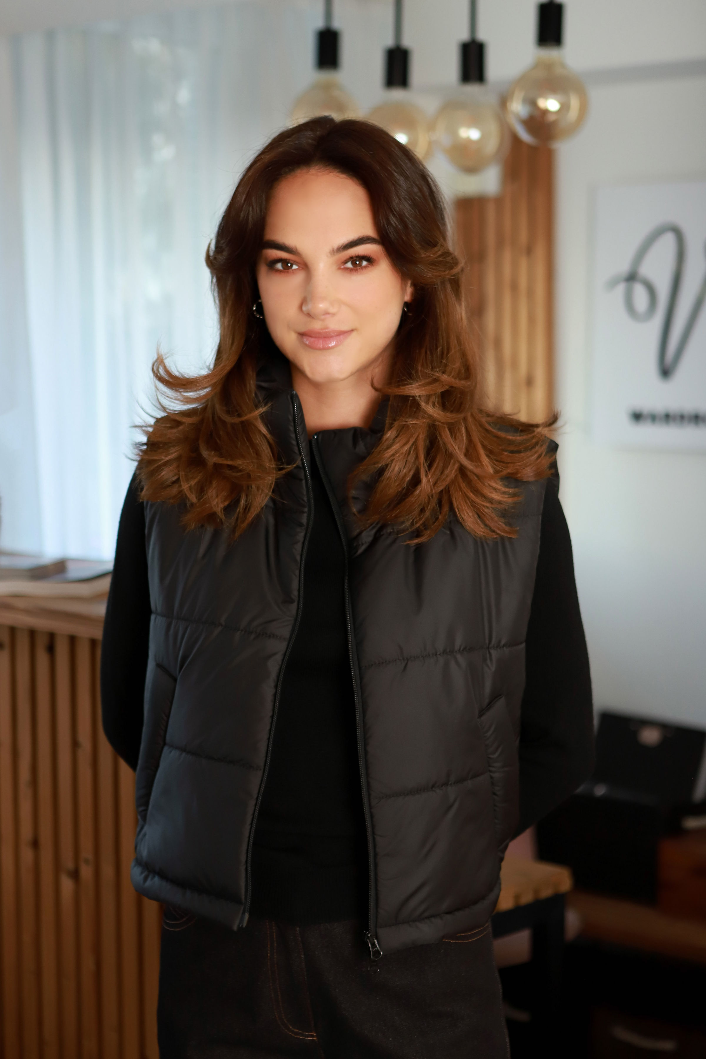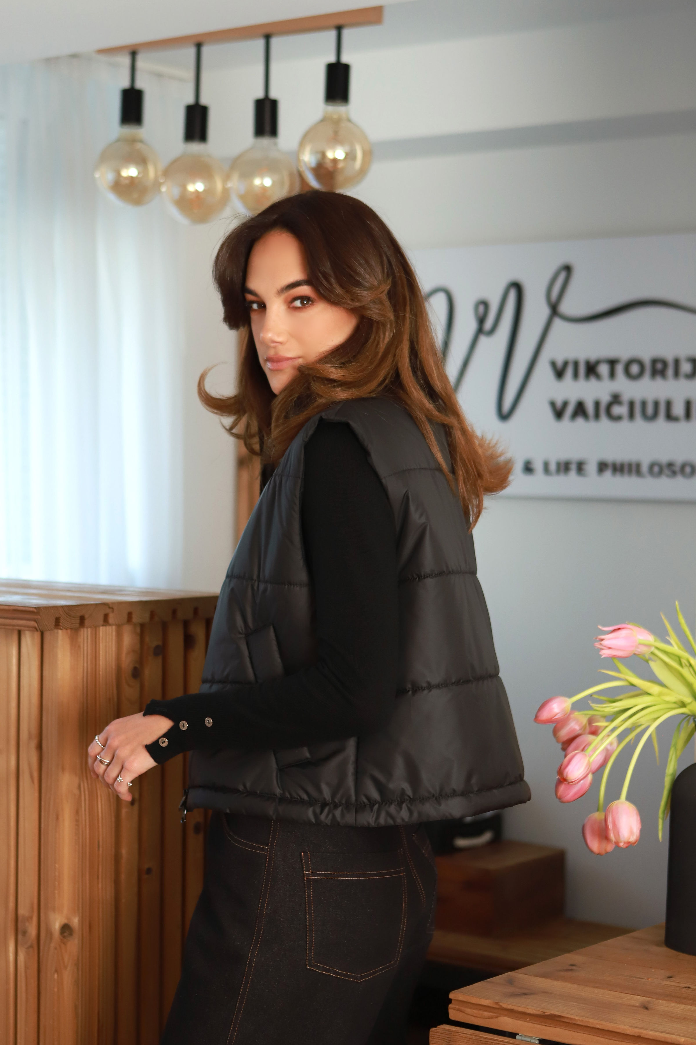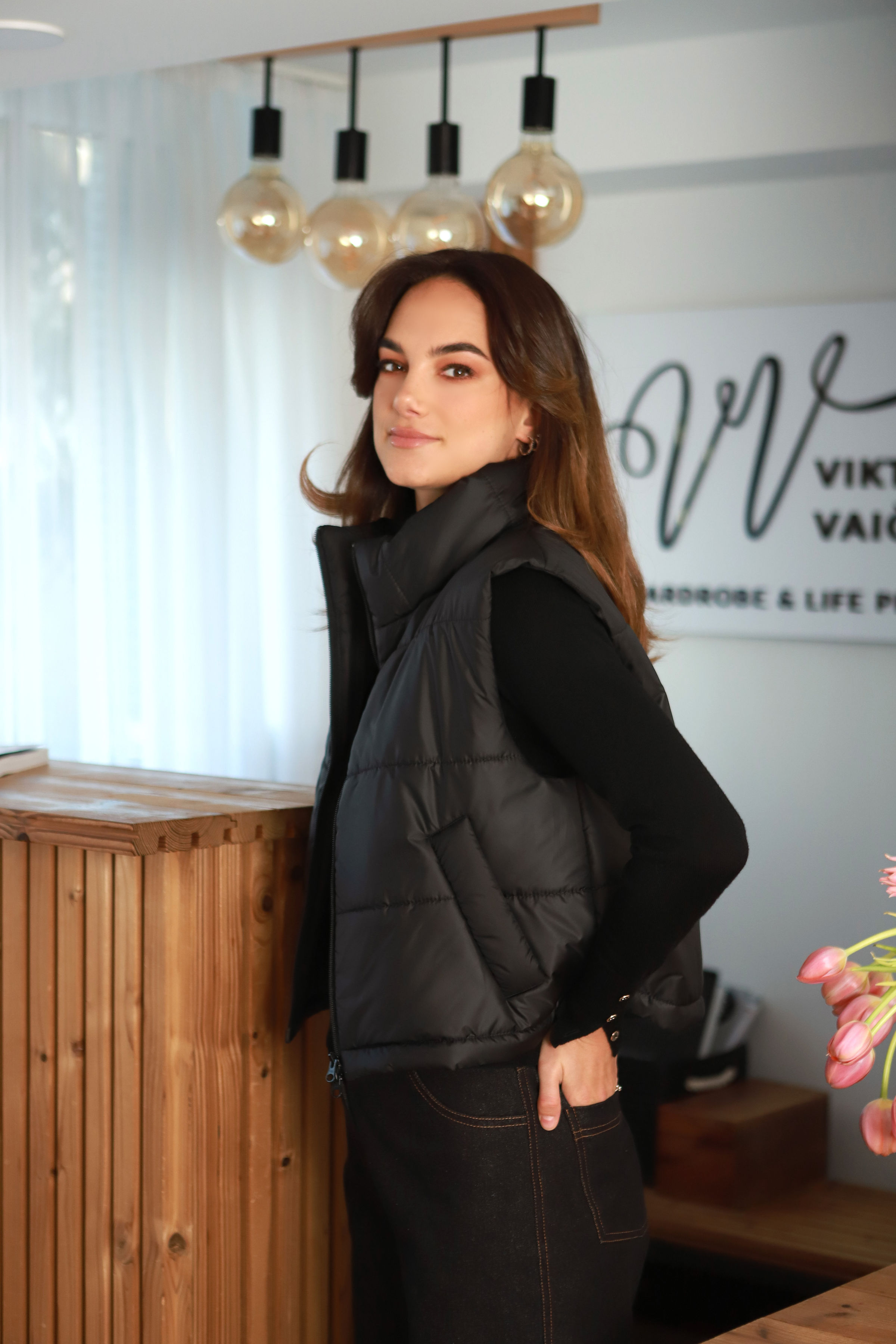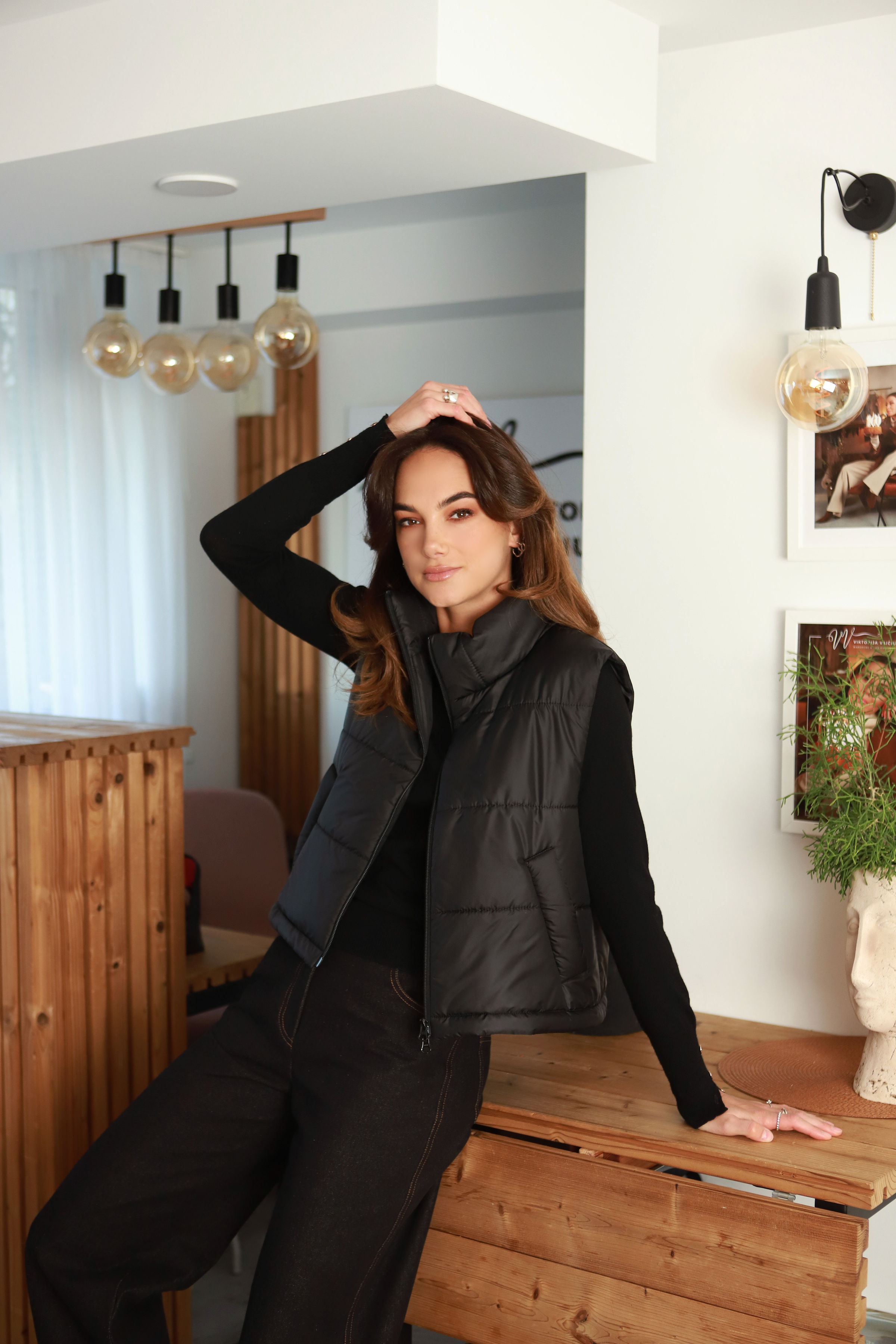 Šiuo metu prieš Jūsų akeles- plonytė, mažai pūsta, itin draugiškai ir noriai besijungianti į įvairios stilistikos derinius – juoda striukinė liemenė „Anyžius“.