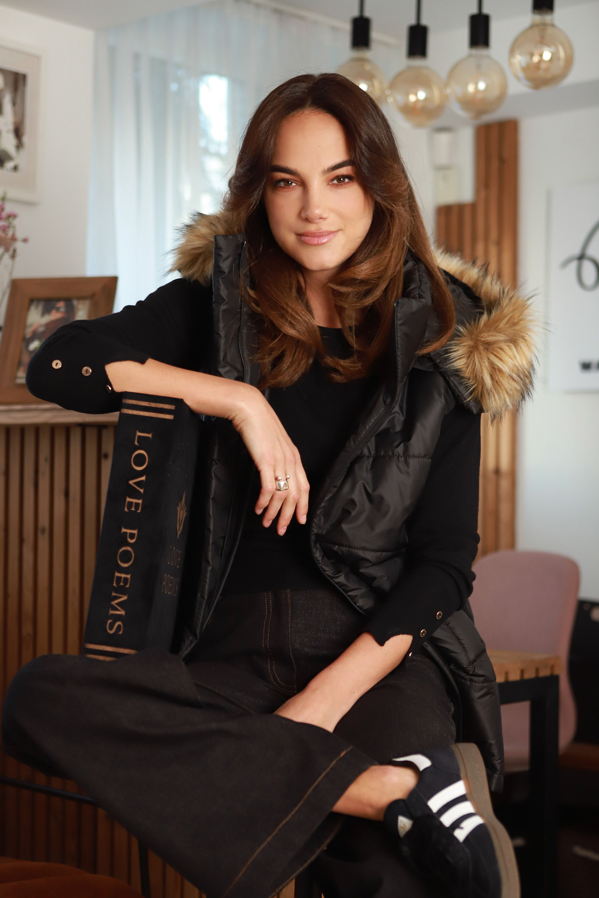 - Modeliui daugybę liaupsių galima skirti už ne tik nusisegantį kailiuką, bet ir patį „kapišoną“, kurį palikus namuose- liemenė puikiai gali jungtis ir į klasikinius derinius.