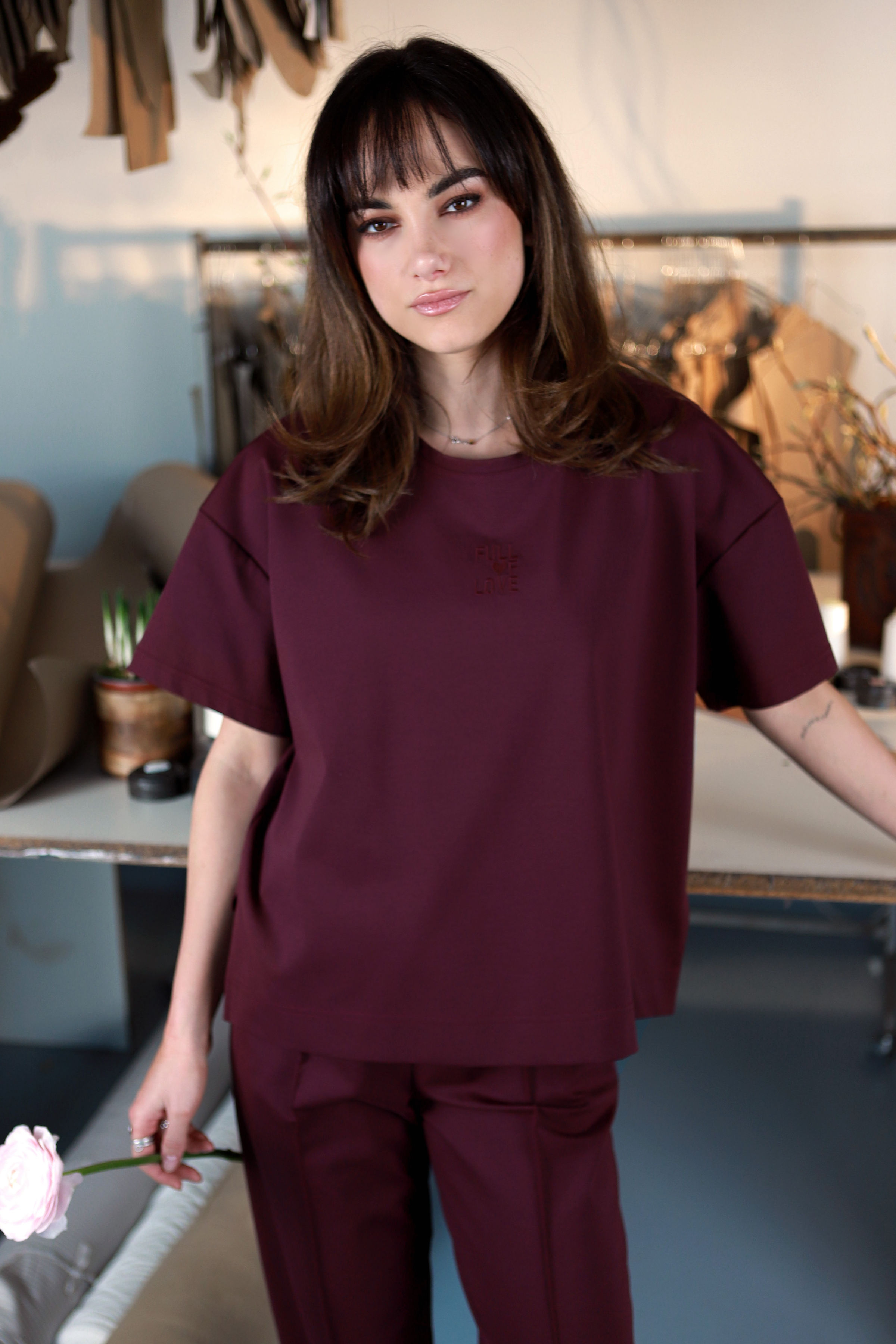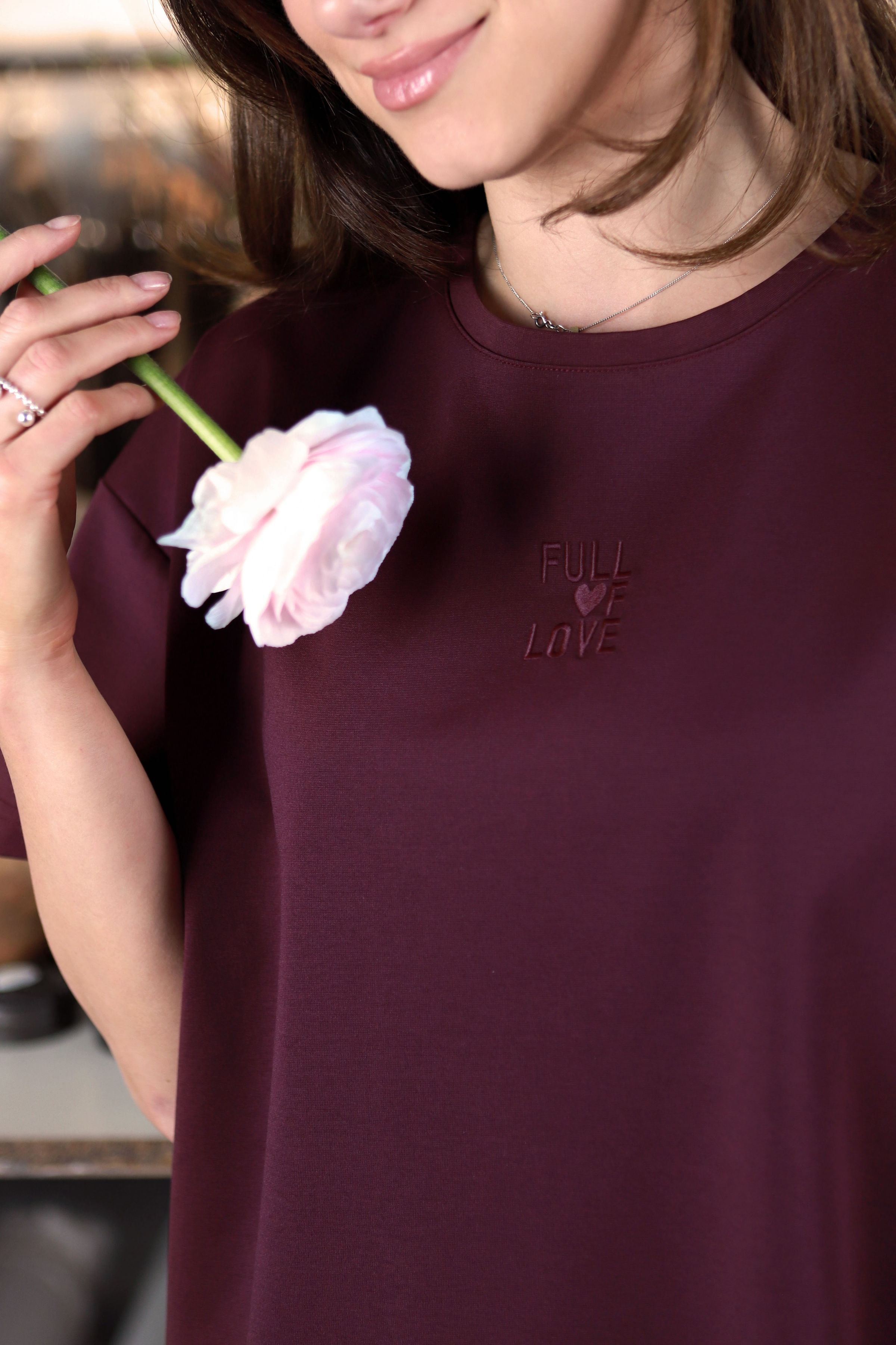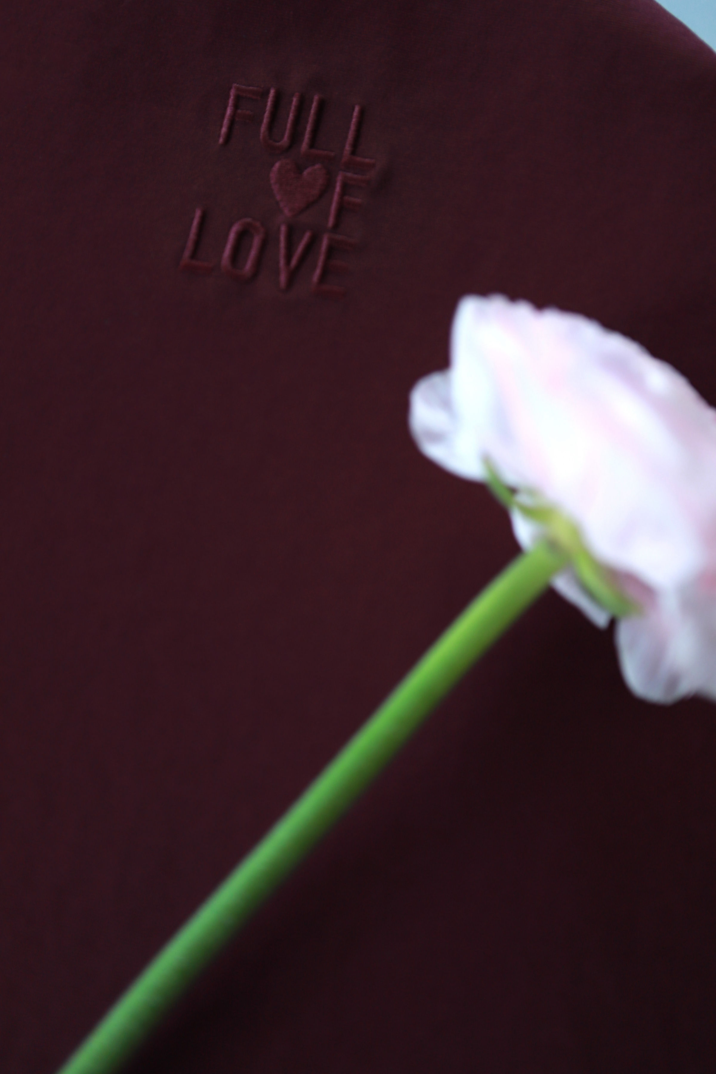 - siuvinėti mielu užrašu ,,Full of love", kuris subtiliai ir nešaukiančiai ,,neša" per kasdienybę gražią žinutę.