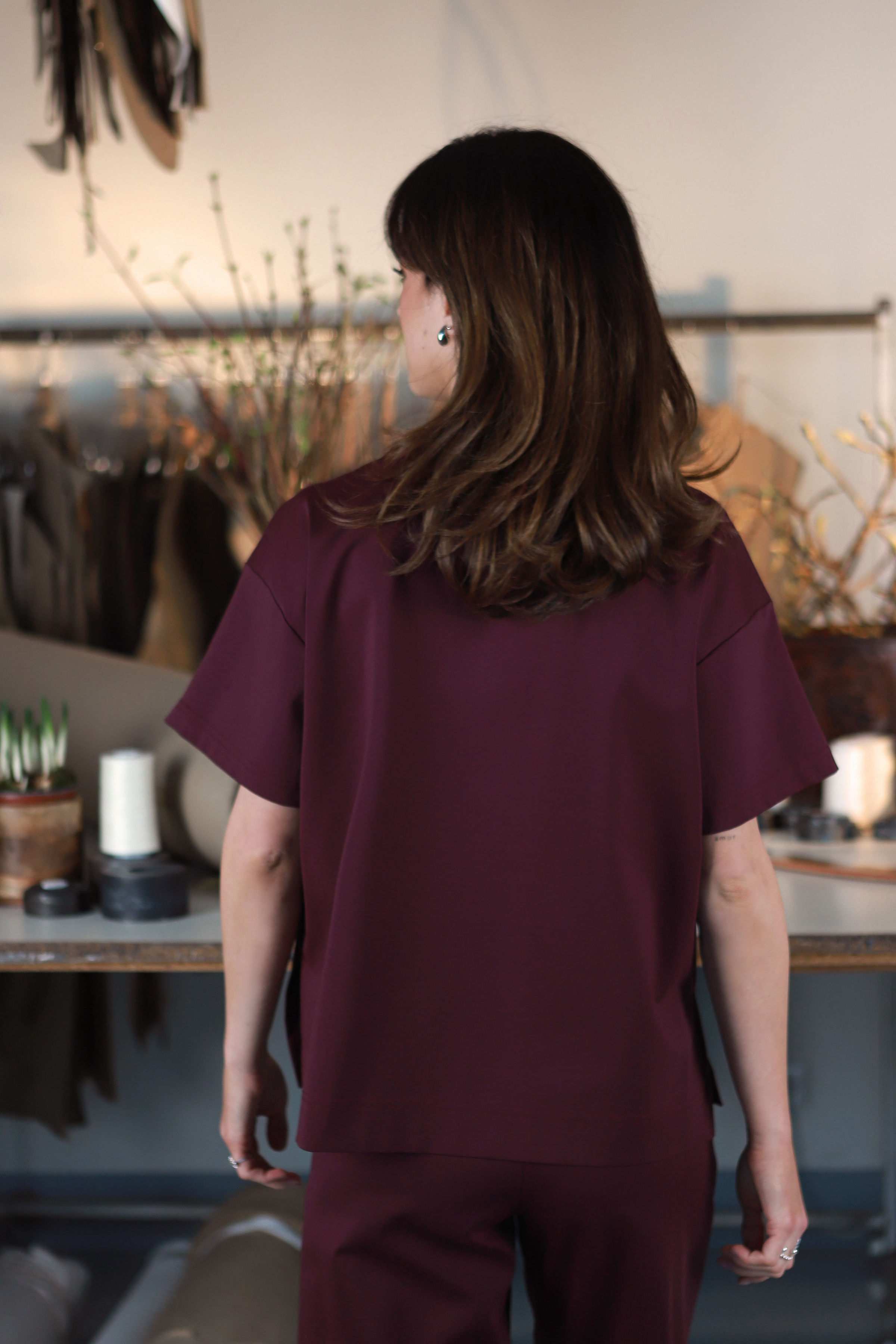 - ,,Kostiumiškai" tinkanti prie iš to paties audinio pasiūtų ,,office comfy" stilistiką atitinkančių ,,Love" kelnių.