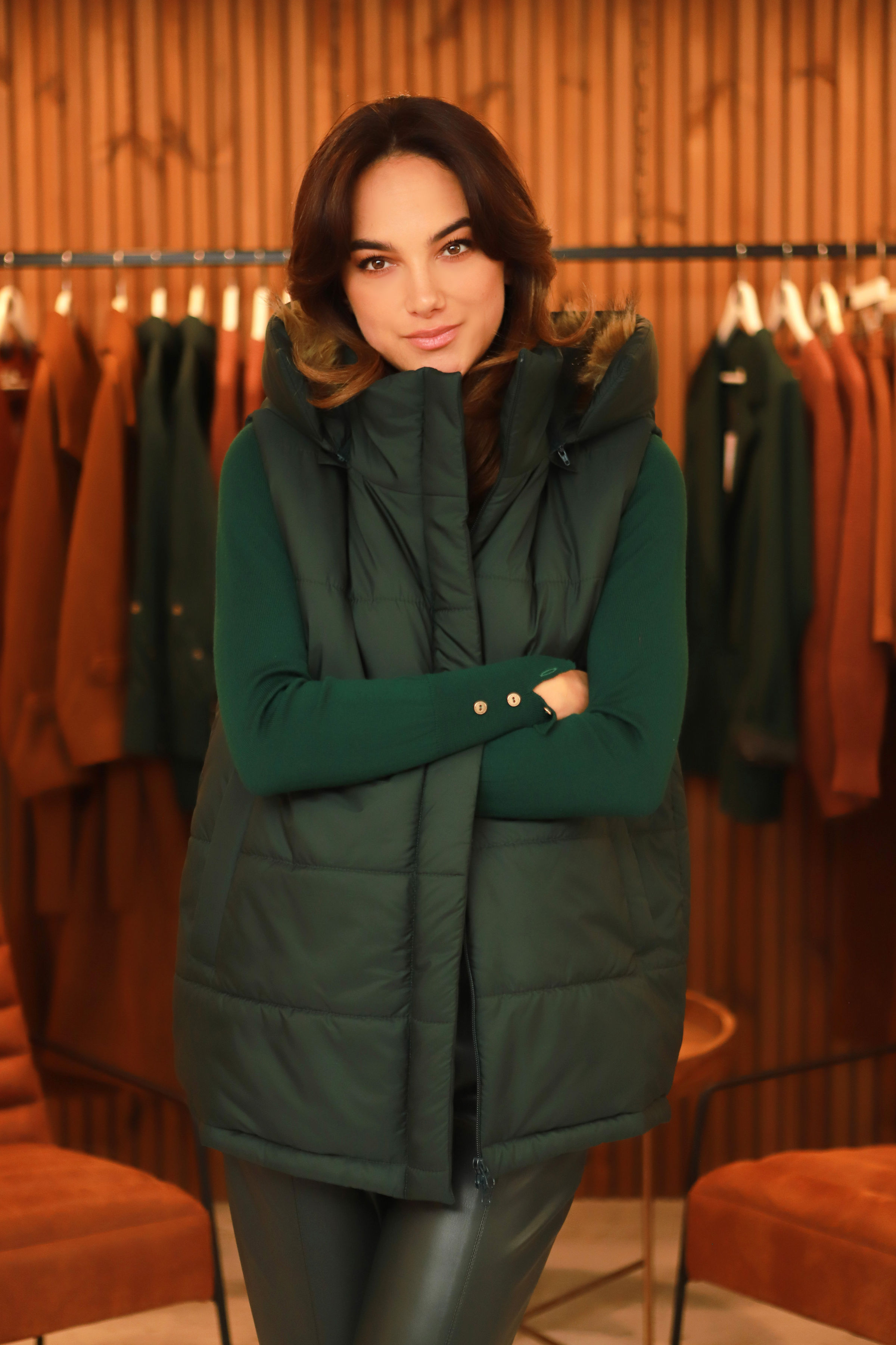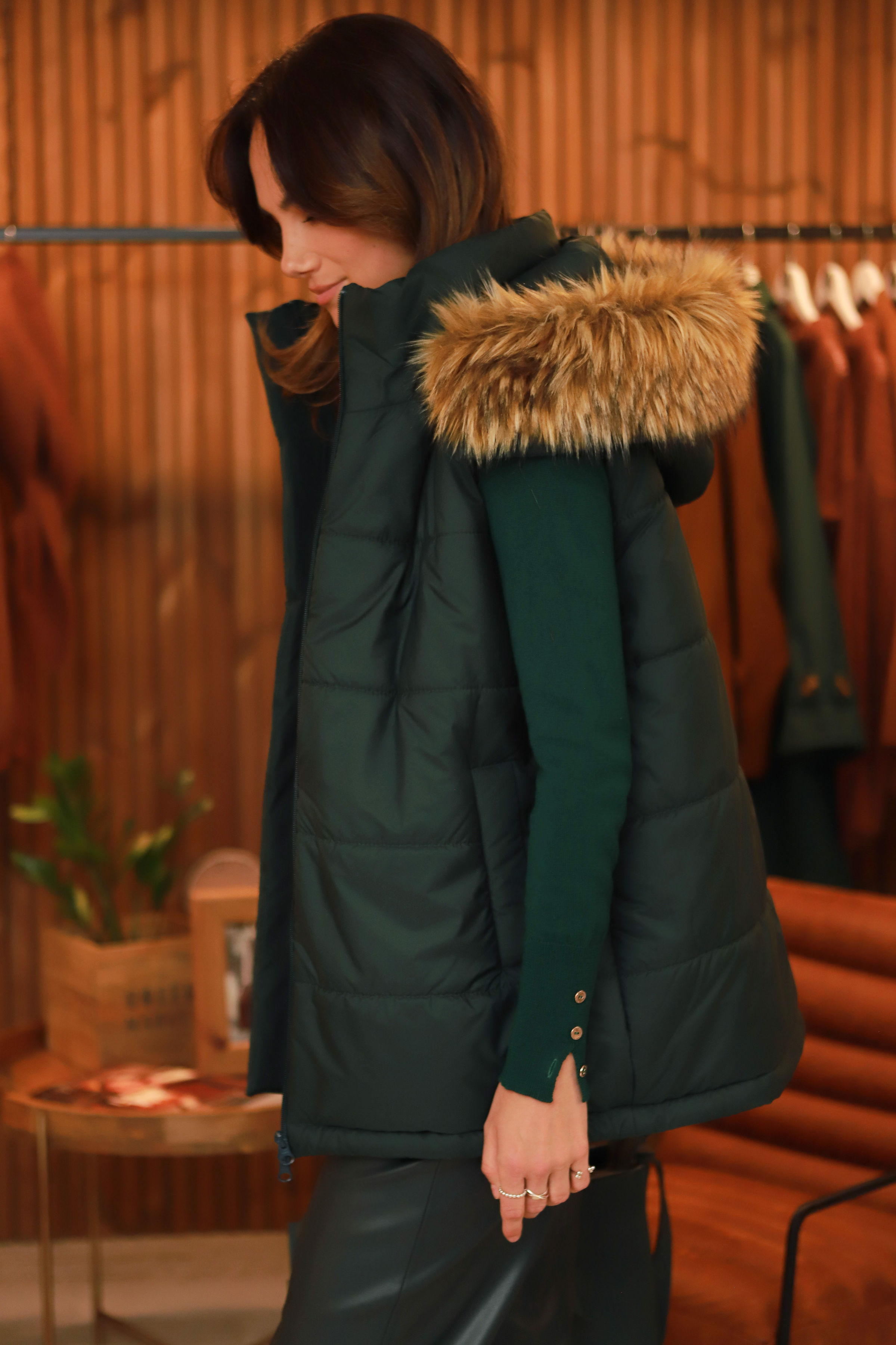 1. Šalta? Liemenė gali būti dėvima su „kailiuotu“ kapišonu.
