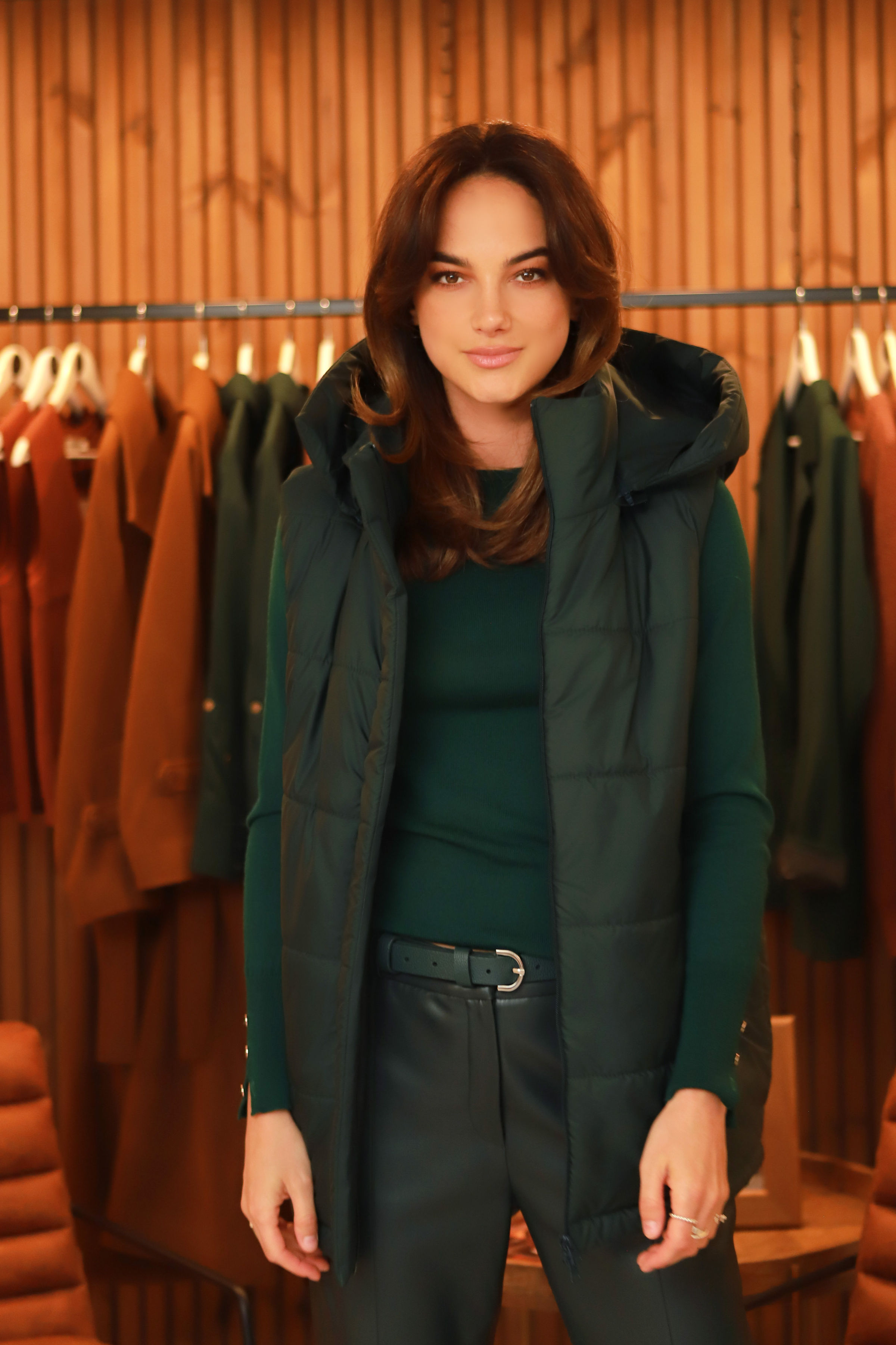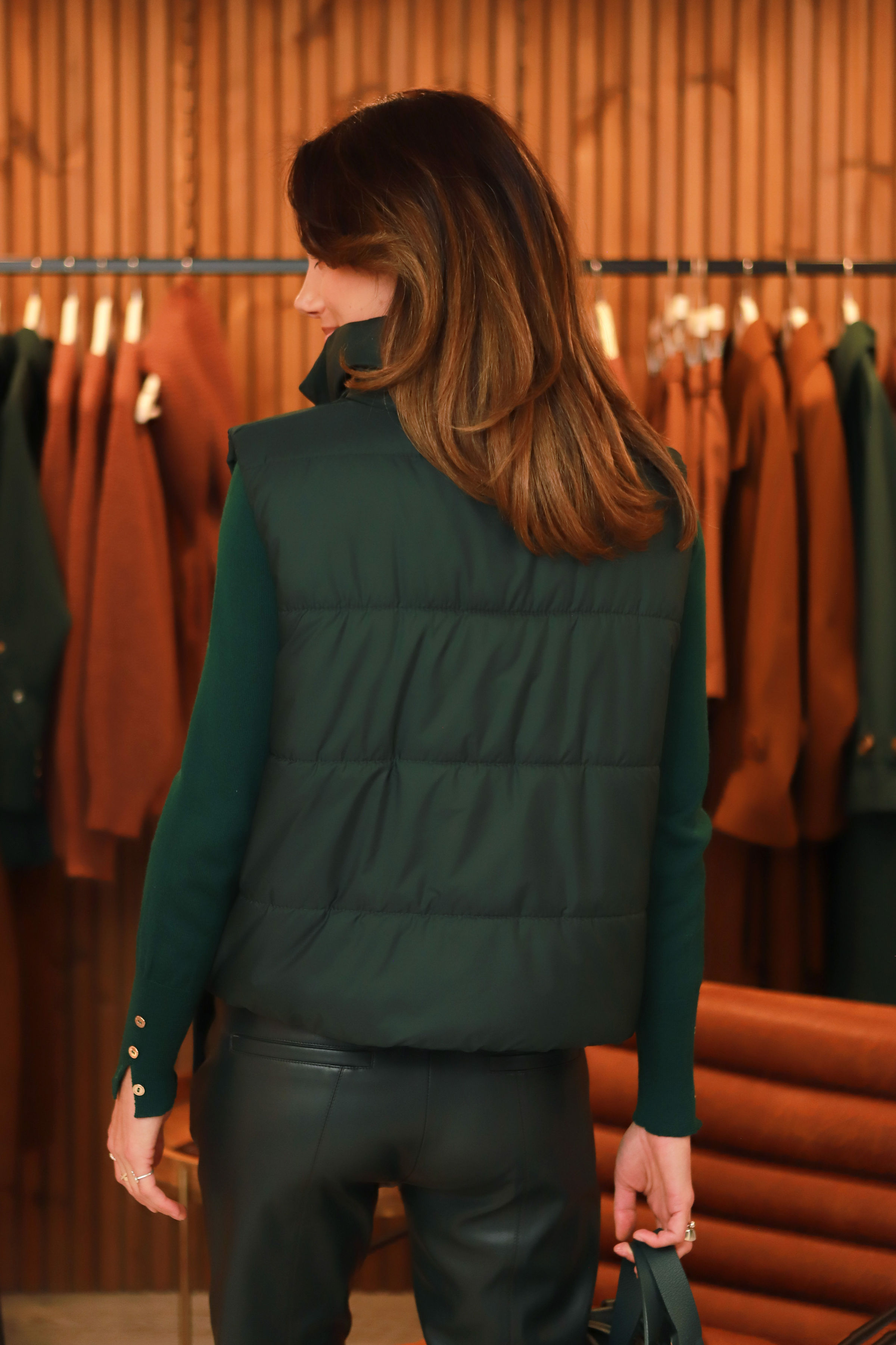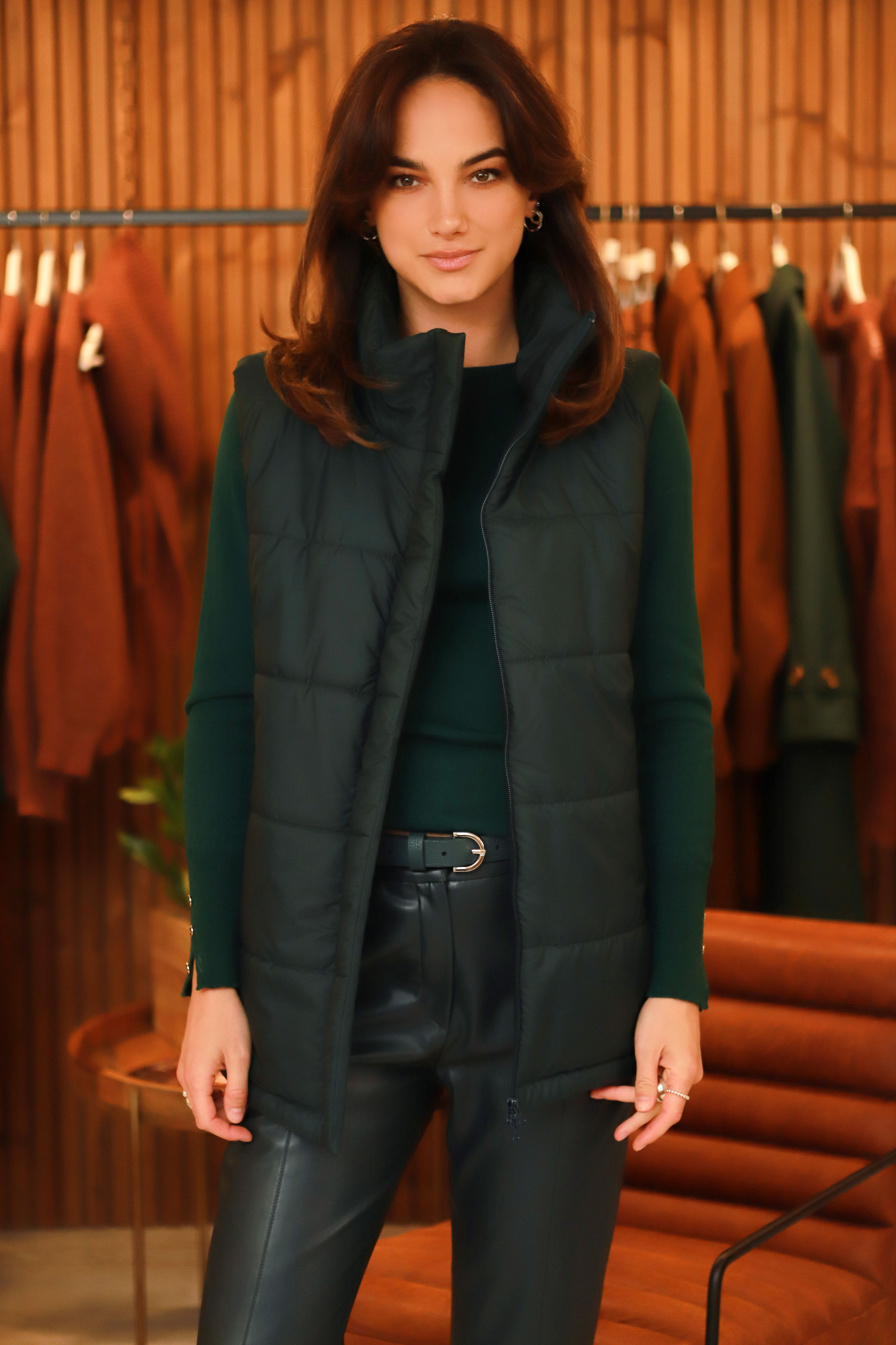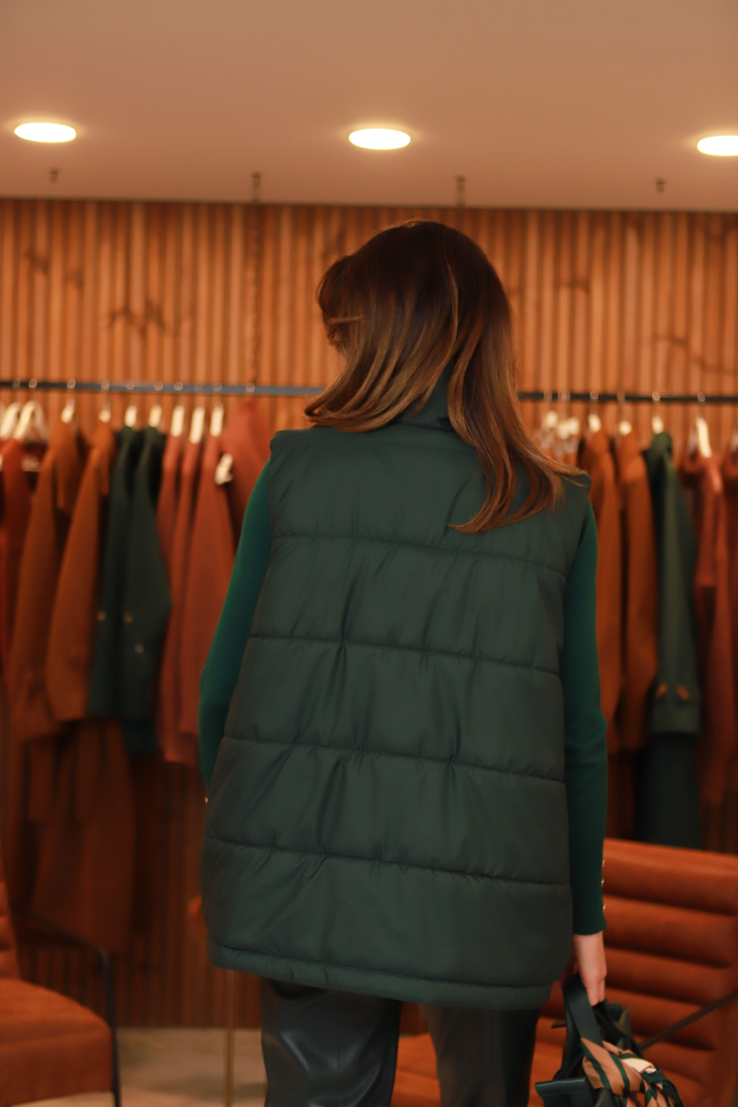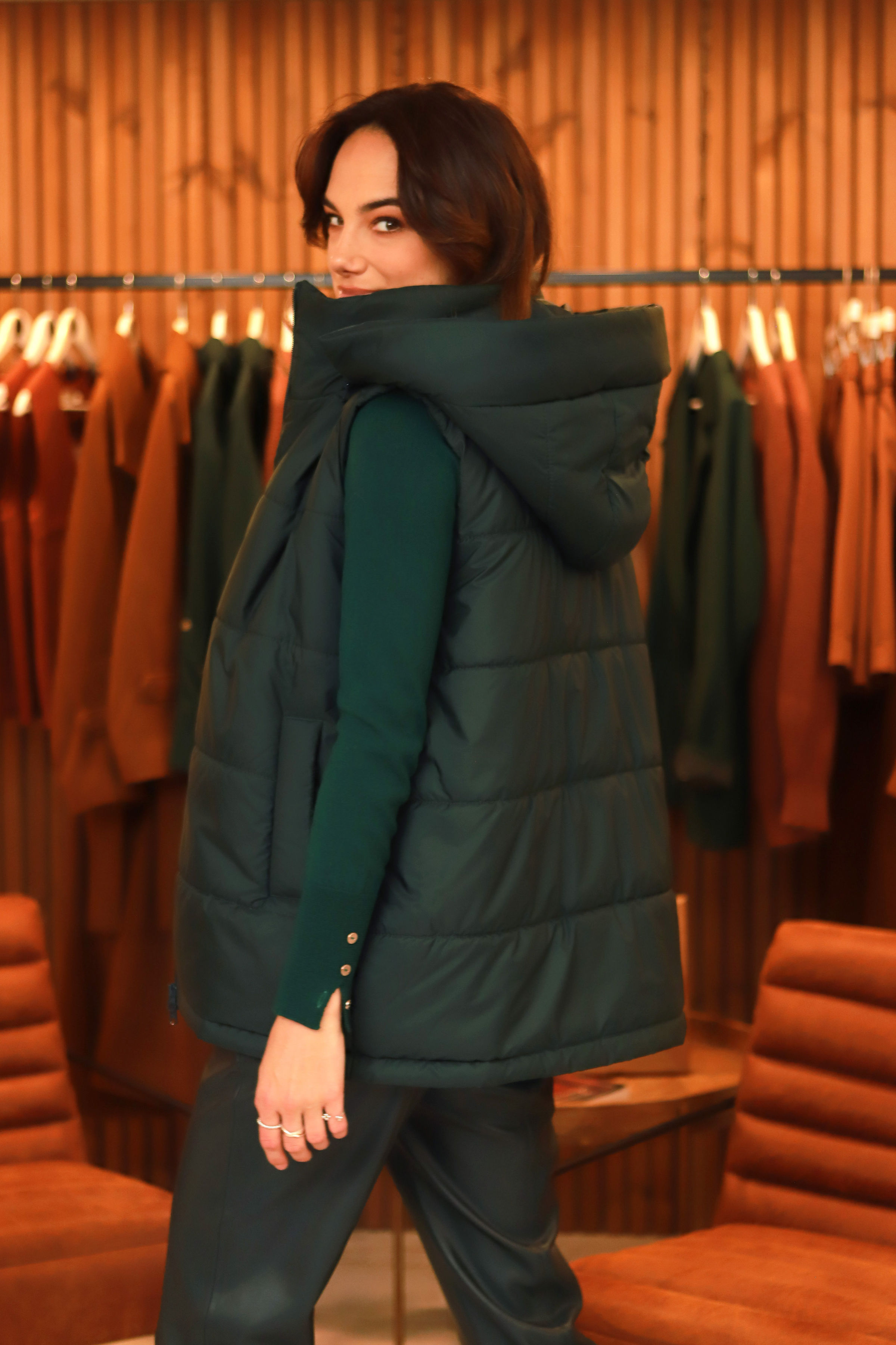 - Liemenės įvaizdis nr.3.-  kapišoną nusegus ir palikus namuose- liemenė puikiai gali jungtis ir į klasikinius derinius.